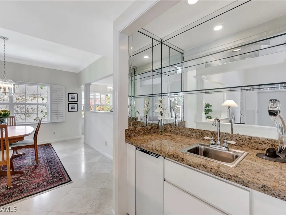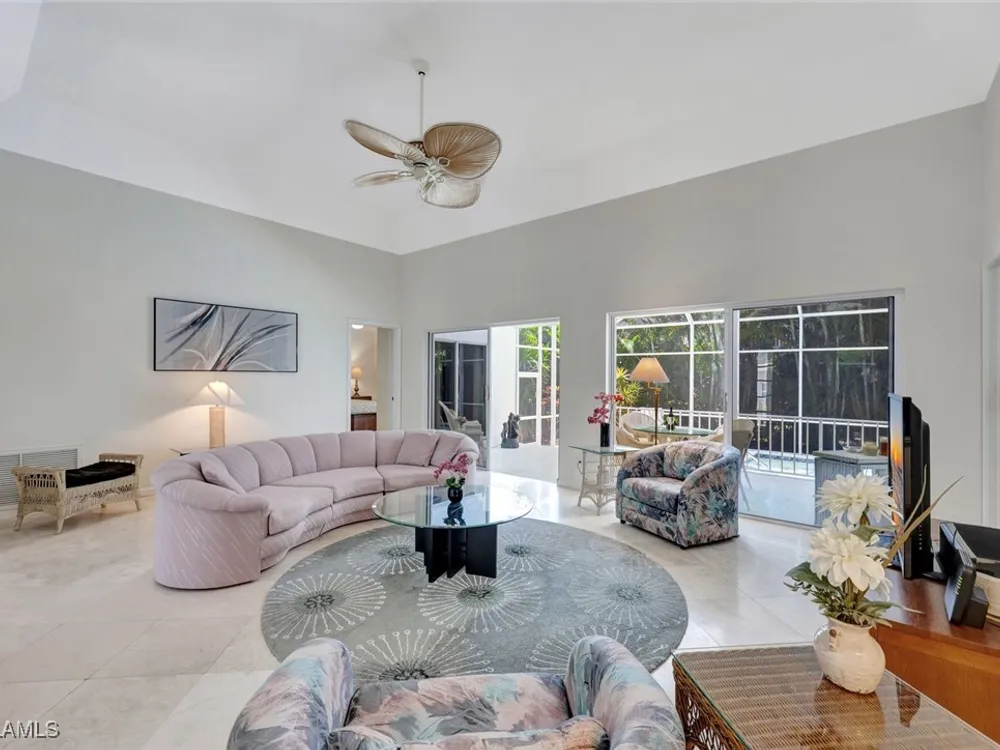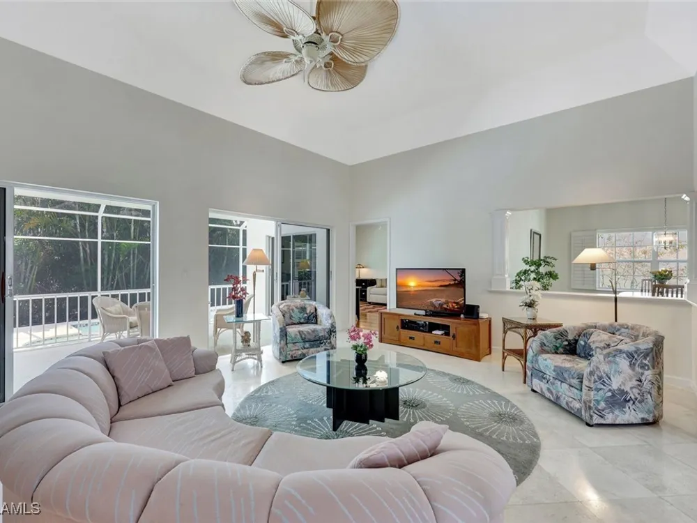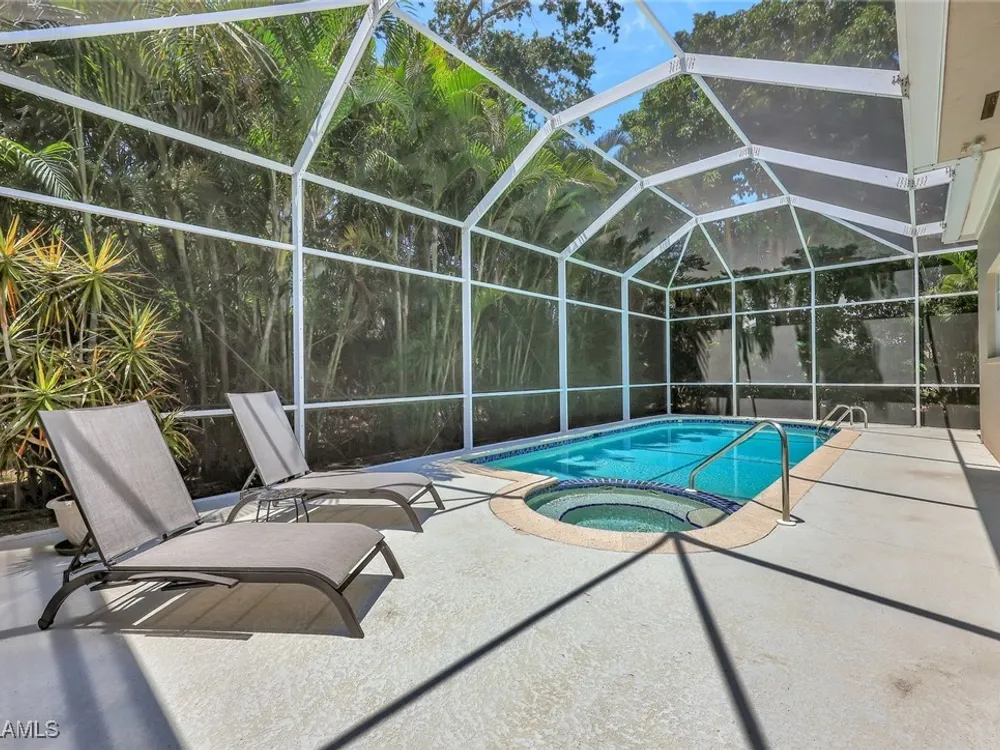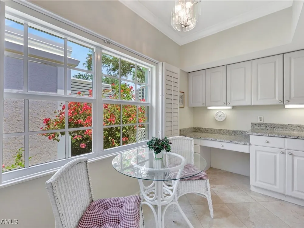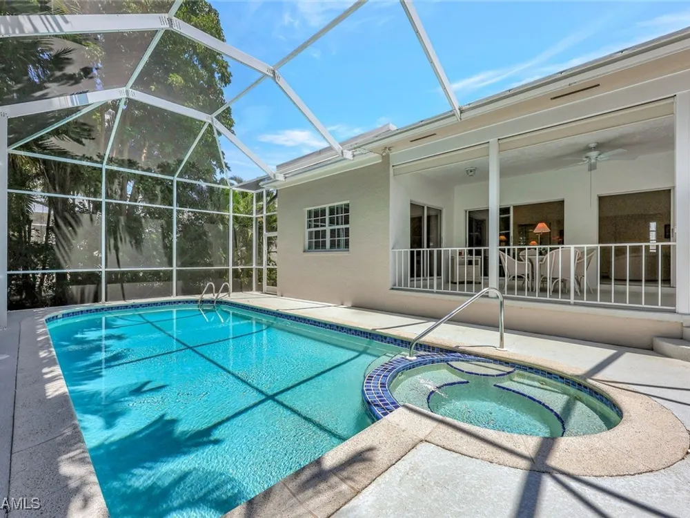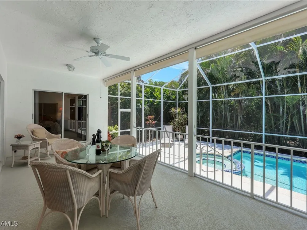BUY NOW AND ENJOY SEASON 2026 IN YOUR OWN PERSONAL RETREAT! Welcome Home to Chanteclair Manor, a charming and intimate detached villa neighborhood of only 19 residences all within a short walk to access Pelican Bay's famed private beach clubs! Lovingly maintained, offered As-Is and ready for your personal touch this one of a kind single-story three bedroom, three bath home with volume ceilings enjoys plentiful natural light, and spans over 1900SF of air conditioned space with neutral marble floors throughout the common areas and wood flooring in the third bedroom currently enjoyed as a home office. Fun fact - no wet feet will traipse through the house as the third bedroom's full bath doubles as a convenient cabana bath! Ideally designed for entertaining, a wet bar is centrally located between the dining room and generous living room which has direct access to the covered patio and screen enclosed pool and spa surrounded by mature, lush greenery for the ultimate private retreat. A spacious kitchen with abundant storage, built-in desk and breakfast nook has access to the 2-car garage. Pool pump and filter replaced in 2023, roof replaced in 2014, impact windows throughout and Association-maintained lawn/landscape and irrigation system provide peace of mind. All of this plus the acclaimed world-class amenities of Pelican Bay: two private beach clubs with attendants, dining and cocktails, fitness center, multiple racquet pavilions (pickleball coming soon!), kayaks, canoes, miles of biking/jogging/walking paths, spa and wellness center, and centrally located to all Naples has to offer!