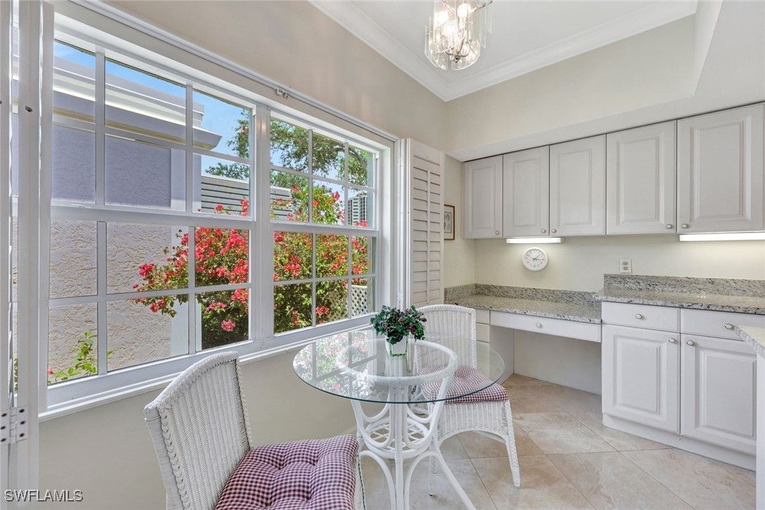 Welcome home to Pelican Bay's entry-level price point single-family home. If you are looking for a fantastic opportunity to get into Pelican Bay without breaking the bank, 5929 Chanteclair Drive in Chanteclair Manor is calling, charming and intimate detached villa neighborhood of only 19 residences all within a short distance to access Pelican Bay's famed private beach clubs! Lovingly maintained, offered as-is and ready for your personal touch this one-of-a-kind single-story three-bedroom, three-bath home with volume ceilings enjoys plentiful natural light, and spans over 1,900 square feet of air conditioned space with neutral marble floors throughout the common areas and wood flooring in the third bedroom, currently enjoyed as a home office. Fun fact, no wet feet will traipse through the house as the third bedroom's full bath doubles as a convenient cabana bath. Ideally designed for entertaining, a wet bar is centrally between the dining room and generous living room, which has direct access to the covered patio and screen-enclosed pool and spa surrounded by mature, lush greenery for the ultimate private retreat. A spacious kitchen with abundant storage, built-in desk and a breakfast nook has access to the two-car garage. Pool pump and filter replaced in 2023, roof replaced in 2014, impact windows throughout, and association-maintained lawn/landscape and irrigation system provide peace of mind. All this plus the acclaimed world-class amenities of Pelican Bay such as two private beach clubs with attendants, dining and cocktails, fitness center, multiple racquet pavilions (pickleball coming soon), kayaks, canoes, miles of biking/jogging/recreational paths, spa and wellness center, and central to all Naples has to offer!