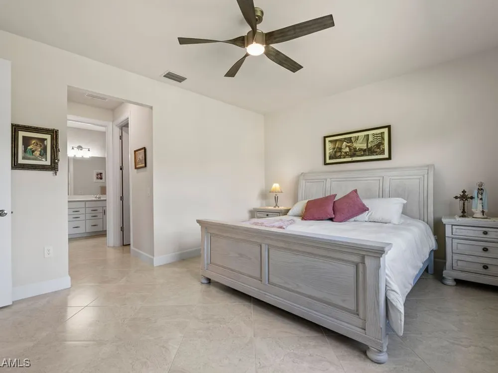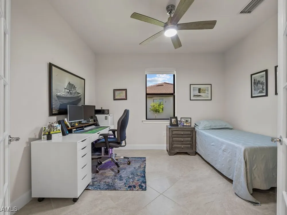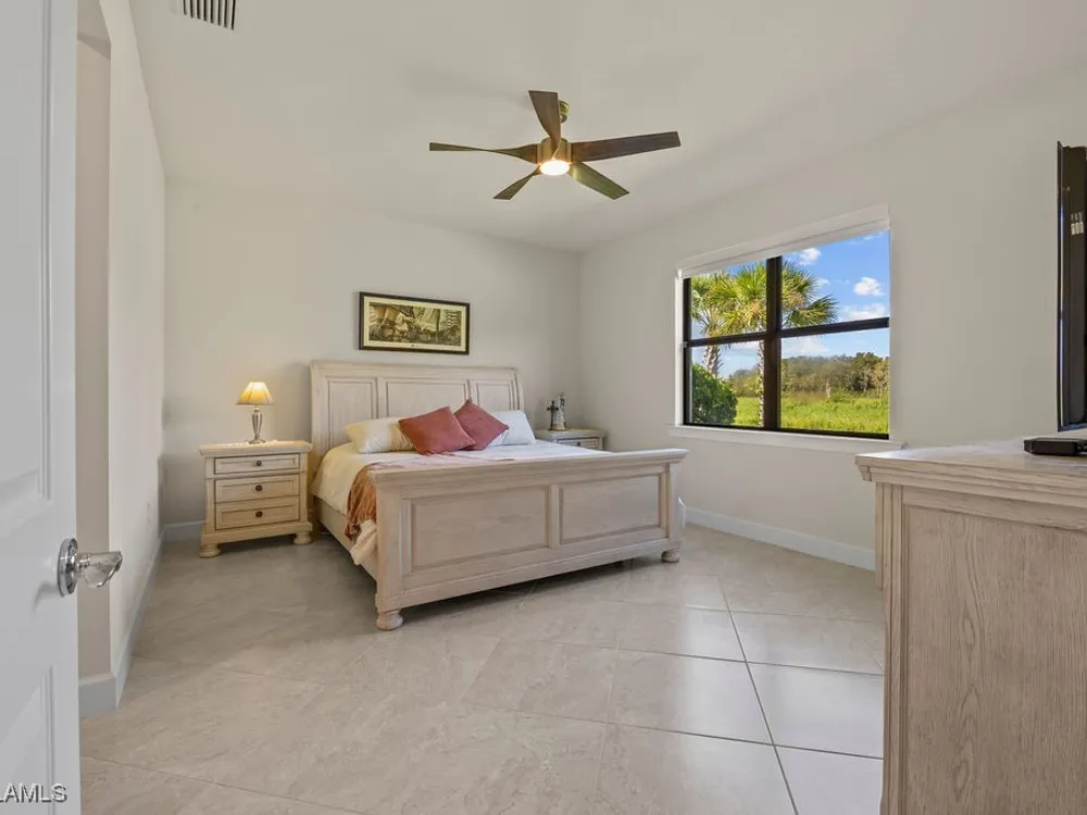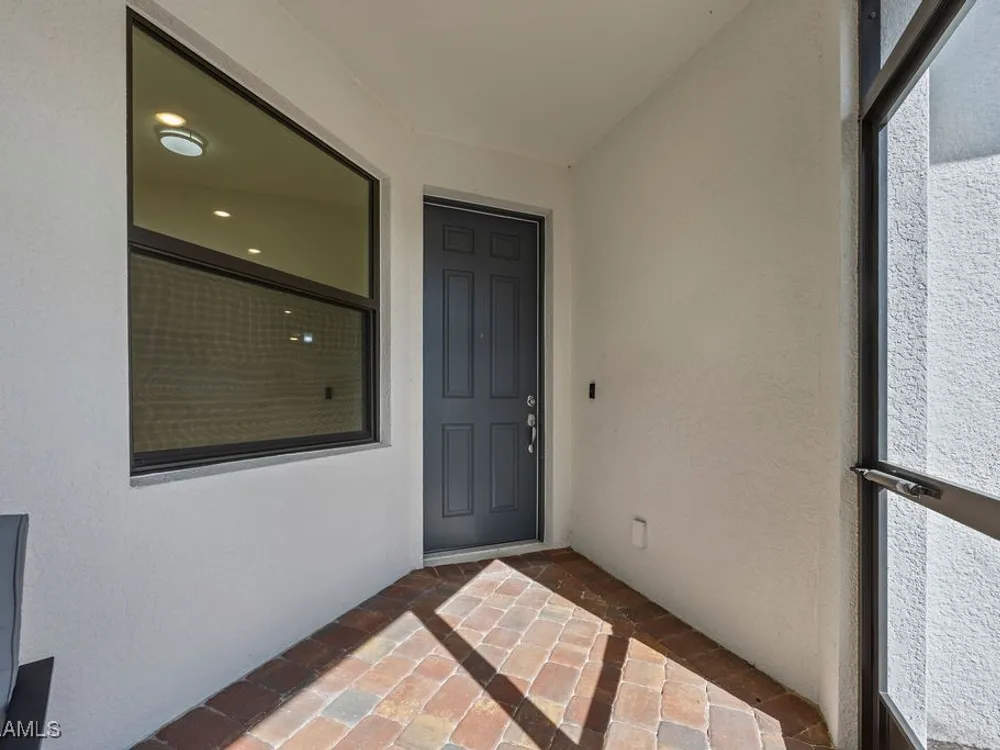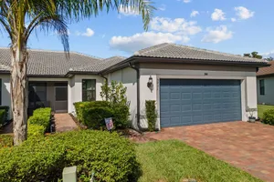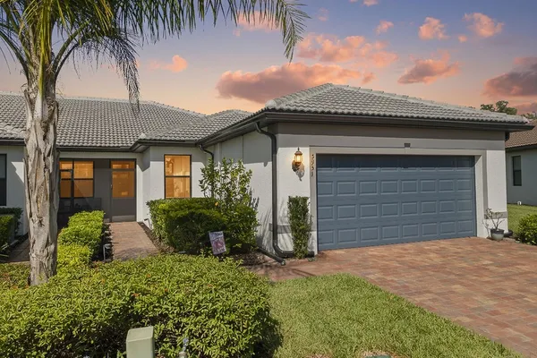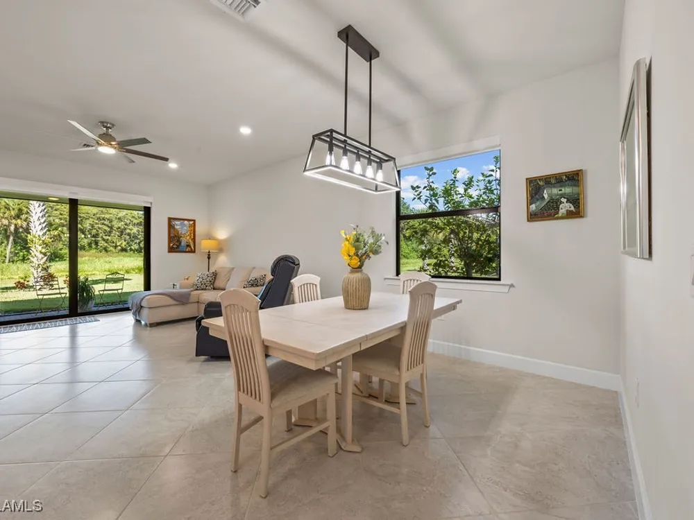 Welcome to this immaculate "Cascadia" model 2 bedroom + den, 2 bathroom end-unit villa located in the desirable 55+ community of Del Webb Naples in Ave Maria. Thoughtfully designed for both comfort and functionality, this home features upgraded porcelain tile flooring set on a diagonal throughout, 8' doors, upgraded baseboards, and custom window treatments over impact-resistant windows for added peace of mind. The open-concept kitchen is highlighted by quartz countertops and timeless shaker-style cabinetry, flowing seamlessly into the bright and spacious living and dining areas – perfect for relaxing or entertaining. The private master suite includes a walk-in closet and a beautifully appointed en-suite bathroom with granite countertops and a large walk-in shower. A flexible den with French door entry provides the ideal space for a home office, guest room, or hobby area. Additional features include a 2-car garage and the advantages of being an end-unit, offering extra privacy and abundant natural light throughout. As a resident, you’ll enjoy access to Del Webb’s Oasis Club resort-style amenities, including two clubhouses, a fitness center, a resort-style pool with beach entry, lap pool, and Jacuzzi; golf simulator, billiards, two tennis courts, twelve lit pickleball courts, four bocce courts, a large catering hall with kitchen, a café, library, arts and crafts room, and an activities director offering a full calendar of social events – all within a golf cart-friendly community. Golf enthusiasts will also appreciate the semi-private championship-style golf course, complete with a pro shop, and on-site golf professional.