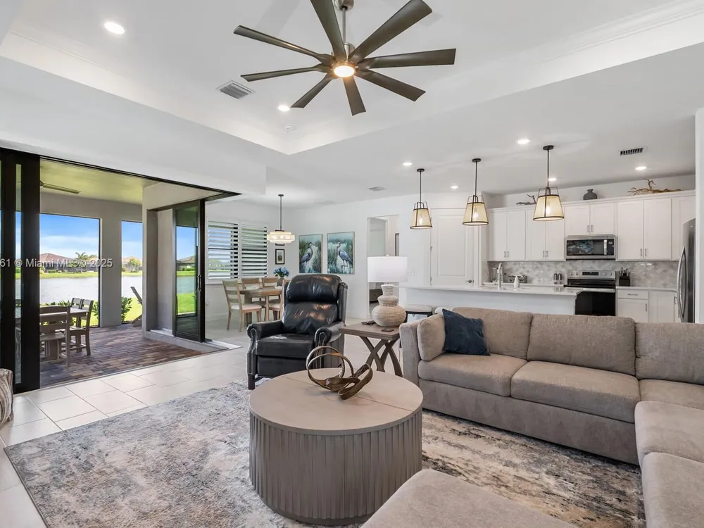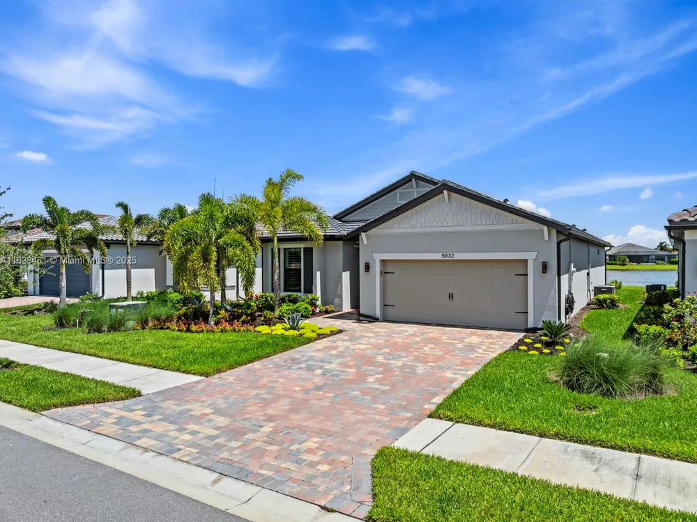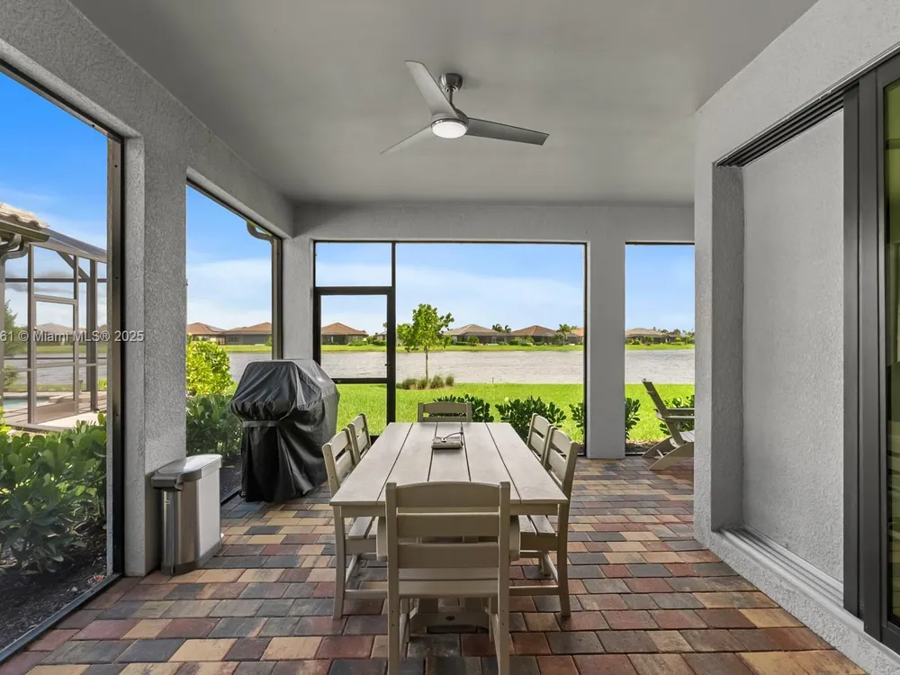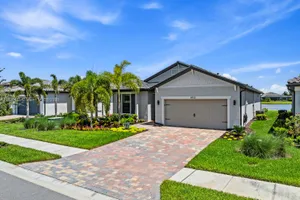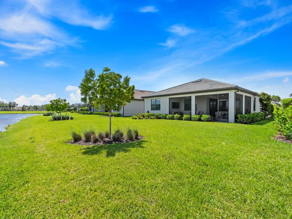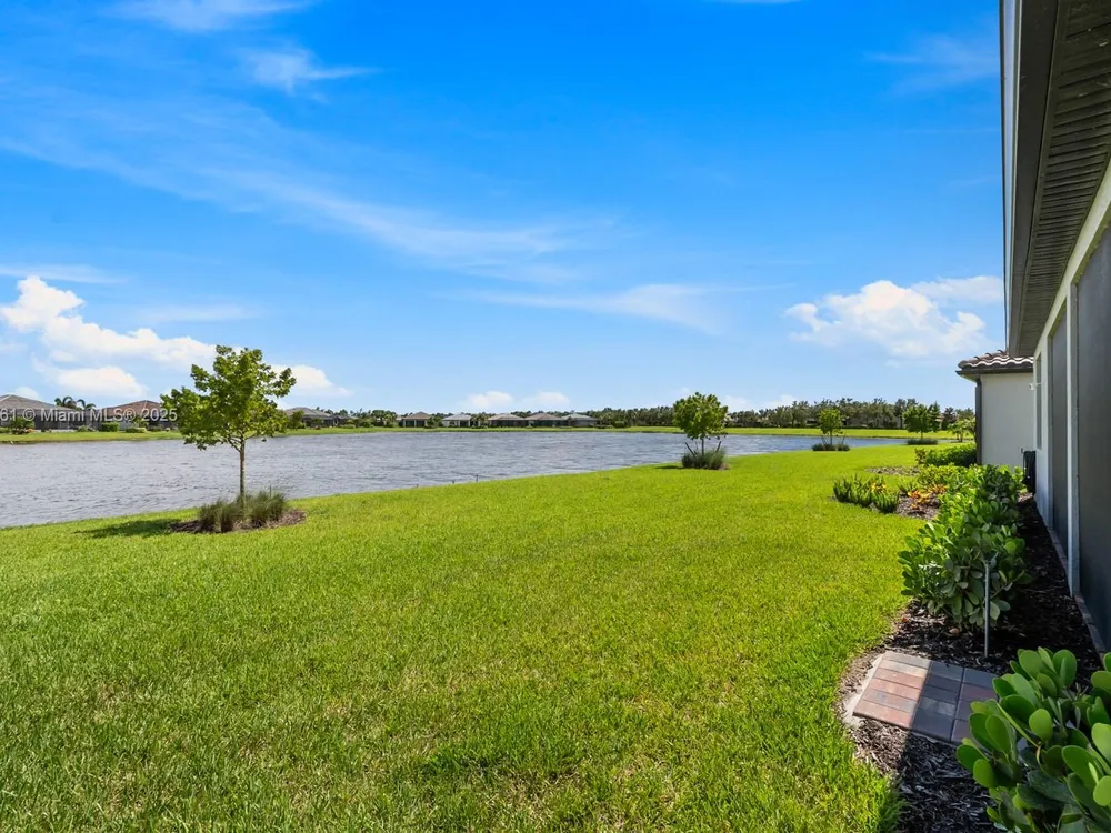Move right into this nearly new Mystique model in Del Webb Naples...no delays, no builder waitlists. Set on one of the community’s largest lakefront lots, this 2-bedroom plus den, 2-bath home shines with $114,000 in upgrades including quartz countertops, stainless appliances, plantation shutters, and high-end tile throughout. Zero-corner sliders open to an extended screened lanai with sweeping water views and plenty of room for a pool. The oversized 2.5-car garage easily fits a golf cart plus storage, while impact windows, epoxy-coated floors, and custom lighting add style and peace of mind. Enjoy the resort lifestyle with golf, pickleball, tennis, pools, and two clubhouses just steps away...making this home an unbeatable opportunity in Del Webb.