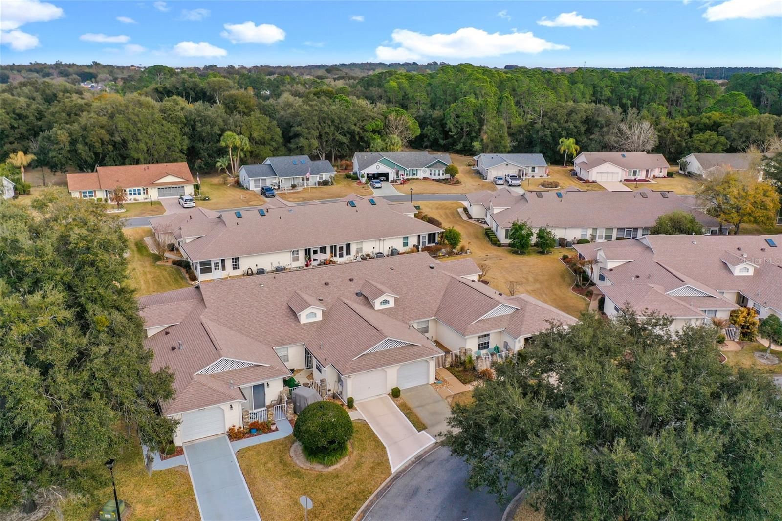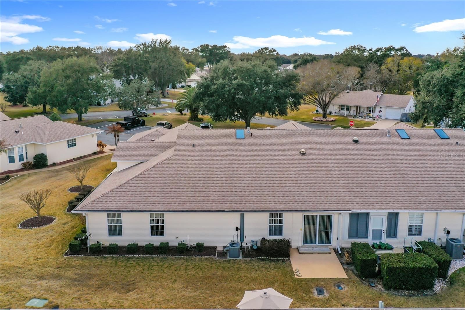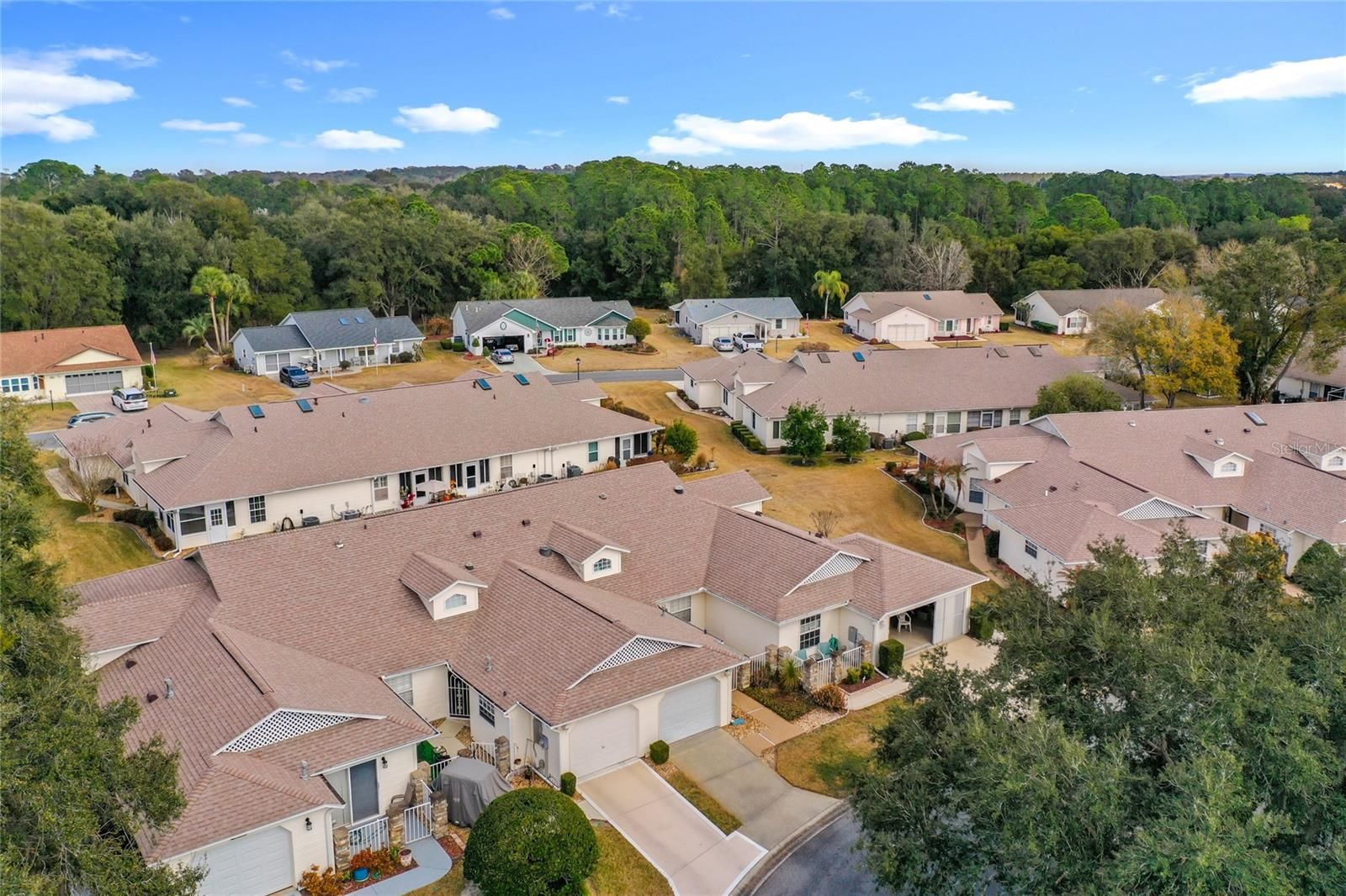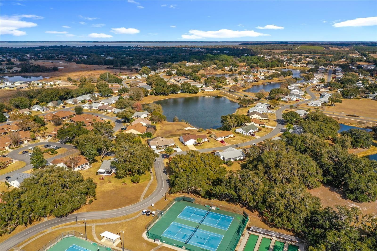 This light-filled 2-bedroom, 2-bath villa offers comfortable Florida living with a private, gated front courtyard ideal for relaxing or entertaining. Updates include a new roof (2022) and a 1-car garage with a remote-controlled retractable screen door. Inside, the open living and dining areas are bright and airy with skylights and solar tubes. A flexible bonus space works well as a den or home office. The open kitchen features ample cabinetry, generous counter space, a pantry, and an eat-in area. The primary suite includes a walk-in closet and an ensuite bath with dual sinks and a walk-in shower with glass enclosure and grab bars. A split-bedroom layout provides guest privacy, with a second full bath accessible from the guest bedroom and hallway. Located in Highland Lakes, a gated 55+ community south of Leesburg, residents enjoy extensive amenities including a clubhouse with indoor and outdoor pools, fitness center, tennis, pickleball, shuffleboard, bocce ball, softball, golf driving range,and RV/boat storage with 260 secured spaces. Homeowners can also join the Craftsman building/woodworking shop club for an additional fee and access a variety of tools. The community also features a nature trail and seven lakes, four of which are available for catch and release fishing. Central Florida offers excellent shopping, amusement parks, state parks, medical and professional services, as well as a wide range of restaurants and entertainment options. Experience the best of retirement living - book your home tour today!
