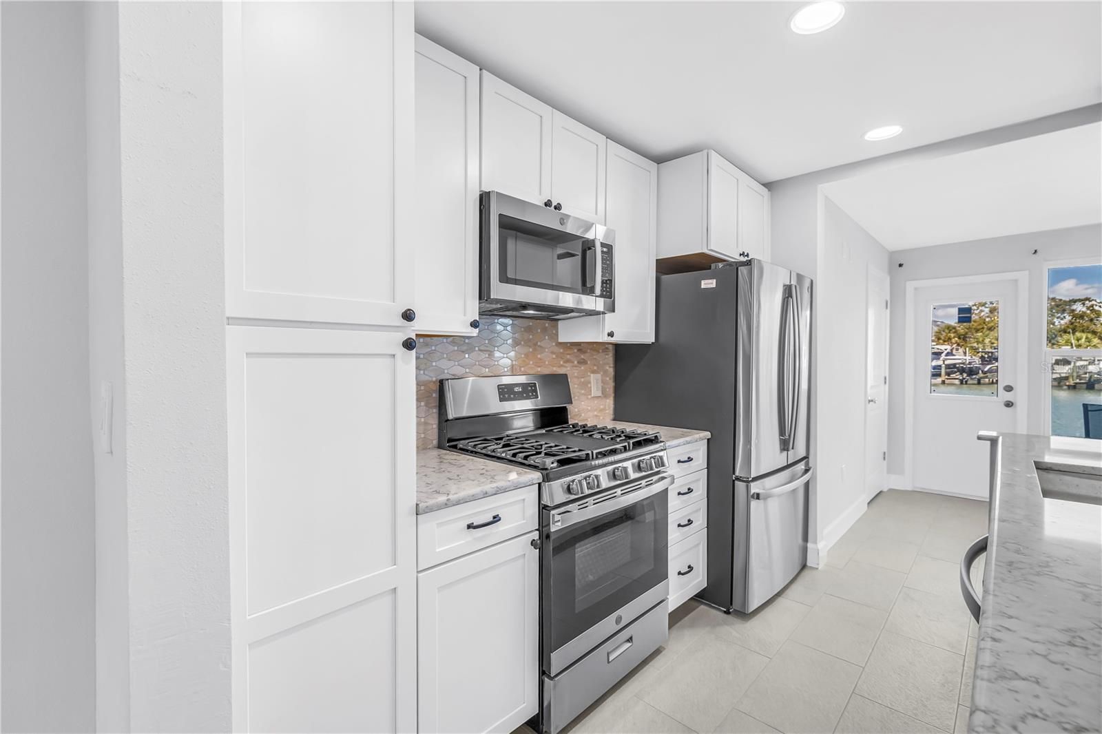 1st Floor Living! This beautifully renovated first-floor condo in the Fairfax Building #105 within the vibrant 55+ waterfront community of Town Shores offers stunning water views and effortless coastal living. This 2-bedroom, 2-bath residence features the rare convenience of covered parking directly outside your front door and breathtaking views of the water, where dolphins are often seen playing just beyond your windows Completely updated from the studs up, this exceptional home includes impact windows, a new electrical panel, HVAC, flooring, kitchen, bathrooms, interior and exterior doors, and closets, delivering modern comfort and peace of mind. The thoughtfully designed interior showcases neutral tile flooring throughout, creating a bright and cohesive living space. The show-stopping kitchen features a gas range, stainless steel appliance package, expansive quartz countertops, crisp white 48-inch shaker cabinetry for maximum storage, and a custom tile backsplash. The primary suite, located at the rear of the unit, enjoys tranquil water views, dual closets, and a beautifully designed en-suite bath with curated black-and-white designer finishes that create a spa-like retreat. The guest bedroom, located toward the front of the condo, is adjacent to a hallway bath featuring a walk-in shower with custom glass doors and similar spa-inspired finishes—perfect for visitors. Residents of Town Shores enjoy resort-style amenities, including four community pools, tennis courts, pickleball, a clubhouse, bingo, and an active calendar of social events and activities. The location is unbeatable—just steps from the charming waterfront district of Gulfport, where you’ll find Beach Boulevard, the Gulfport Marina, the Senior Center, library, restaurants, and eclectic shops. The monthly condo fee of $594 includes natural gas, cable, internet, water, sewer, trash, exterior building maintenance, grounds maintenance, escrow reserves, and the master insurance policy. Start living the Florida lifestyle in this stunning waterfront condo offering spectacular views, extensive upgrades, and unbeatable walkability.