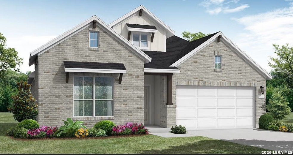 The Asherton floor plan delivers a harmonious combination of modern design and functional living in a one-story layout. This home features 3 well-sized bedrooms and 2 bathrooms, making it an excellent choice for families or those seeking a manageable living space. The open-concept design creates a natural flow between the kitchen, dining, and living areas, providing a welcoming environment for relaxation and gatherings. This home features a huge 10ft kitchen island and tons of cabinetry in your chefs kitchen, overlooking your beautiful living room fireplace. The primary suite, tucked away for privacy, includes a spacious en-suite bathroom and ample closet space. Located on one of the best greenbelt lots in the highly sought after Veramendi, this home offers Hill Country views for miles. Schedule a private tour today!