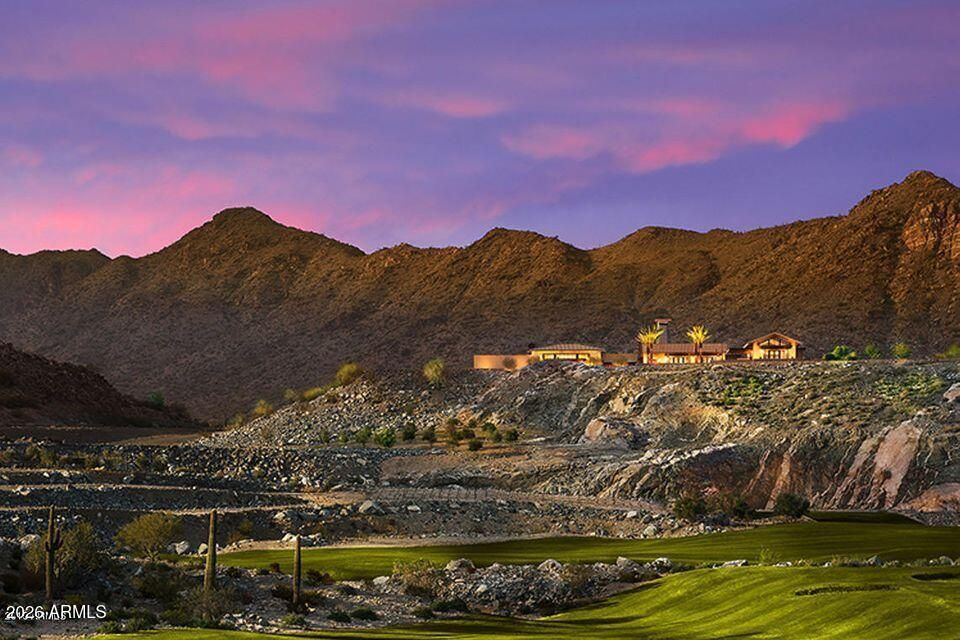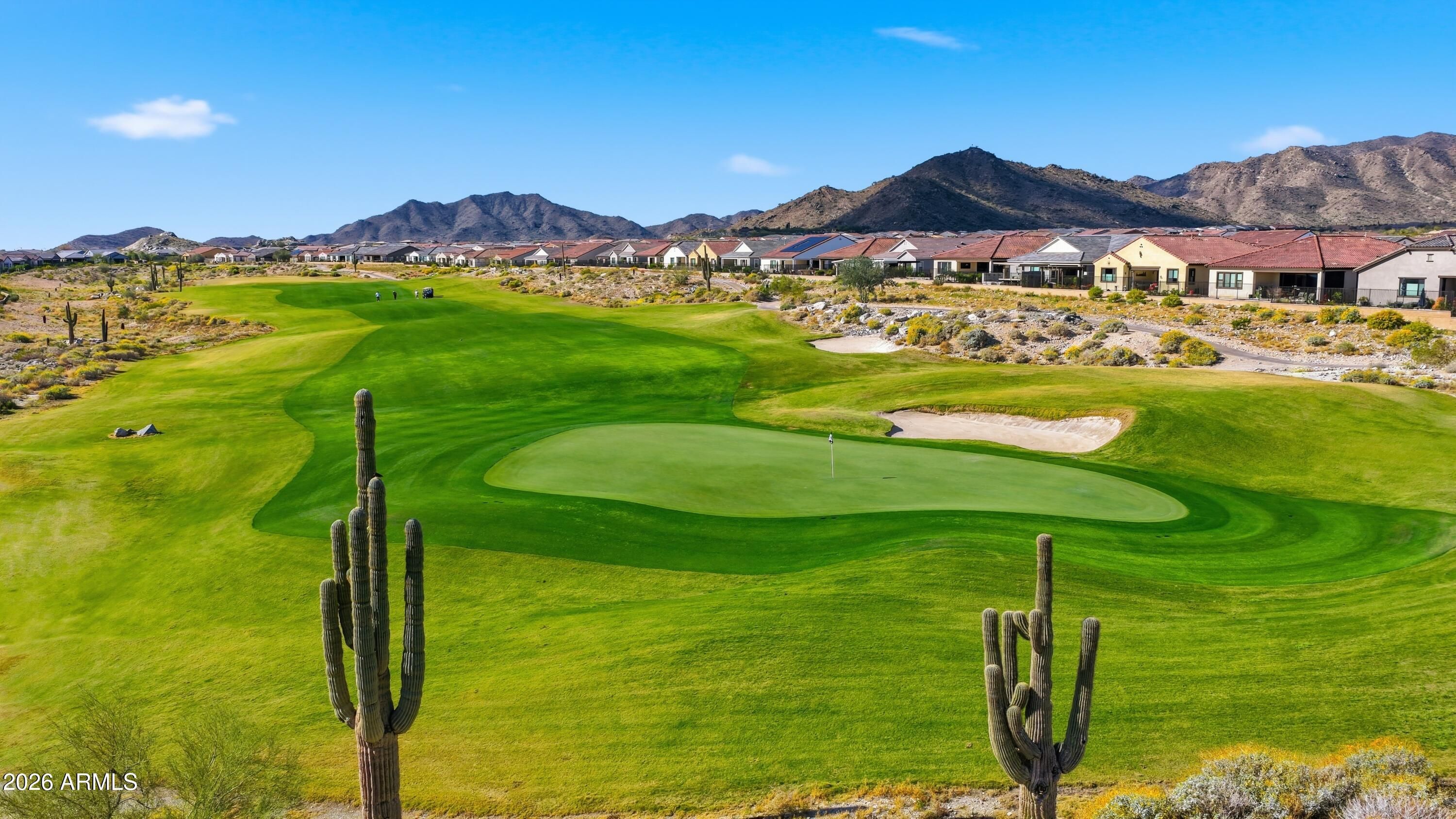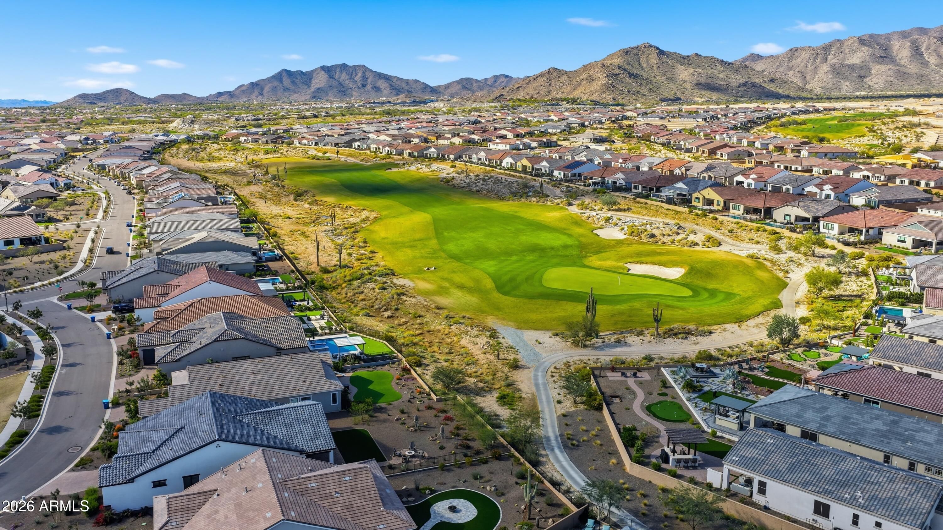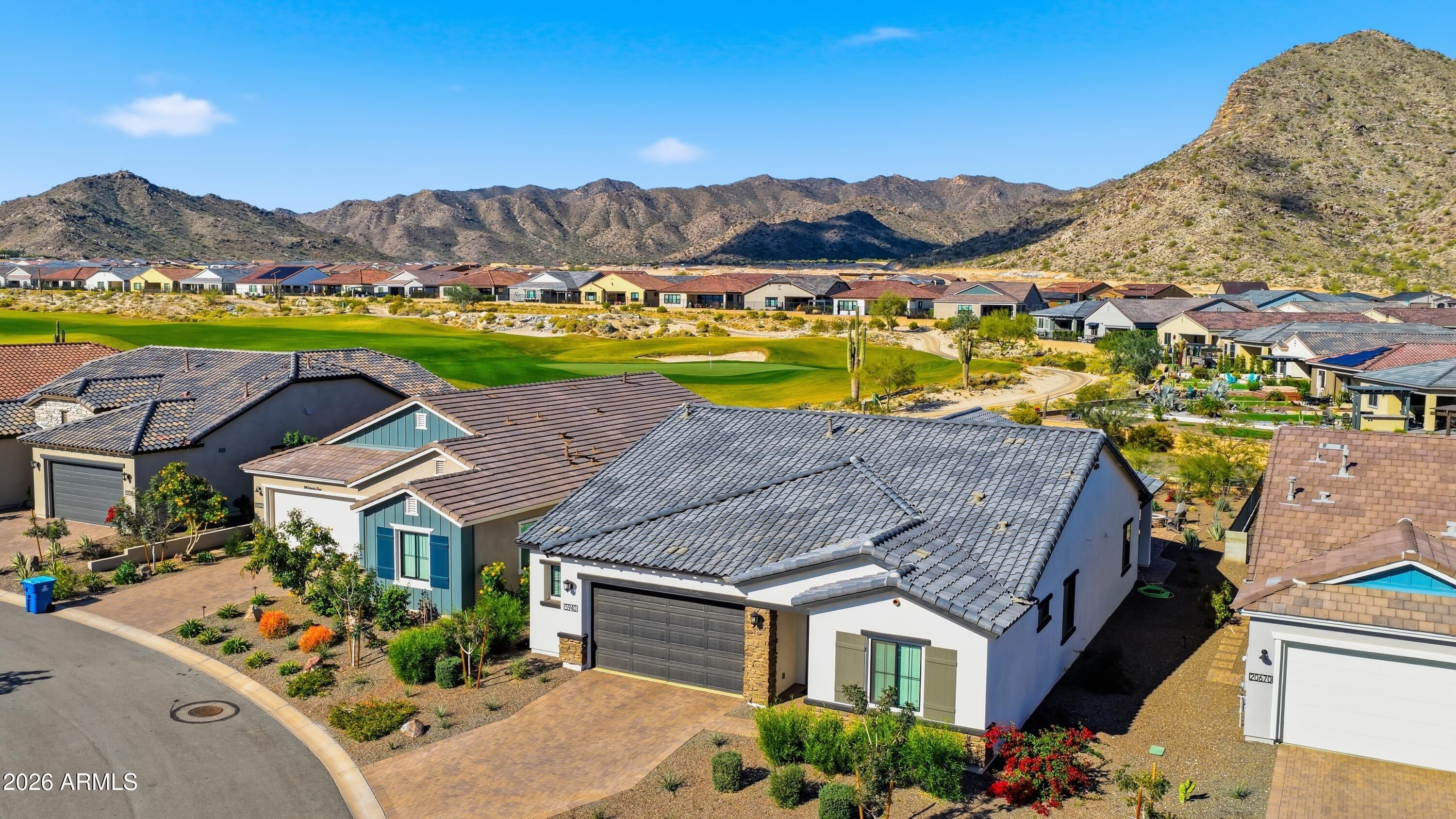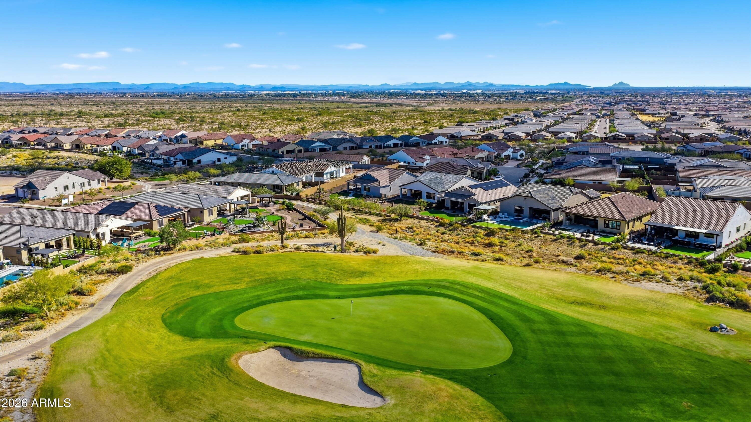 Massive panoramic golf course and mountain views set the stage for this exceptional K. Hovnanian Goldfinch floorplan, ideally positioned on an oversized homesite overlooking the 3rd green of the Victory Course and Tiger Mountain. Thoughtfully designed and beautifully appointed, this 2,235 sqft residence offers refined desert living in one of Arizona's most sought-after active adult communities, Victory at Verrado. The open, airy layout features two spacious bedrooms, two baths, and a versatile den, perfect for a home office or creative retreat. A dramatic 20-foot window wall anchors the great room, framing breathtaking vistas and flooding the space with natural light while creating seamless indoor-outdoor flow. Sleek finishes and elevated upgrades enhance the home's modern aesthetic. An oversized two-car garage with epoxy floors provides ample space for two vehicles plus a golf cart, ideal for embracing the Victory lifestyle in comfort and style. This is more than a home; it's a front-row seat to Arizona's most captivating scenery.