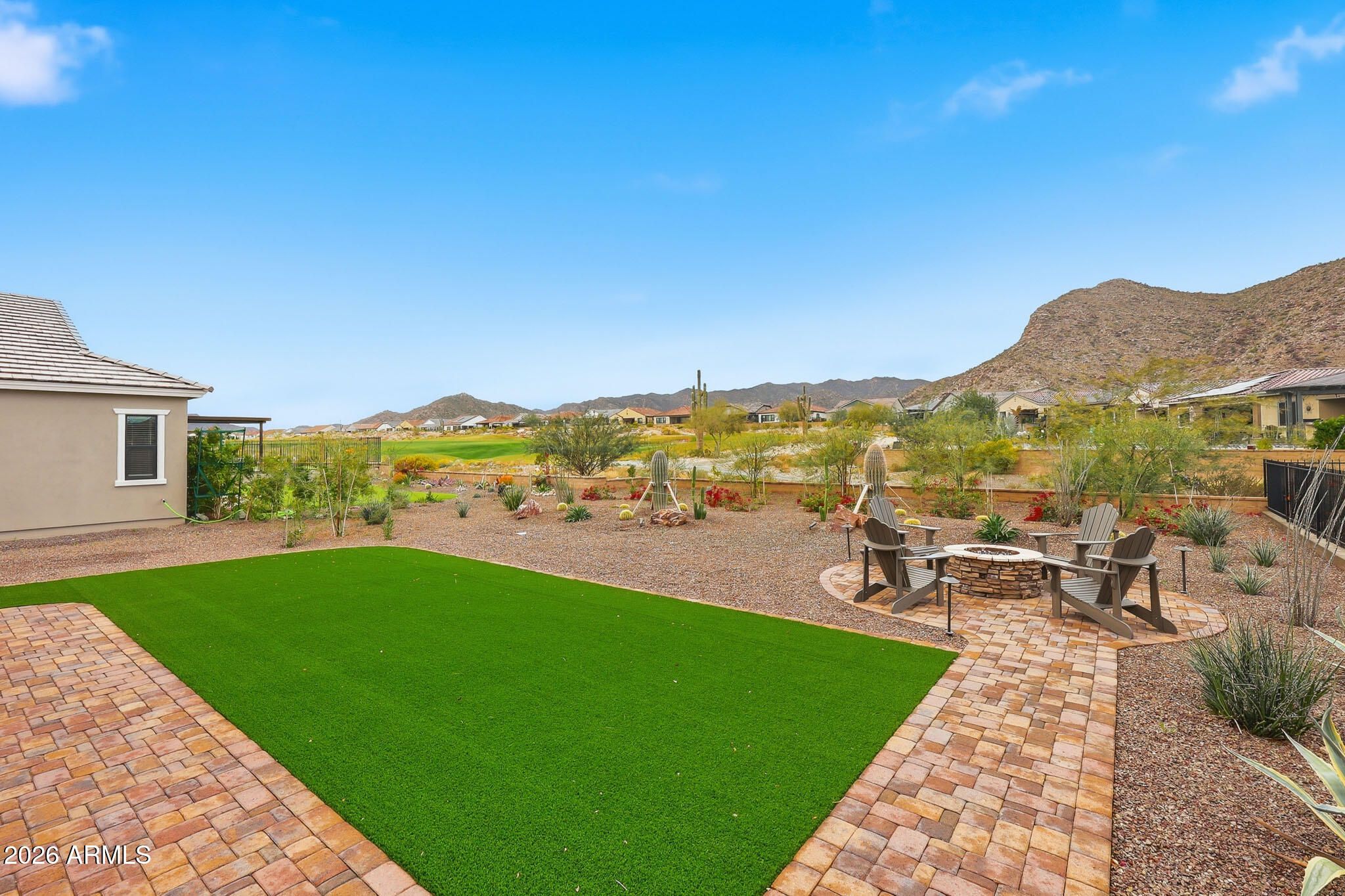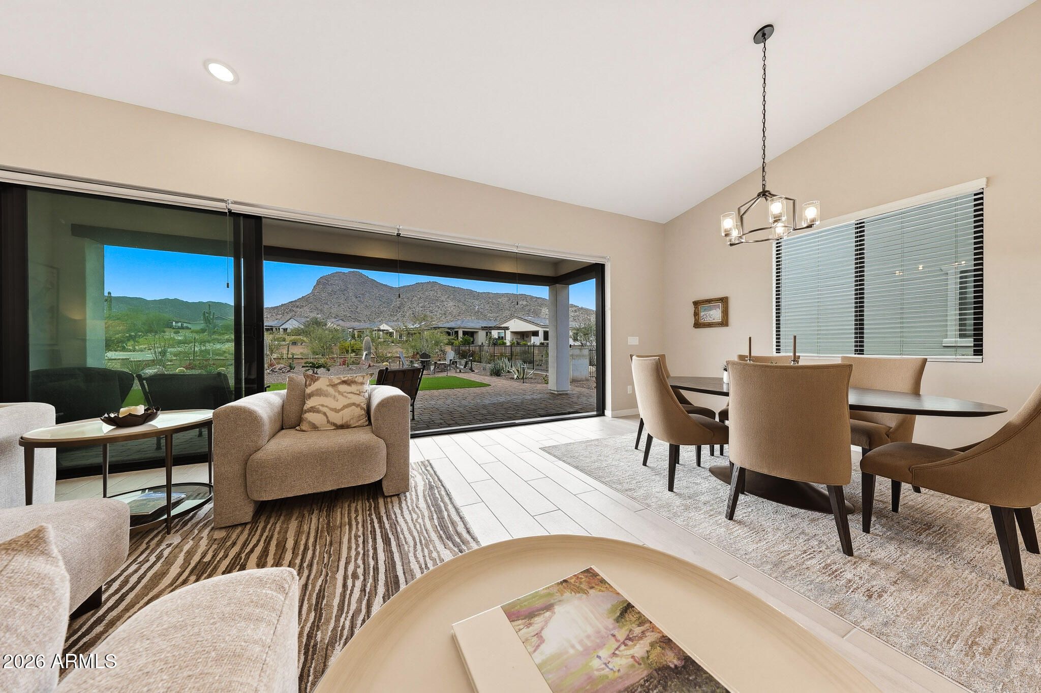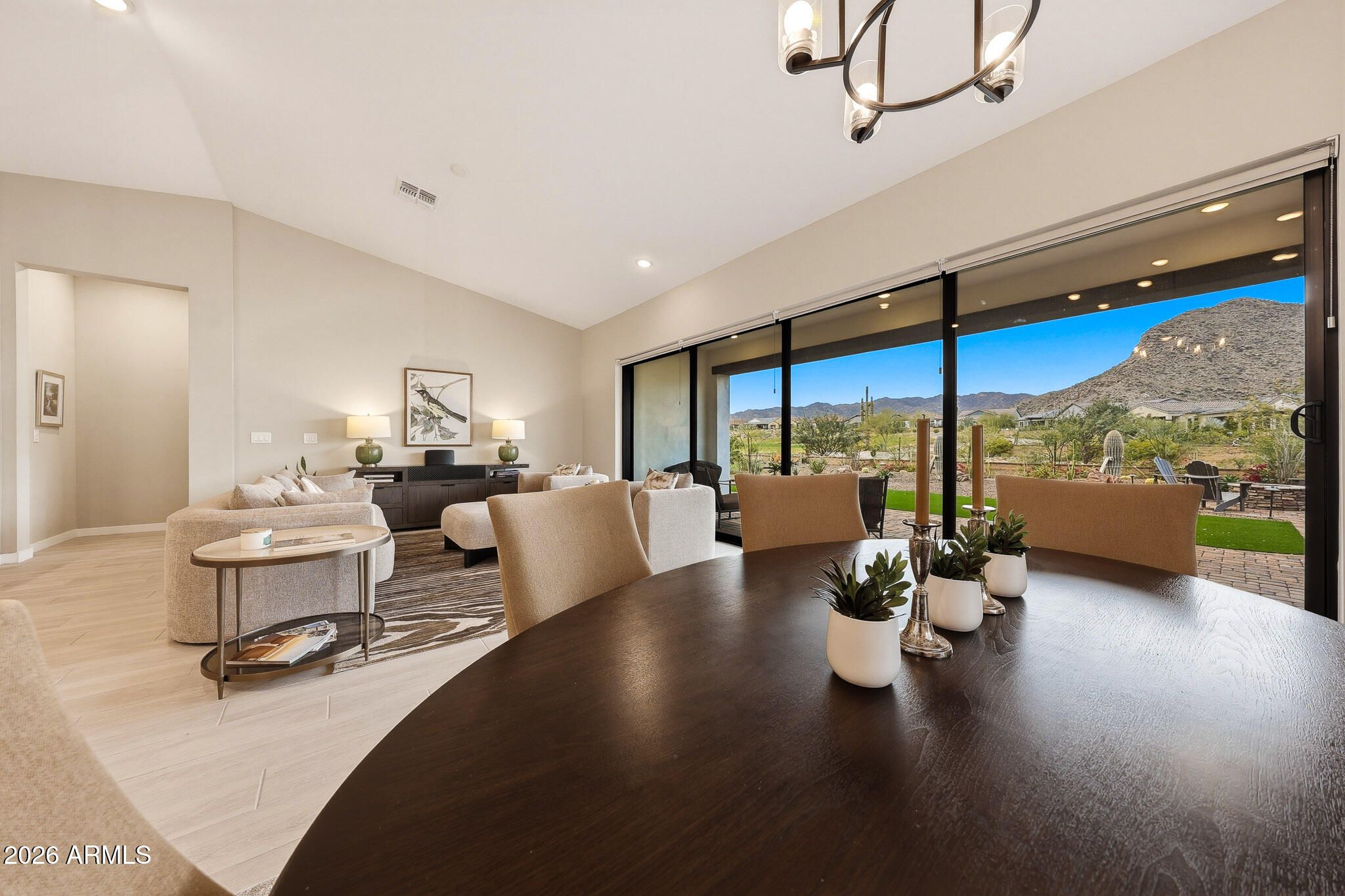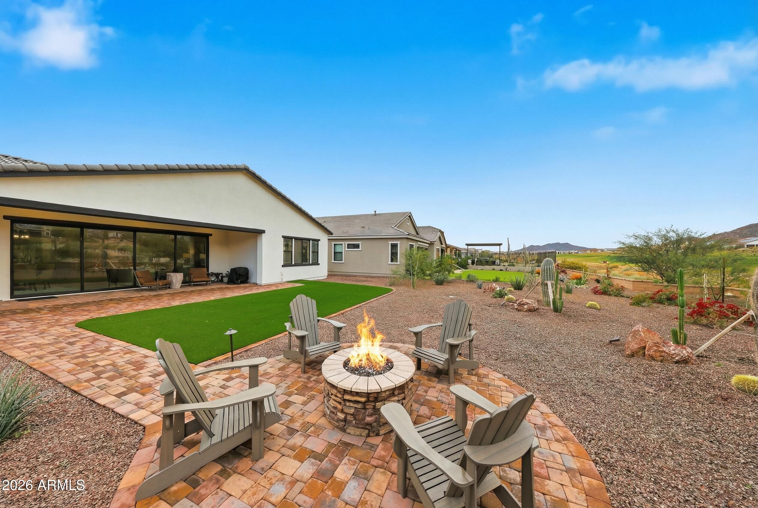 Massive panoramic golf course and mountain views set the stage for this exceptional K. Hovnanian Goldfinch floorplan, ideally positioned on an oversized homesite overlooking the 3rd green of the Victory Course and Tiger Mountain. Thoughtfully designed and beautifully appointed, this 2,235 sqft residence offers refined desert living in one of Arizona's most sought-after active adult communities, Victory at Verrado. The open, airy layout features two spacious bedrooms, two baths, and a versatile den, perfect for a home office or creative retreat. A dramatic 20-foot window wall anchors the great room, framing breathtaking vistas and flooding the space with natural light while creating seamless indoor-outdoor flow. Sleek finishes and elevated upgrades enhance the home's modern aesthetic. An oversized two-car garage with epoxy floors provides ample space for two vehicles plus a golf cart, ideal for embracing the Victory lifestyle in comfort and style. This is more than a home; it's a front-row seat to Arizona's most captivating scenery.