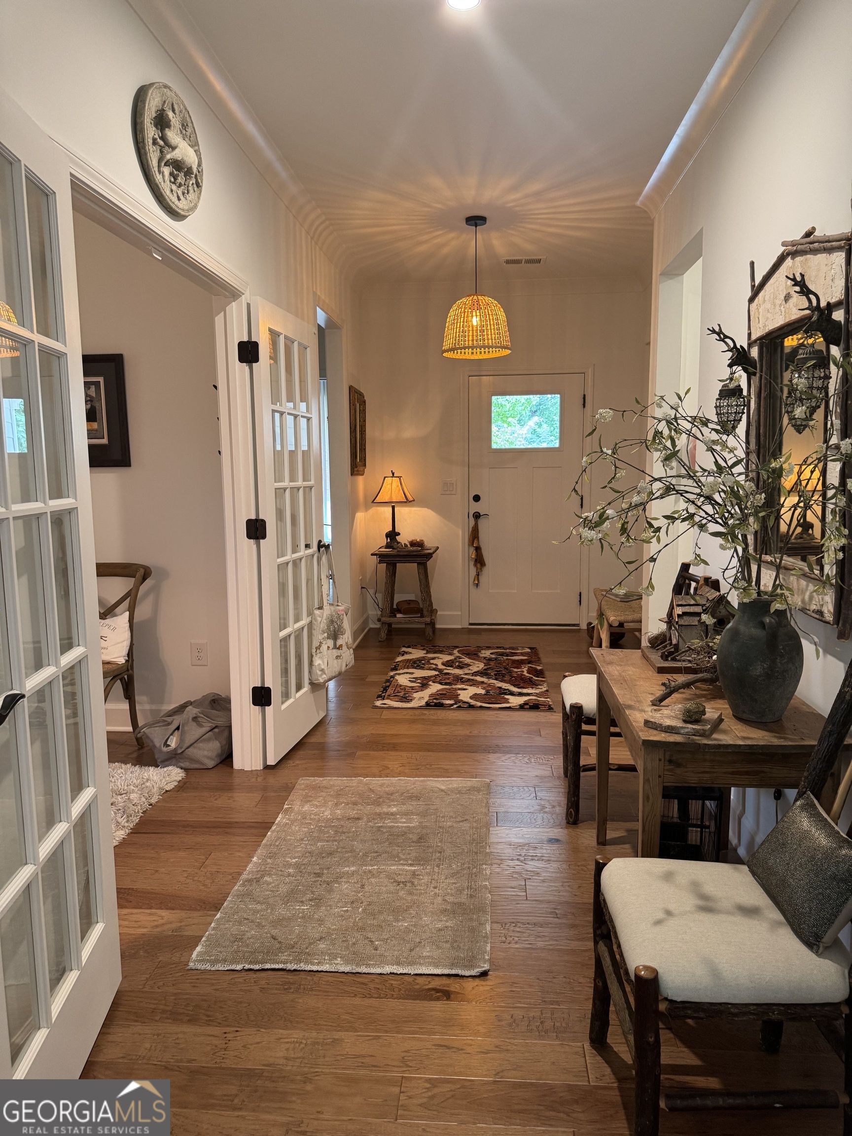 This Summerwood floor plan located in Del Webb Chateau Elan 55+ active adult community in Hoschton, Georgia offers 2BR/2BA with a Flex Room/study and is located on a private cul-de-sac lot featuring an open-concept design with all the upgrades. The main living area offers engineered hardwood floors, upgraded 5-inch trim throughout and a faux brick accent wall which opens to the chef's dream kitchen, equipped with upgraded Kitchen Aid stainless steel appliances, Quartz countertops, soft close cabinets, under-counter lighting and a large island ideal for gathering with friends and family. Primary suite is complete with a spa-like ensuite bathroom, upgraded zero entry shower, Restoration Hardware lighting and mirrors in both bathrooms and a large walk-in closet. Step outside to your own private oasis on the screen patio and large open patio, offering new flag stone, surrounded with lots of privacy. Convenient to shopping, dining, medical facilities, and I-85. Quick move in, flexible closing ! Schedule your showing today.