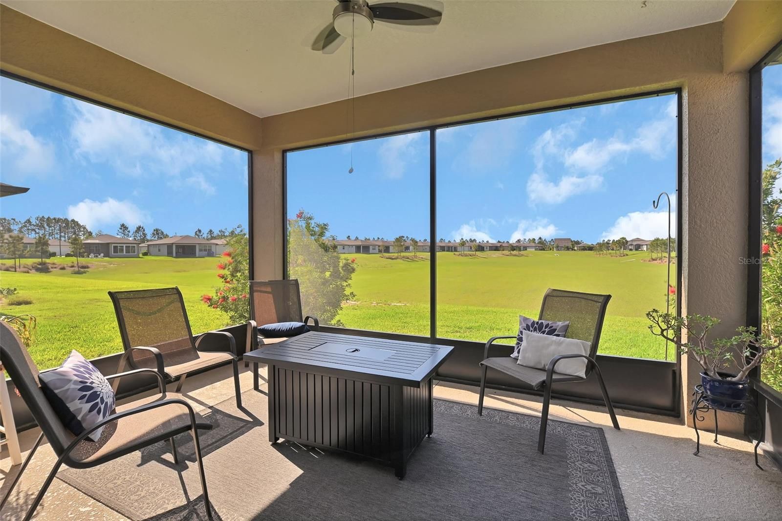 **Price Improvement** Come live a very amenity rich lifestyle in this 2020 built Garden Home in the beautiful golf community of DelWebb Stone Creek! The spectacular open and long range views from this home are hard to find, and even more difficult to pass up! Imagine having your choice of enjoying your morning coffee, an evening cocktail, or even just relaxing with a book while overlooking the peaceful expansive view from your screened lanai or watch the comings and goings of the neighborhood from the quiet privacy of your cozy screened front porch! These two screened areas also allow for refreshing cross breezes through the home, while the handy additional open air paver patio out back is perfect for grilling, stargazing, or simply sitting around a comforting fire pit with hot cocoa on a chilly night. This home is a cook’s dream with a large well designed kitchen consisting of spacious upgraded granite countertops and cabinets, a large center island, upgraded stainless appliances with an LG electric conventional/convection range that also air fries, a well sized reach-in pantry, and a cheerful, bright window above the kitchen sink. The conveniently located indoor laundry room has built-in shelving and boasts a brand new washer and dryer set. The generously sized Primary Bedroom can accommodate larger furnishings and has an attached en-suite bath with private water closet. The large, bright step-in shower and wide solid surface countertops with dual sinks and wood cabinets create a luxurious spa-like atmosphere. The larger walk-in closet provides great storage space for all your clothing and accessories. The much sought-after Guest Bedroom with a very nice walk-in closet is perfectly situated towards the front of the home, next to the Guest Bath, providing optimal guest comfort and privacy. The 2 car garage contains a handy utility sink, an energy efficient 50 gal hybrid water heater, a whole house water softener, and an automatic garage door opener with remotes. The study/office/flex room provides a separate work-from-home space complete with a Cat6 outlet (one of 3 Cat6 outlets spaced throughout the the home), or is perfect for crafts, games, reading, a home gym, or even extra guest space. Relax and enjoy a more leisurely life in this Garden Home, as lawn maintenance, irrigation, weekly trash and recycling pickup, and basic internet are all included within the HOA fees. Enjoy the DelWebb 55+ lifestyle of the Stone Creek community with many amazing amenities including Full Service Health and Fitness/Spa Center, Heated Resort Outdoor Pool and Heated Indoor 25 meter Lap Pool, 5 Tennis Courts, 16 lit Pickleball Courts, 8 Bocce Ball Lanes, Basketball Court, Horseshoe Pits, Community Garden, Dog Park with agility course, Softball Field, numerous Fishing Ponds and miles of walking, biking and golf cart trails. Stone Creek is socially active with a dedicated Lifestyle Director and Spa Director and over 60 clubs and interest groups to join. Stone Creek is located within proximity to golf, shopping, dining, medical services, the World Equestrian Center, local attractions and numerous outdoor activities. Stone Creek also offers a membership optional semi-private golf course, Grille restaurant and an RV storage lot for additional fees. *All room dimensions are approximate; Buyer/Buyer’s Representative to verify*