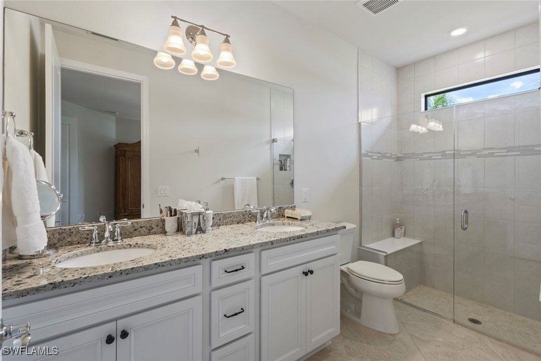 Welcome to your Florida dream home! Perfectly positioned on a PREMIUM LOT in the highly desirable 55+ Del Webb Naples community, this impeccably maintained SEAGROVE floor plan villa showcases breathtaking views of both the lake and the 2nd fairway of Panther Run Golf Course—all from the comfort of your EXTENDED SCREENED LANAI. This 2-bedroom plus den, 2-bath home is thoughtfully designed for comfort and style, featuring TILE FLOORING laid on the diagonal throughout the main living areas, CUSTOM WINDOW TREATMENTS, and a well-appointed kitchen with GRANITE COUNTERTOPS and UPGRADED CABINETRY. Ceiling fans and custom lighting create a warm, inviting ambiance throughout the home. The spacious PRIMARY SUITE is a serene retreat, complete with dual vanities, a walk-in shower enclosure, and generous closet space for added convenience. Experience peace of mind and reliable storm protection with IMPACT RESISTANT WINDOWS throughout the home. GOLF LOVERS — Panther Run Golf Club offers optional MEMBERSHIPS with premium golf experiences just steps from your backyard. As a proud resident of Del Webb Naples, you’ll enjoy WORLD-CLASS AMENITIES that rival luxury resorts: dine at the Rusty Putter Restaurant, soak in the RESORT-STYLE or LAP POOLS, break a sweat in the state-of-the-art FITNESS CENTER, and play your way through PICKLEBALL, TENNIS, bocce, billiards—even a top-tier GOLF SIMULATOR! Need groceries, church, or a bite to eat? Just hop in your golf cart and cruise into town—Publix and the heart of Ave Maria are just minutes away. This isn’t just a home—it’s a LIFESTYLE UPGRADE in one of Southwest Florida’s most vibrant 55+ communities. Don’t miss your chance to live where fun, fitness, and friendships flourish year-round!