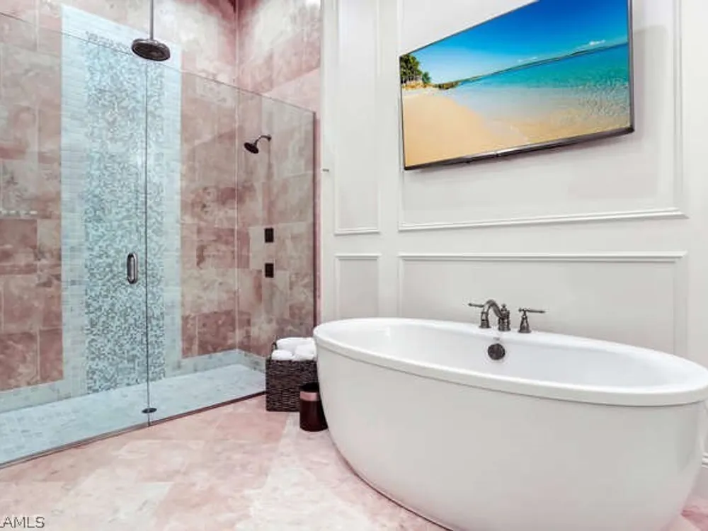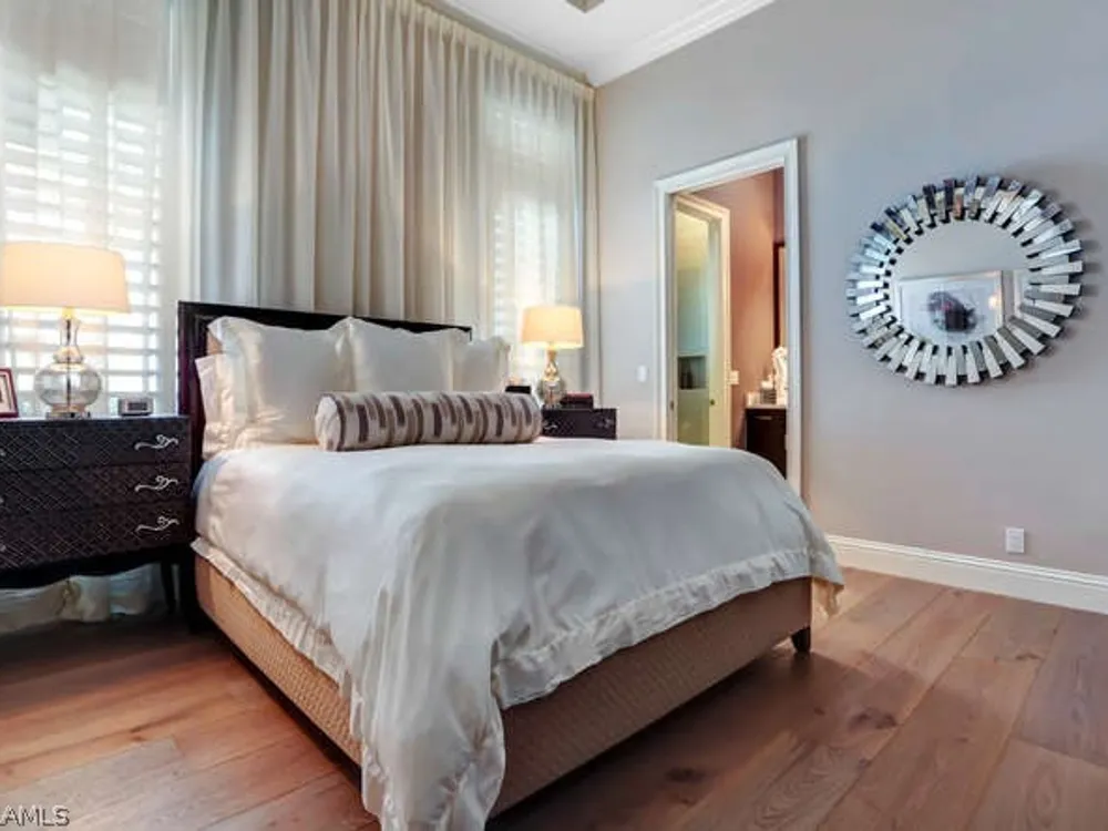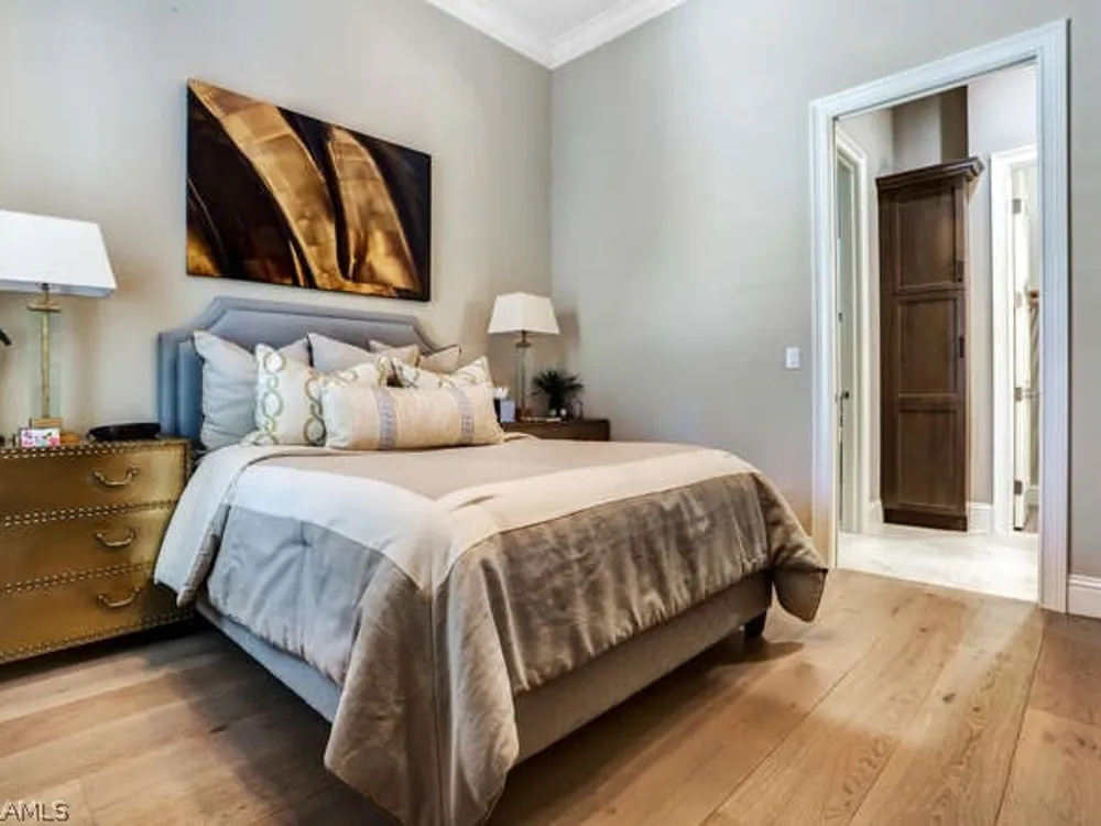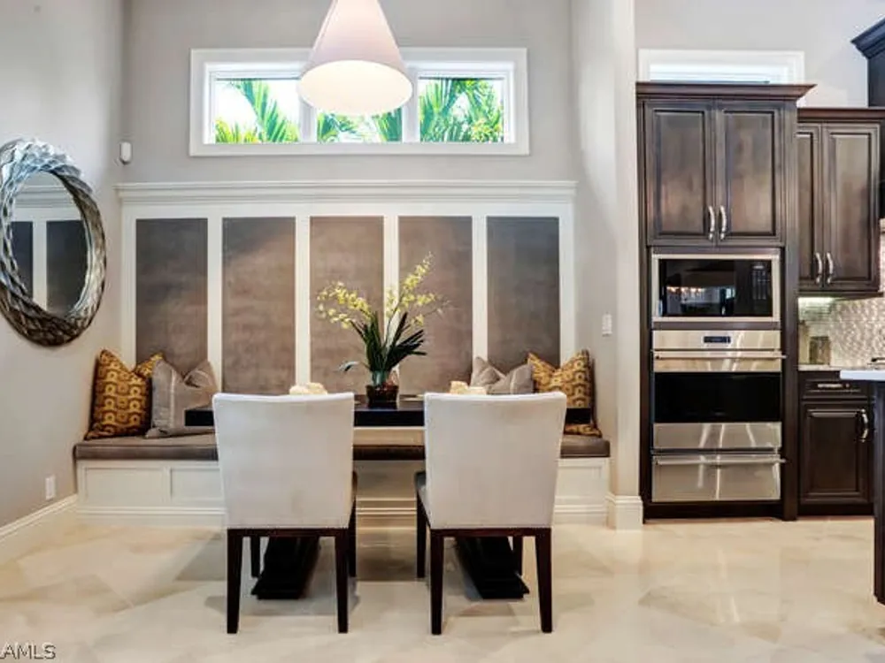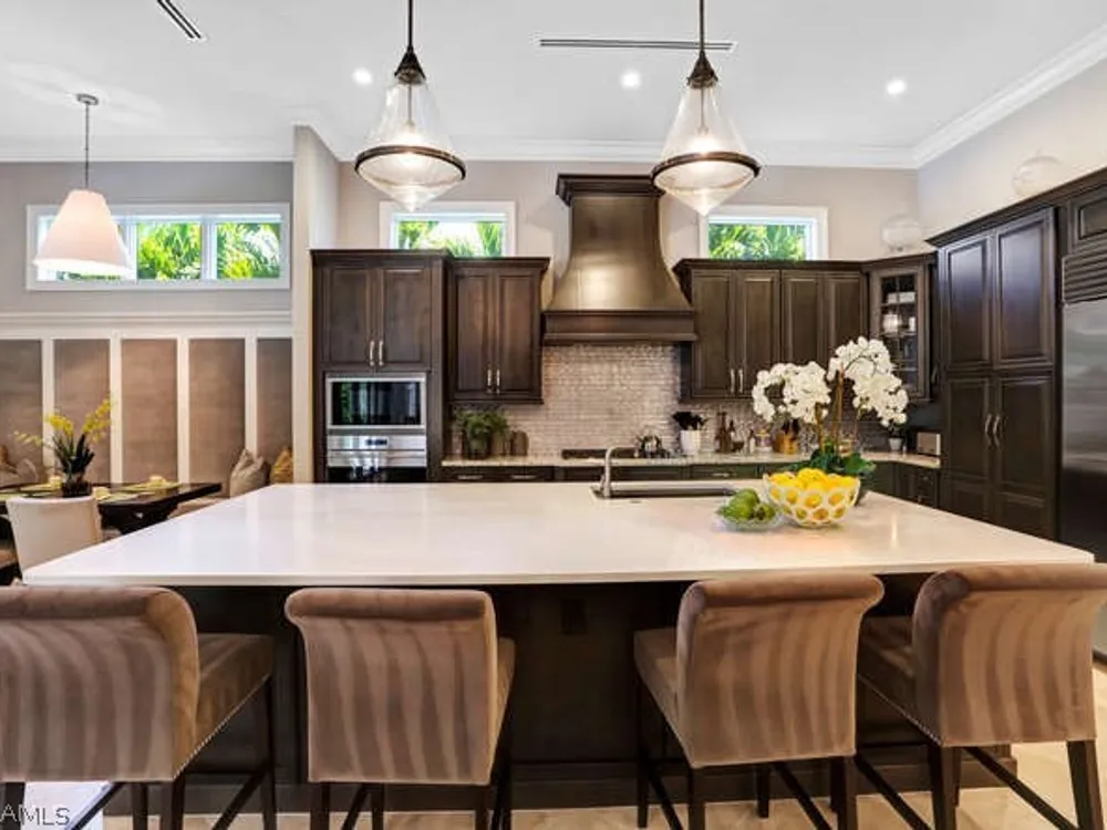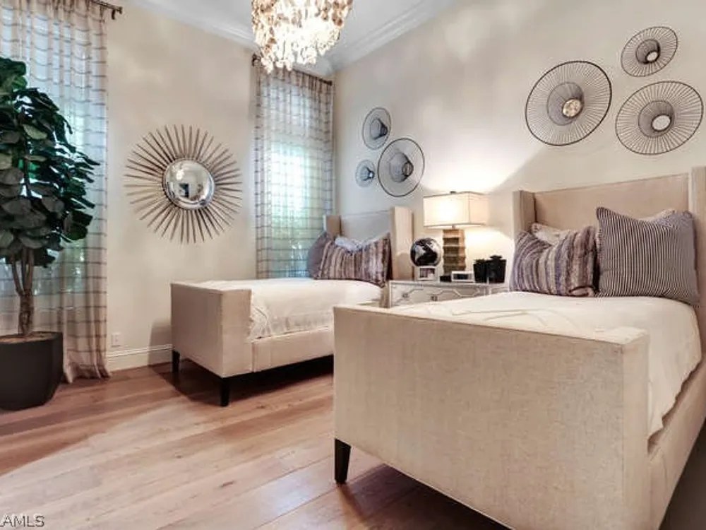 2015 Furnished former MODEL! Undeniably one of the most sought after neighborhoods is the Moorings located west of 41 between Park Shore and Old Naples. This 2015 model home has irresistible appeal, the upgrades dominates the trends for today’s buyer. Impressive curb appeal at first glance the facade revels West Indies architecture, gated walk way entrance and complete with outside multilevel water features with see- thru fireplace inside and out. One story residence that awakens you with a sense that you just found the perfect home. The great “ reveal “ in the kitchen is behind a door to gigantic walk-in pantry. Island kitchen bar , eat in breakfast area, 2 dish washers, refrigerator drawers, and gas cook top add to this dream kitchen. Seamless entertainment spaces and a balance of light, fine finishes and rich wood floors in all 4 bedrooms. and office. Wine room (refrigerated) and bar with sink its time to relax. 4 bedrooms, den/ library, 6 baths,(4 full) 2 1/2’s) 3 AC car garages, plus full house generator. High tech features includes HD TV’s with kaleidoscope, matrix rewind( view from any TV) Power screens and shutters, elective drapes and shades. Residents are eligible for membership to Mooring private beach park Proximity to myriad shopping, dining, and cultural offerings. You can quick golf cart ride away to many fun places.