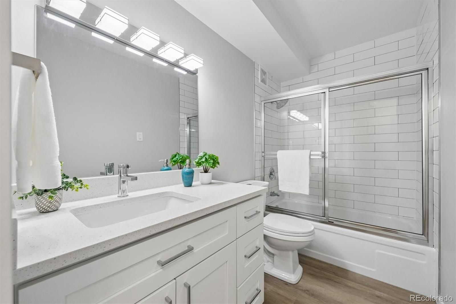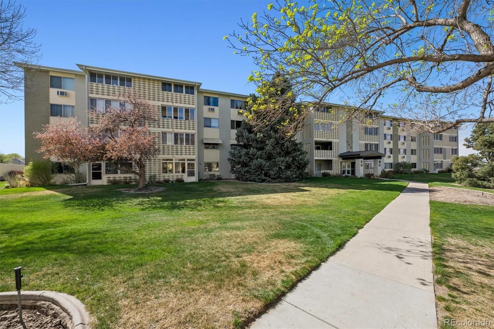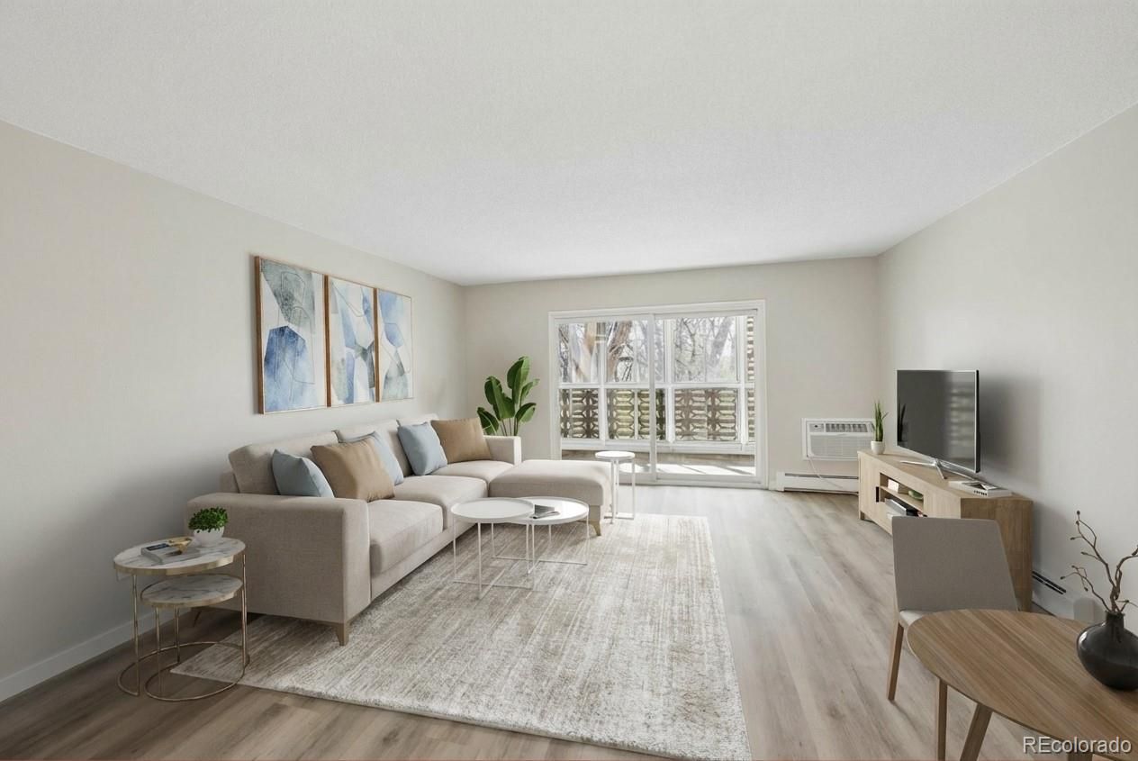 Gorgeous new remodel facing Windsor West- this is one you will want to be sure to see! This 855 sf condo has 1 bedroom, 1 bathroom, and includes 1 car detached garage w/opener. Conveniently located on the 2nd floor, same as laundry room and bonus storage closet. Luxury Vinyl Flooring thru-out- no carpet! Remodeled kitchen features white shaker cabinets, new stainless appliances, quartz countertops, tile backsplash, double sided pantry for plenty of storage, and bright LED lighting. Bathroom remodel all new with tall white shaker vanity, quartz top, new tile surround around the tub, and new fixtures. Spacious oversized bedroom with 2 closets and new wall ac unit. Living room spacious off kitchen with new wall ac unit, and lanai with glass/screen enclosure and double pane slider door. Facing Windsor West with beautiful trees and nature, and access the walking trail and nature preserve steps from this building. **Windsor Gardens is Colorado's Largest Age 55+ Active Adult Living Condo Community. Did you know? Monthly HOA Dues include annual property taxes! And heat, water, sewer, trash, round-the-clock patrolling community responders, full time onsite association management, grounds/building maintenance, and activities department. Enjoy clubhouse amenities such as fitness center, indoor/outdoor pools, hot tub, sauna, billiards, library, craft rooms for ceramics, sewing, woodworking, and 9 hole par 3 golf course and onsite restaurant both open to the public. Stay engaged with a wide array of activities, clubs, and events scheduled every month. Additional features include garden plot program, private walking trail and nature preserve, and RV/Boat storage. The Highline Canal runs full length along south side of the complex. RTD Bus Stops located thru-out the community. FHA/VA approved. Close to restaurants, stores, shopping…Minutes to Lowry, Hwy 225, Cherry Creek…Easy access to DIA and downtown. Come see for yourself what Windsor Gardens has to offer. ©2021**