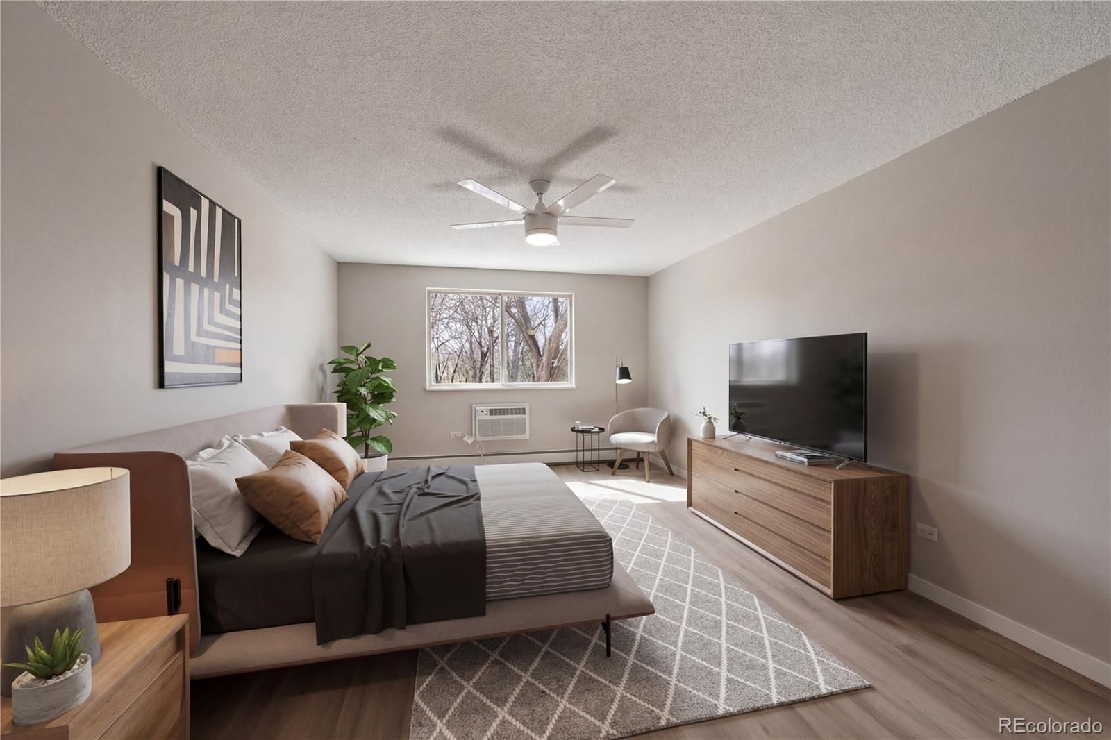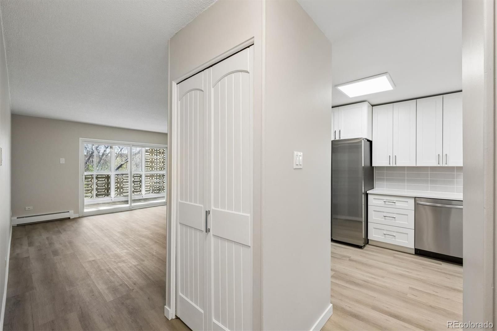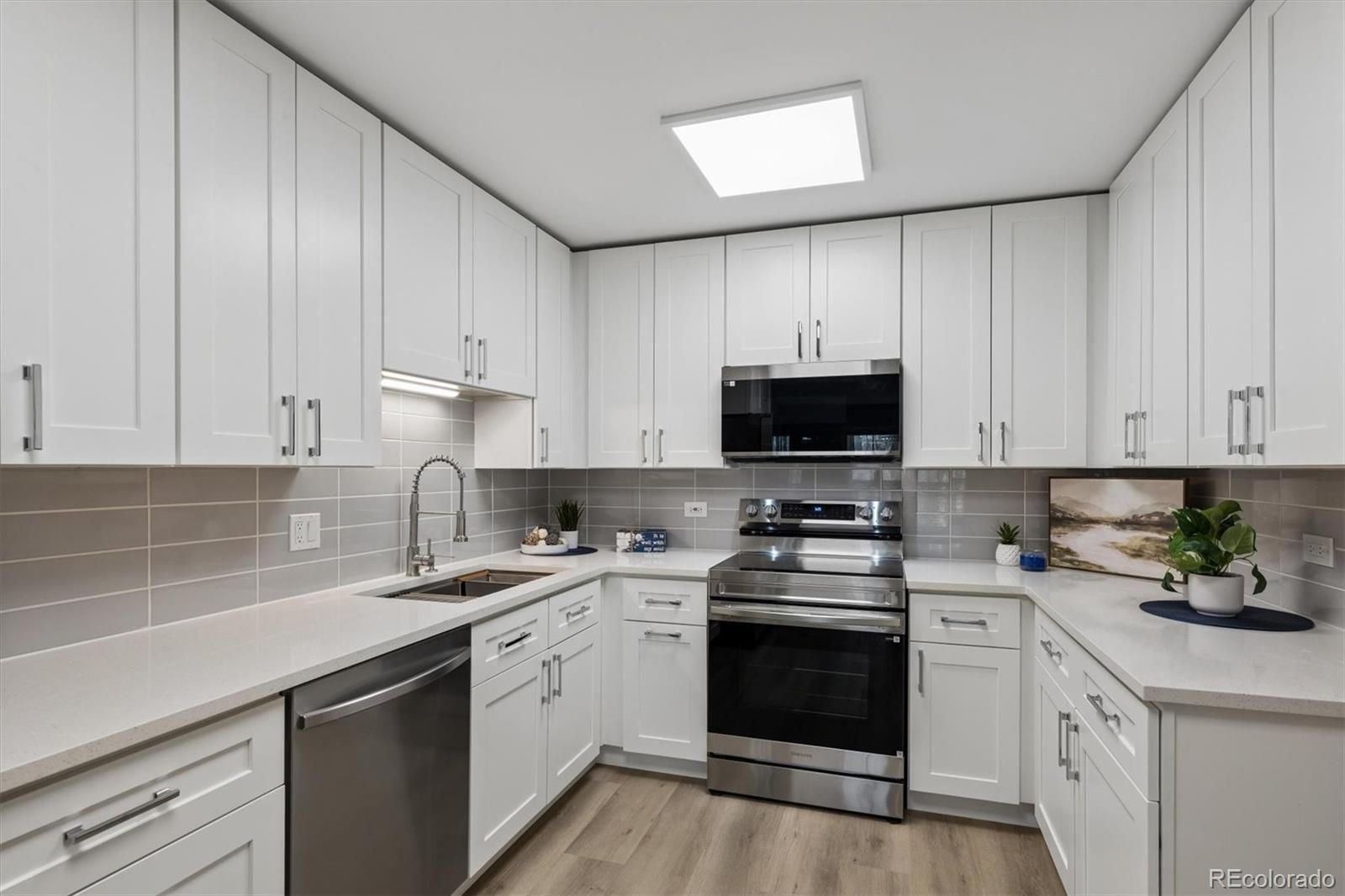 Gorgeous new remodel facing Windsor West- this is one you will want to be sure to see! This 855 sf condo has 1 bedroom, 1 bathroom, and includes 1 car detached garage w/opener. Conveniently located on the 2nd floor, same as laundry room and bonus storage closet. Luxury Vinyl Flooring thru-out- no carpet! Remodeled kitchen features white shaker cabinets, new stainless appliances, quartz countertops, tile backsplash, double sided pantry for plenty of storage, and bright LED lighting. Bathroom remodel all new with tall white shaker vanity, quartz top, new tile surround around the tub, and new fixtures. Spacious oversized bedroom with 2 closets and new wall ac unit. Living room spacious off kitchen with new wall ac unit, and lanai with glass/screen enclosure and double pane slider door. Facing Windsor West with beautiful trees and nature, and access the walking trail and nature preserve steps from this building. **Windsor Gardens is Colorado's Largest Age 55+ Active Adult Living Condo Community. Did you know? Monthly HOA Dues include annual property taxes! And heat, water, sewer, trash, round-the-clock patrolling community responders, full time onsite association management, grounds/building maintenance, and activities department. Enjoy clubhouse amenities such as fitness center, indoor/outdoor pools, hot tub, sauna, billiards, library, craft rooms for ceramics, sewing, woodworking, and 9 hole par 3 golf course and onsite restaurant both open to the public. Stay engaged with a wide array of activities, clubs, and events scheduled every month. Additional features include garden plot program, private walking trail and nature preserve, and RV/Boat storage. The Highline Canal runs full length along south side of the complex. RTD Bus Stops located thru-out the community. FHA/VA approved. Close to restaurants, stores, shopping…Minutes to Lowry, Hwy 225, Cherry Creek…Easy access to DIA and downtown. Come see for yourself what Windsor Gardens has to offer. ©2021**