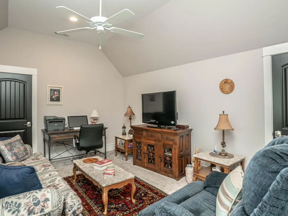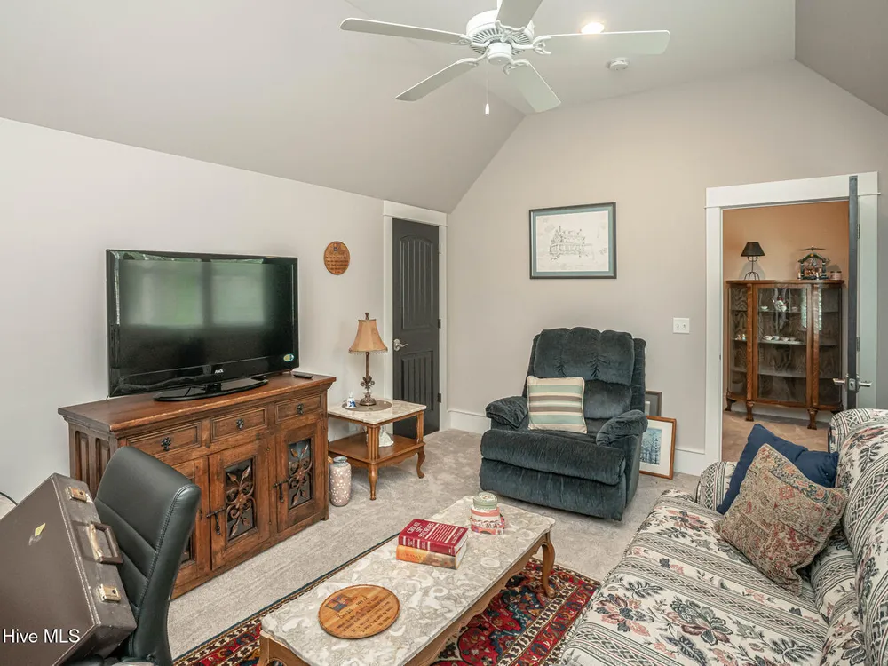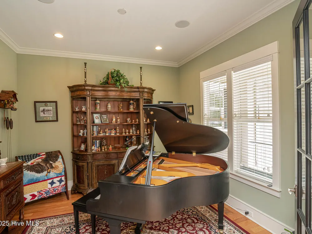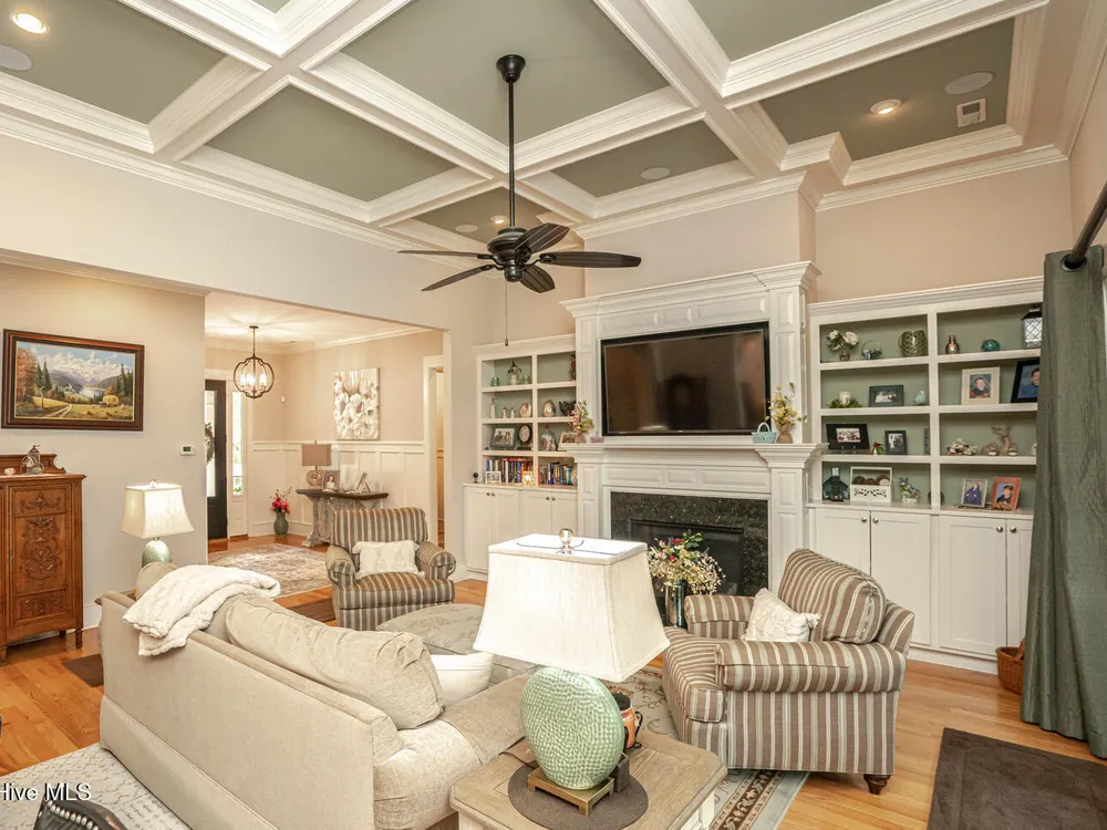 - Blinds/Shades, Solid Surface, Walk-In Closet(s), Walk-in Shower, Tray Ceiling(s), Sound System, Entrance Foyer, Pantry, Mud Room, Master Downstairs, Kitchen Island, High Ceilings, Generator Plug, Gas Log, Ceiling Fan(s), Bookcases