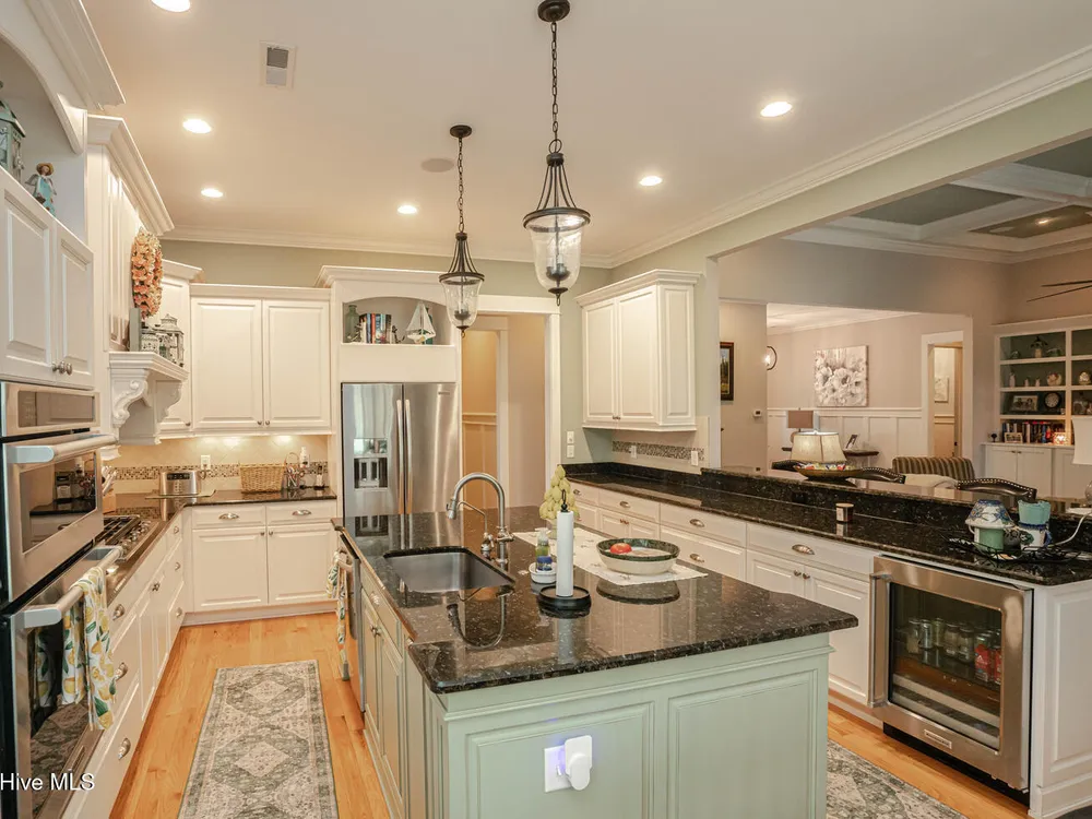 Hello Curb Appeal! A low country inspired 4BR and 3.5BA home built in 2015 by two-time Southern Living Custom Builder of the Year, Whitney Blair. Tucked back into a quiet section of Ocean Ridge Plantation on .53/acre, this was built with great attention to detail and entertaining in mind, both inside and out. The surround sound system brings the music to the living room, kitchen, primary bedroom, & the screened-in porch. Meticulous planning and maintenance makes it an ideal alternative to new construction. The exterior is stone/hardi siding for that added touch of class. An oversized front porch with wood accented ceiling and a screened-in porch out back offer great living areas for year-round enjoyment. The best is yet to come. Step into the front entrance and follow the Brazilian Oak floors while embracing the architectural details from the wainscoting, coffered ceilings, & solid doors. Pass the den/office, currently home to a baby grand, & the LR beckons! A welcoming space offering a place to relax draws you into the kitchen with custom cabinetry, granite counters, Kitchen Aid appliances, & a cozy breakfast nook for casual day-to-day dining. The primary BR on the 1st floor has a huge walk-in closet and the BA has granite counters & an oversized walk-in tiled shower. 1 Guest BR down with an en suite bath & 2 more Guest BR's up. 2 walk-in attics for easy access to your extras. Hidden away are the full-house water filtration system with a reverse osmosis system in the kitchen, a whole-home generator hookup, an encapsulated crawl space with a dehumidifier, & a security system w/ fire alarm monitoring.Ocean Ridge is widely regarded as the premier community in Coastal NC w/ 4 golf courses, 2 clubhouses, 2 outdoor pools, a heated indoor pool, sauna, steam room, jacuzzi, fitness center, pickleball courts, a nature pavilion, a community garden, trails, & an oceanfront clubhouse on Sunset Beach. With over 75+ social groups, there is something for everyone in Ocean Ridge!