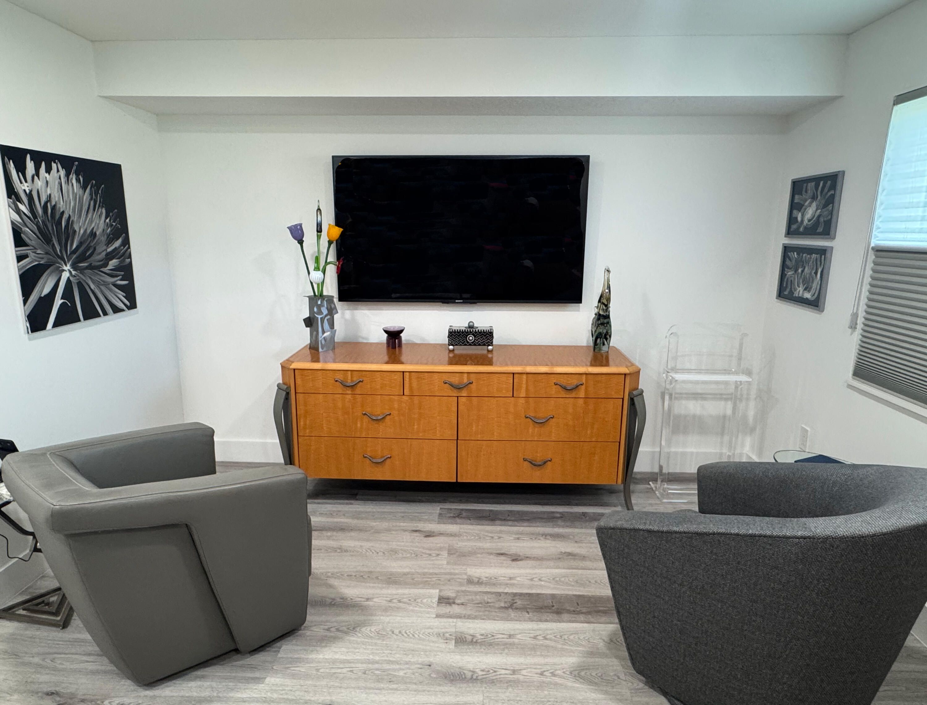 This top-of-the-line designer decorated 2-bedroom-plus-den, 2-bath ground floor unit includes private carport parking. Open plan. Completely renovated in 2022: new kitchen, new appliances, water filtration, wine chiller, tankless water heater, Roman shades, new a/c, new hot water heater, new roof and gutters in 2025. World-classs amenities include tennis, pickel ball, pools, clubhouse, theatre, fitness -- everything EXCEPT golf! Active 55+ adult community. Club offers breakfast and lunch daily and dinner can be delivered right to your door with a tip. Furniture is available.
