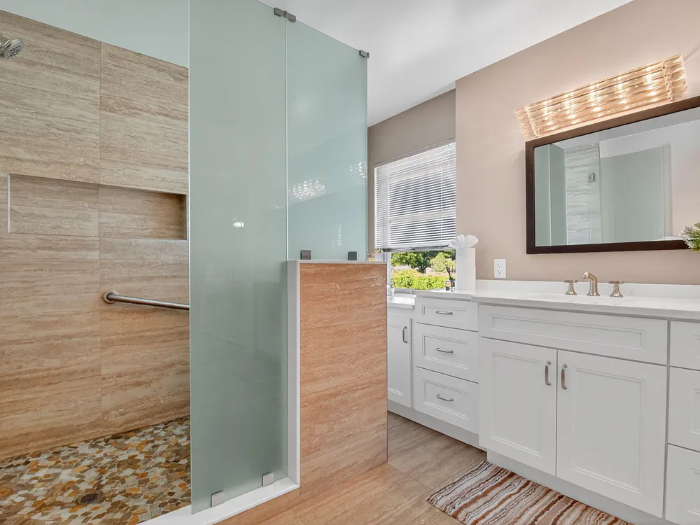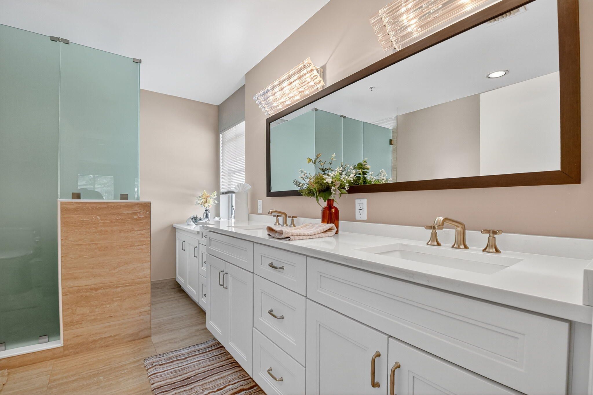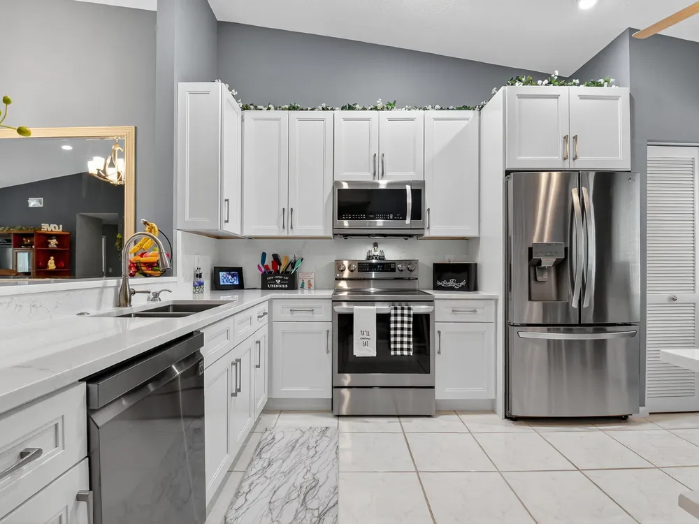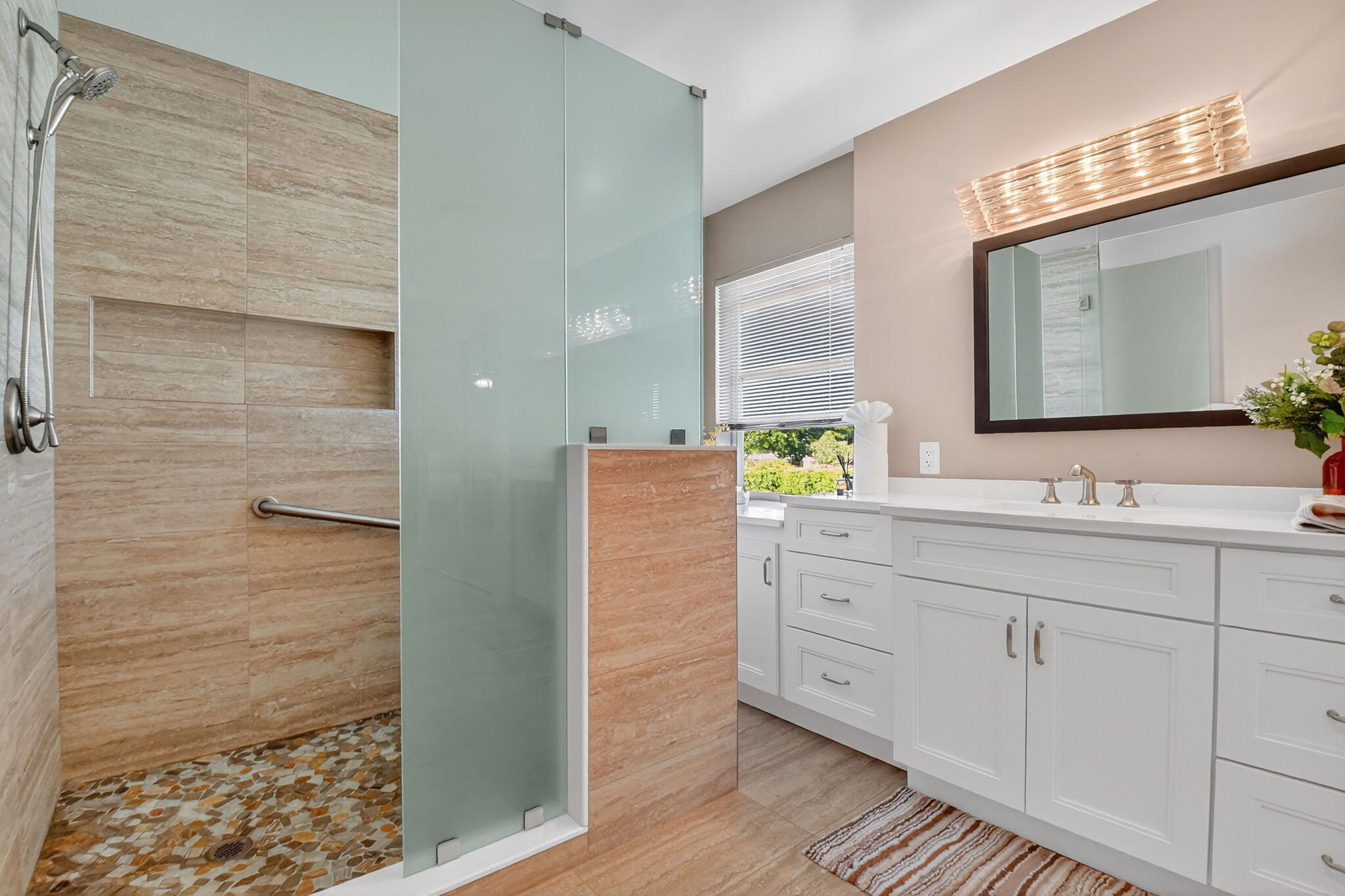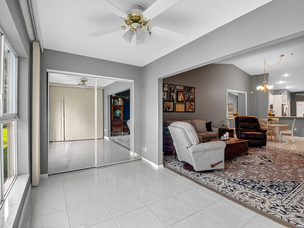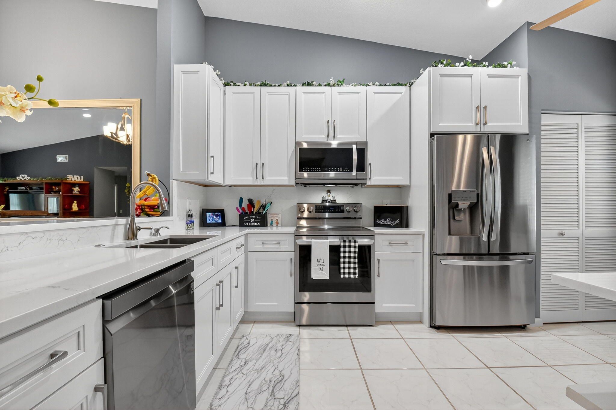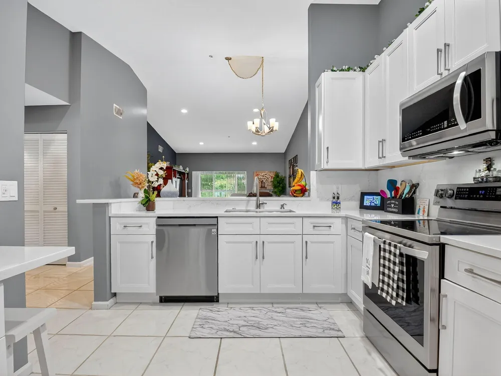 WOW! Step into Luxury and style with this beautifully updated 3BR/2BA corner unit offering 1,869 sq ft of beautiful and inviting living space. This top floor residence boasts vaulted ceilings and is Light and bright! Located in the highly desirable Coral Lakes community in Boynton Beach. This spacious unit features tile, an updated kitchen with white cabinetry, and a large living/dining area perfect for entertaining. The expansive primary suite offers tranquil views, a walk-in closet, and en-suite bath with dual vanities and walk-in shower. In-unit laundry, split floor plan, extra storage, and there's even an elevator for easy access! BRAND NEW ROOF!!!! Don't miss out on this one!