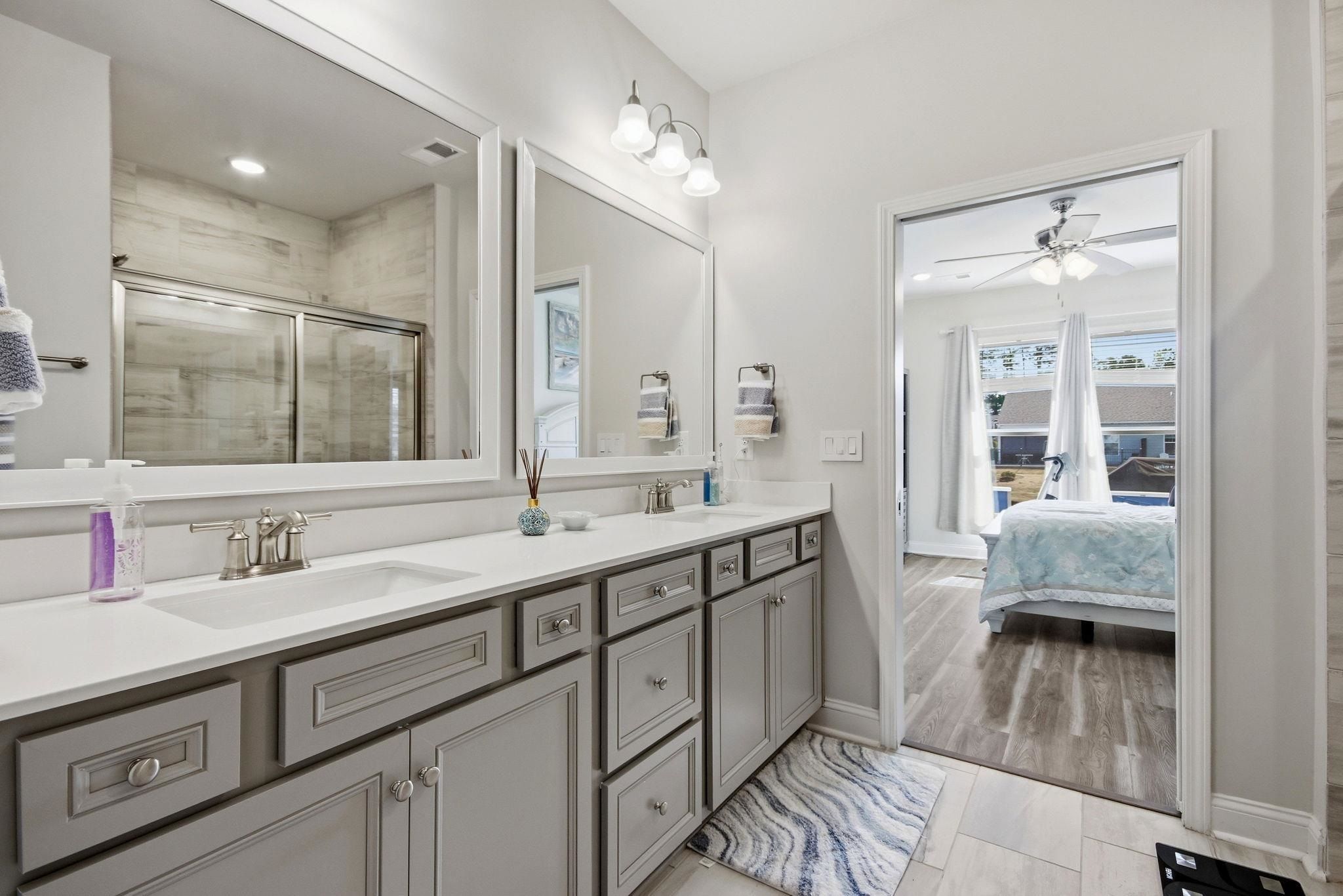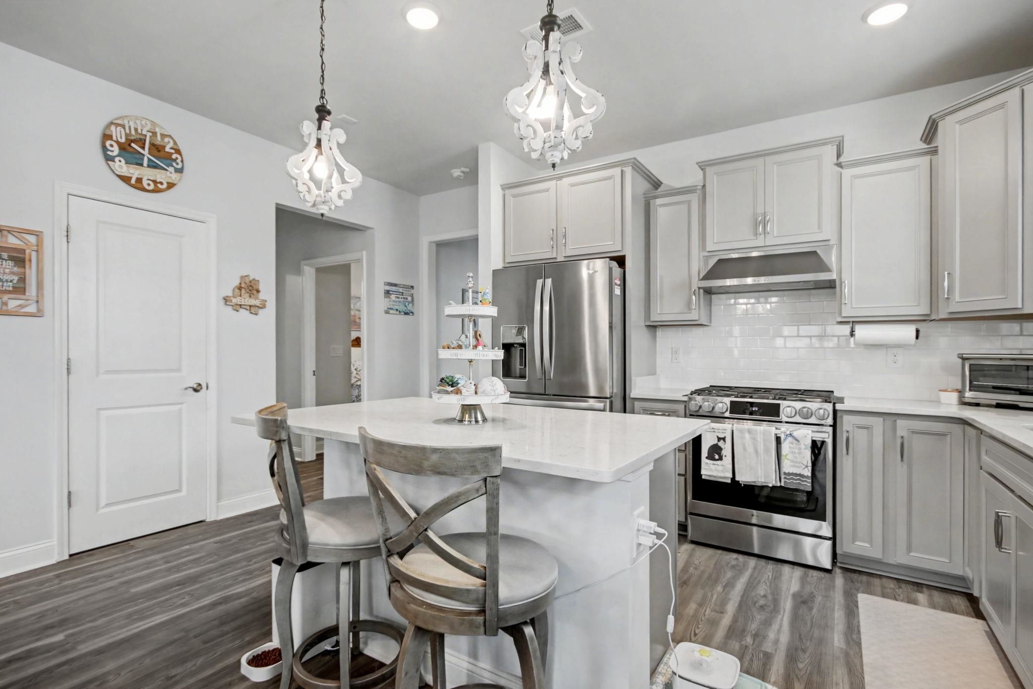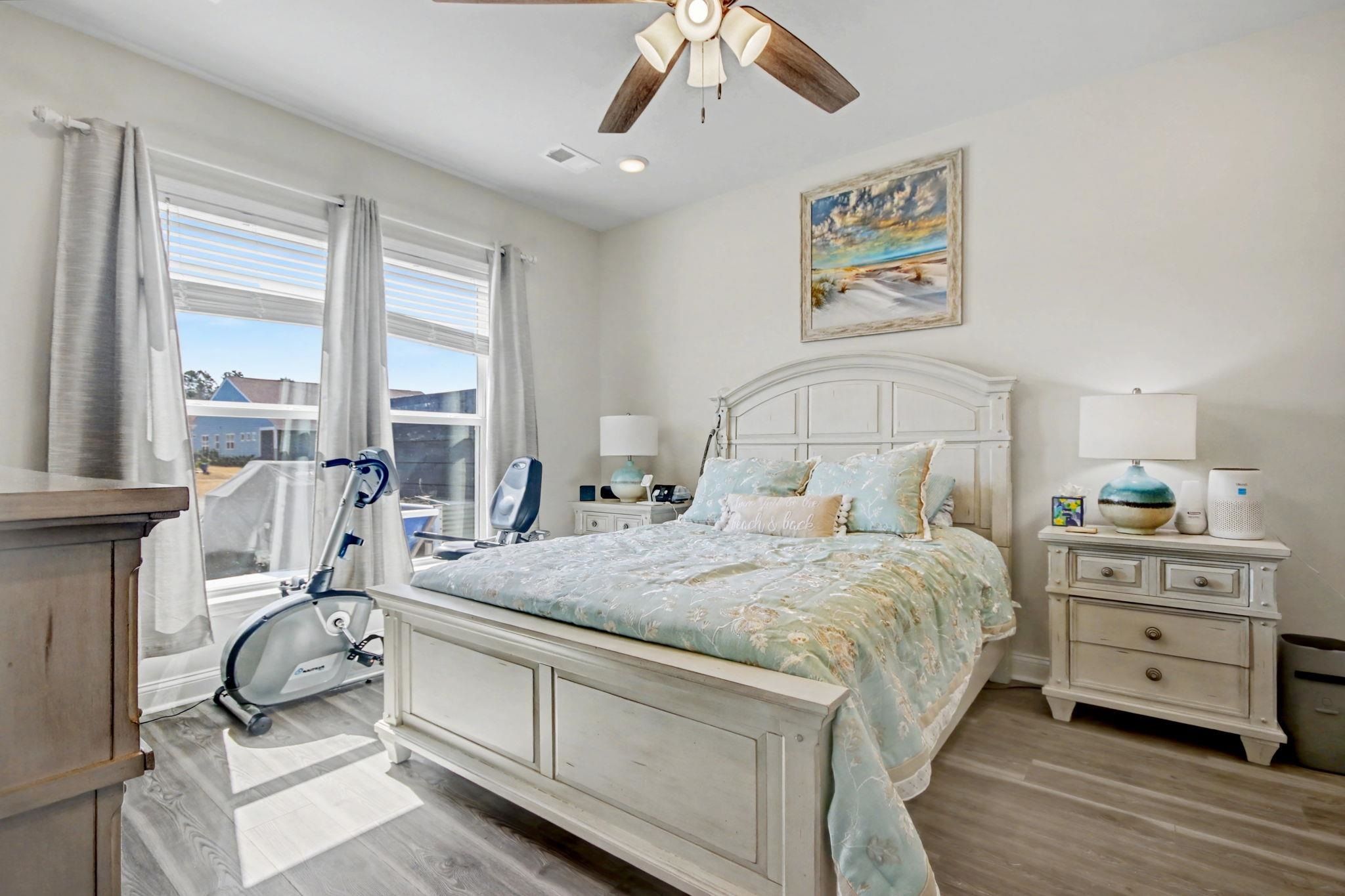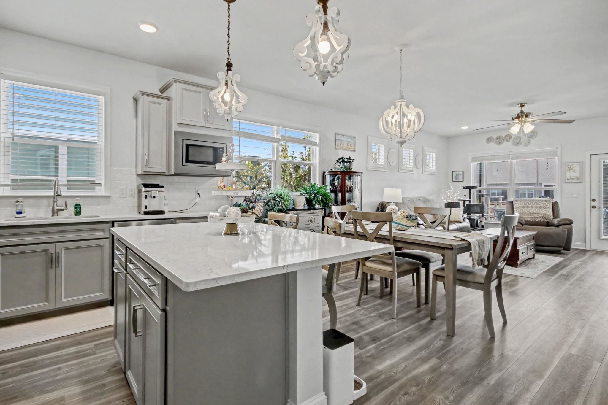 - Ceiling Fan(s), Dual Sinks, Main Level Primary, Separate Shower, Walk-In Closet(s), Breakfast Bar, Kitchen Island, Stainless Steel Appliances, Solid Surface Counters