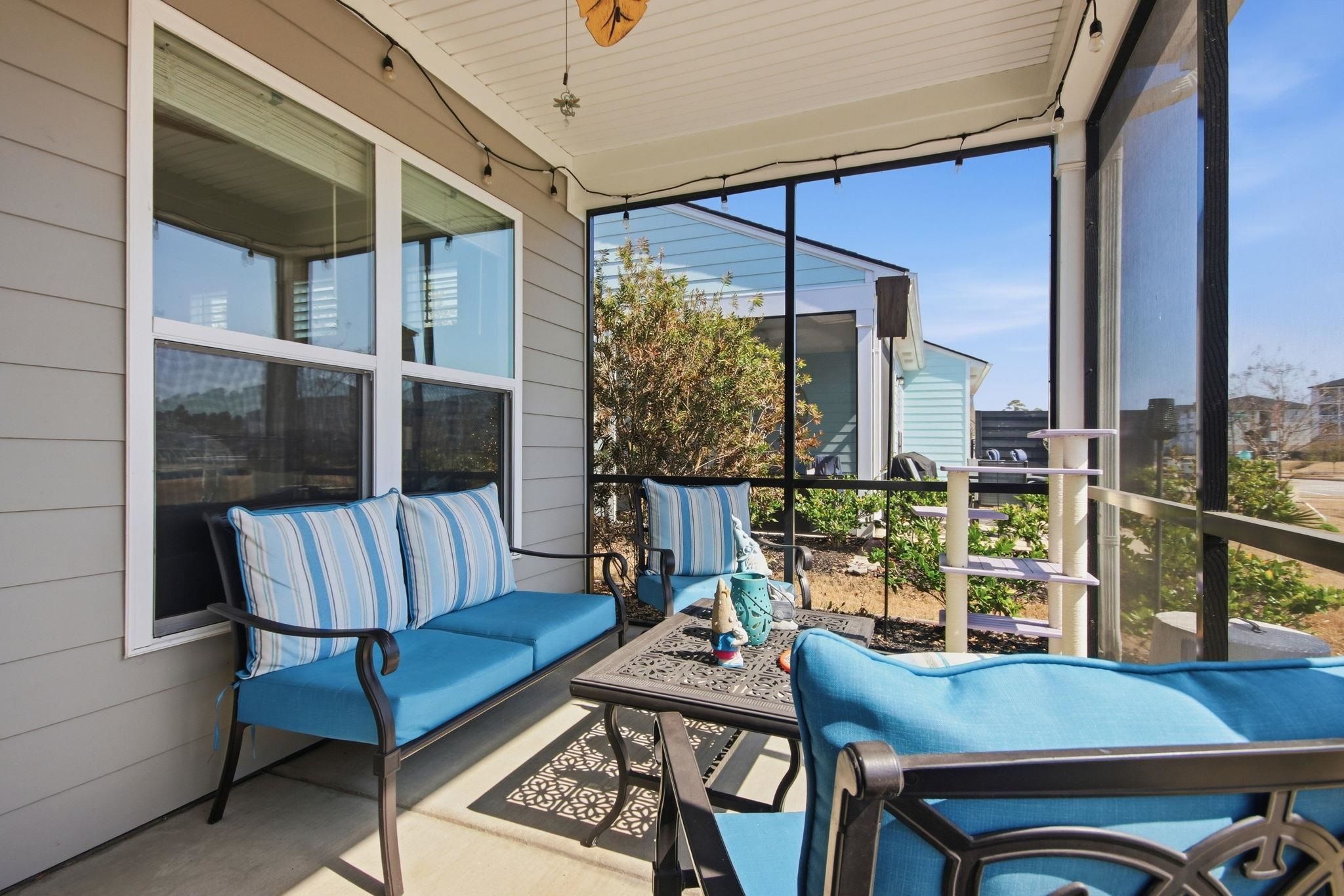 Welcome to Del Webb at Grande Dunes, Myrtle Beach’s premier 55+ active adult, golf cart-friendly community. This like-new 2-bedroom, 2-bath villa with a versatile flex room showcases the highly sought-after Cressida floor plan, offering the perfect blend of comfort, style, and functionality. Ideally positioned on one of the community’s most desirable pond-front homesites, this villa is nestled in a peaceful setting with tranquil water views and breathtaking sunsets—an increasingly rare opportunity within Del Webb. The premium lot alone makes this home exceptional. Inside, the open-concept layout creates effortless flow for both everyday living and entertaining. Luxury vinyl plank flooring runs throughout the home, complemented by soft coastal hues of blue and tan that evoke a relaxed beach-inspired ambiance. The flex room, currently used as a home office and craft space, can easily be converted into a third bedroom to accommodate guests or additional living needs. The kitchen is a standout feature, complete with quartz countertops, upgraded stainless steel appliances, a dual-fuel range, and a whisper-quiet Bosch dishwasher—designed to combine elegance with high performance. Ceiling fans add comfort throughout, and a whole-house water filtration system enhances water quality, promotes wellness, and helps extend the life of appliances. Step outside to the private screened lanai and unwind while enjoying serene pond views—perfect for morning coffee or evening relaxation. An extended patio and full irrigation system further enhance outdoor living and convenience. Del Webb at Grande Dunes offers an unparalleled lifestyle centered around its impressive 15,000-square-foot clubhouse featuring a state-of-the-art fitness center, indoor heated pool, and resort-style outdoor pool. Residents enjoy tennis, pickleball, and bocce courts, along with a vibrant calendar of social events, clubs, and classes led by a full-time Lifestyle Director. Exclusive gated access to the Grande Dunes Ocean Club elevates the experience even further, offering private parking for cars and golf carts, an oceanfront pool, beach amenities, and exceptional dining options ranging from casual to upscale. Located along the Intracoastal Waterway and less than two miles from the beach, this community is convenient to shopping, dining, medical facilities, and everything the Grand Strand has to offer. With over 90 golf courses nearby, Myrtle Beach proudly holds its title as the “Golf Capital of the World.” This is a rare opportunity to own a premium pond-front villa in one of Myrtle Beach’s most desirable active adult communities. Schedule your private showing today