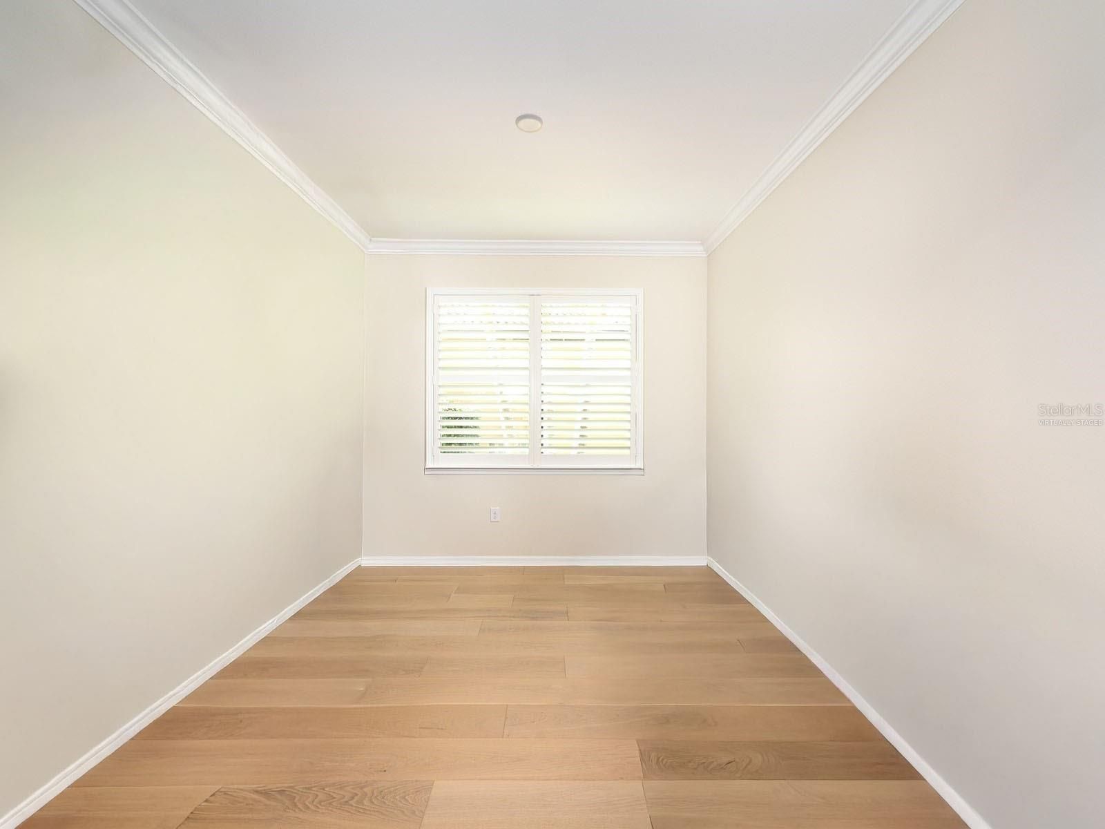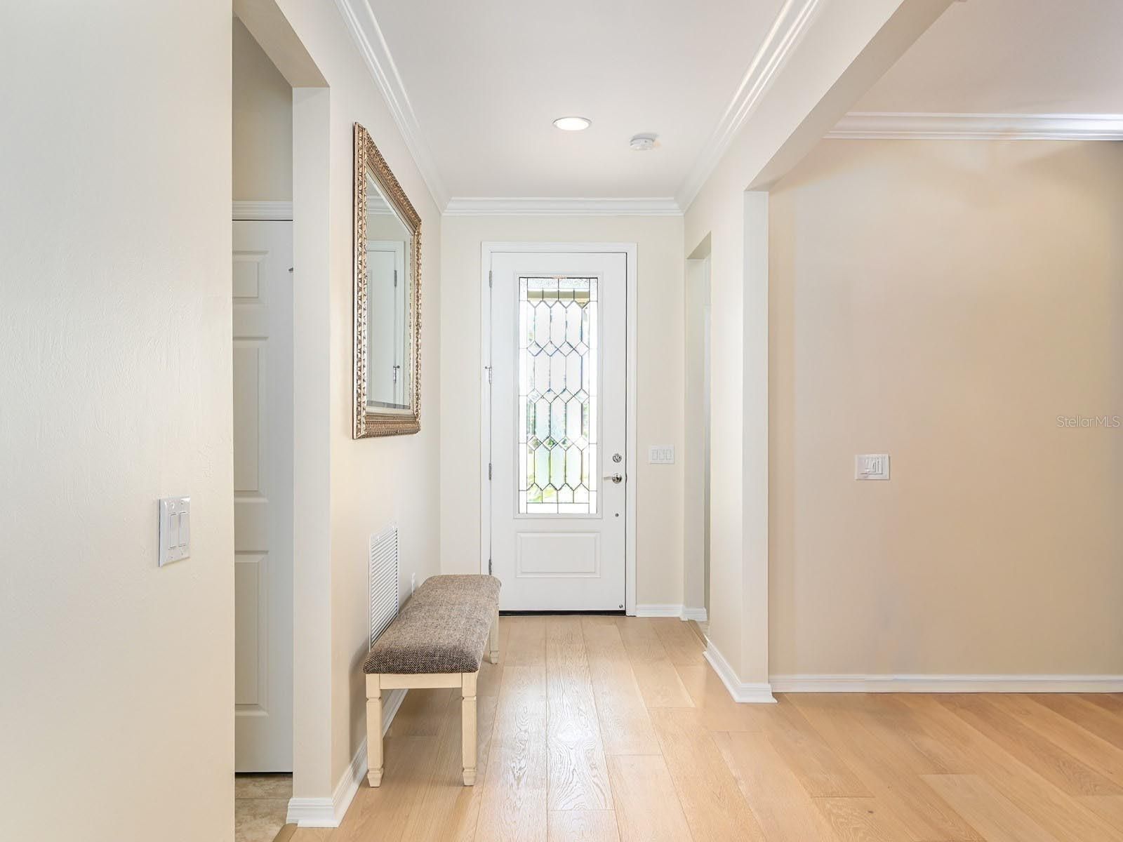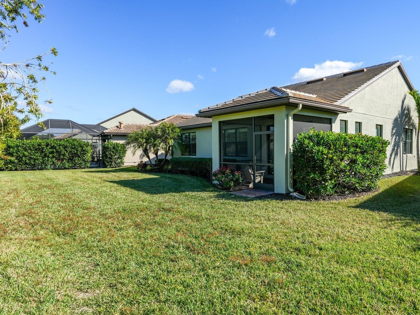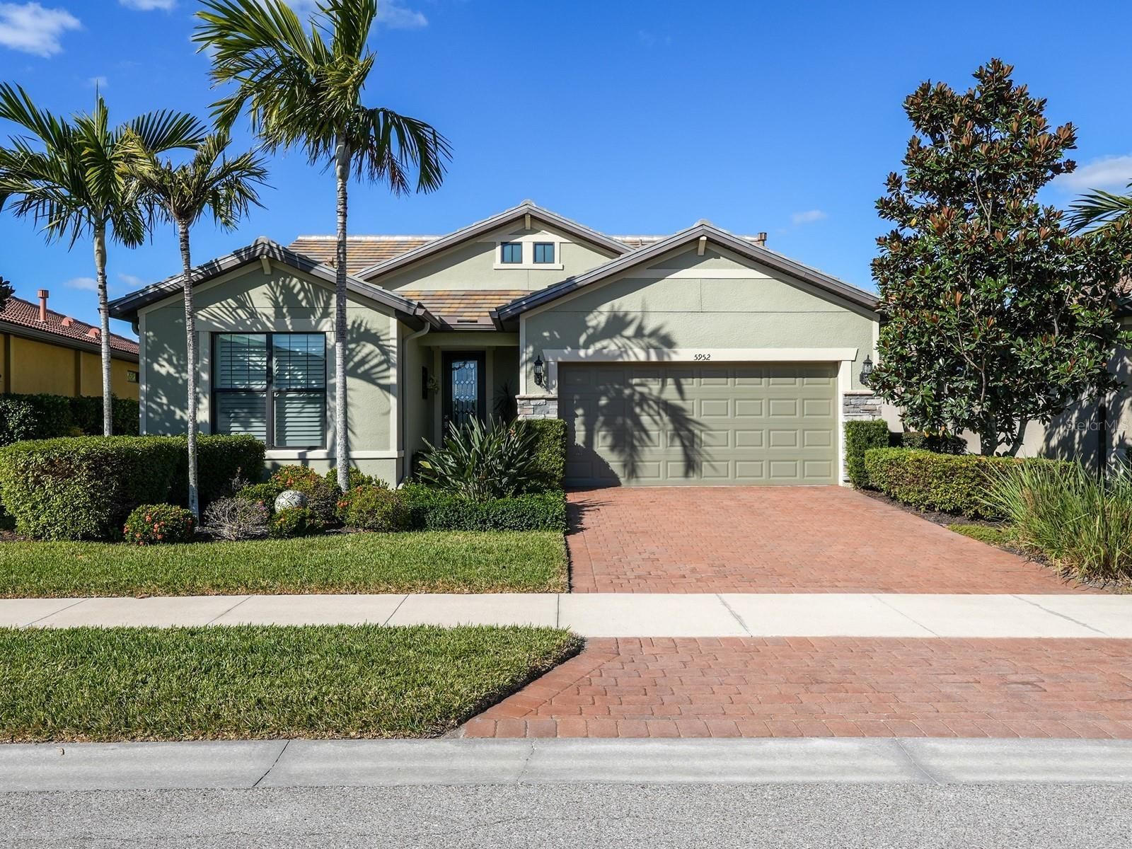 One or more photo(s) has been virtually staged. Embrace unparalleled comfort and convenience in this beautifully maintained single-family home nestled within a gated community. Constructed in 2016, this residence showcases the popular Pulte-Divosta Abbeyville FLEX floor plan, with 2-3 bedrooms and 2 baths. The potential for a third bedroom can be easily realized by adding a wardrobe and installing a suitable door. Recently repainted, this home features a stunning custom Crystalline front door that leads into a foyer adorned with elegant hardwood flooring, which extends seamlessly into the flex room. The wood flooring is also in both the front bedroom and the primary suite. The elegance of crown molding and plantation shutters adds a touch of refinement to almost every room. Venture through the arched entryway into the great room, where tiled flooring sets the tone for relaxation and entertainment. At the heart of the inviting open kitchen is a granite center island that offers ample storage and invites gatherings with its bar seating. Appliances, including a high-efficiency natural gas range, are included, paired with beautiful wood cabinetry, a spacious built-in pantry, and stylish pendant lighting. The living and dining areas effortlessly flow through sliding glass doors to a covered, screened lanai with delightful paver bricks. The primary en suite serves as a tranquil retreat at the back of the home, boasting tray ceilings and a personal bath with granite countertops, dual sinks, quality cabinetry, a water closet, and a walk-in shower with tile and a glass door. The nearby laundry room provides a convenient walk-in area for belongings, while additional space awaits in the drop-zone entryway from the generous two-car garage. Take note of the lovely curb appeal: a tile roof, a brick paver driveway, and a lush, maintenance-free lawn and landscaping warmly welcome you. Explore the amenities of Sandhill Preserve, featuring a stunning resort-style clubhouse set amidst beautifully landscaped grounds. Residents enjoy access to inviting sidewalks, a fitness center, community spaces, ample patio seating, a fire pit, barbecue areas, a spacious cabana, a swimming pool, and a spa—all designed for leisurely living. Tennis courts and a central mail station complete this welcoming community. This gated enclave in Palmer Ranch has no CDD fees and is situated within an A-rated school district, making it one of Sarasota's prime locations. Enjoy easy access to the Legacy Trail, top-notch golf courses, I-75, and an array of shopping and dining options, all just minutes away from the stunning white sandy beaches of Siesta Key!