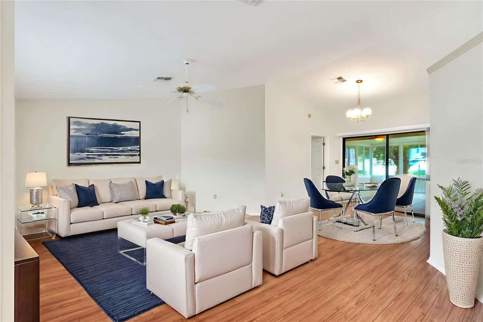 One or more photo(s) has been virtually staged. Sandpiper Golf Community is a 55+ Community that has something for everyone. Enjoy golf, swimming, tennis, shuffleboard, and more. This 2Br/2Ba is ready for you to start your new adventure. Granite countertops, tile/laminate/carpet, open floor plan, and an inside laundry room. New roof 2022, HOA covers your lawn care. Close to shopping/restaurants/medical facilities, and I-4 that will take you anywhere with ease. This wonderful, inviting home can be yours. Call for your tour today.