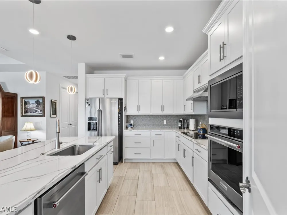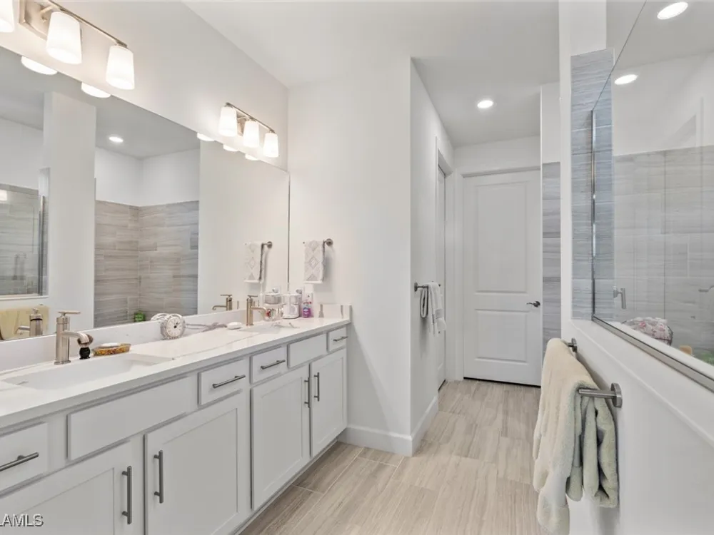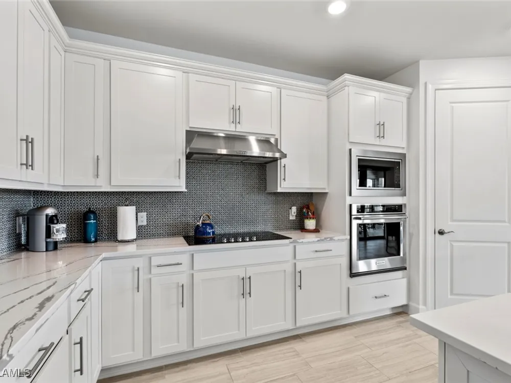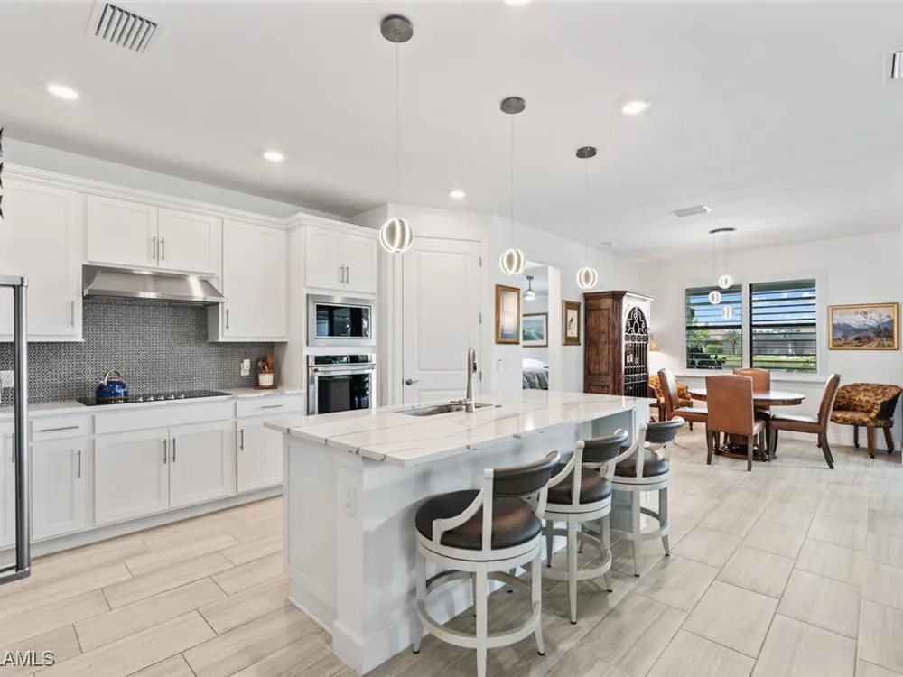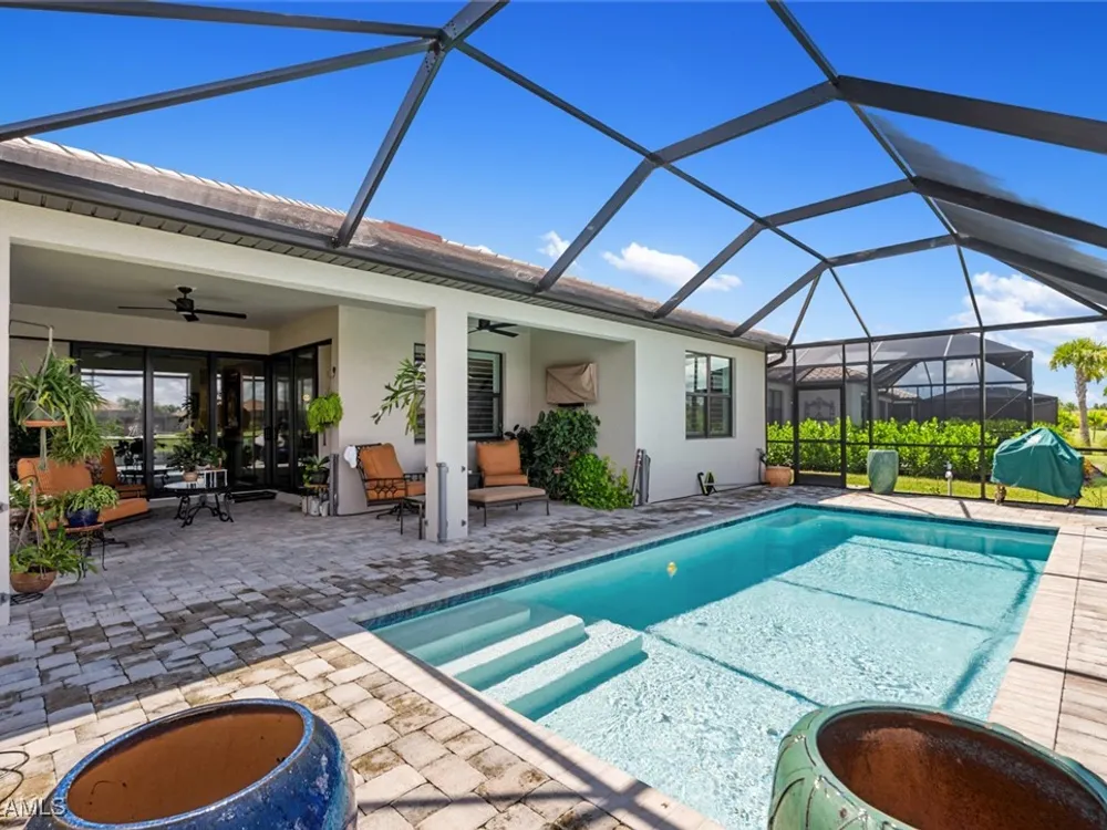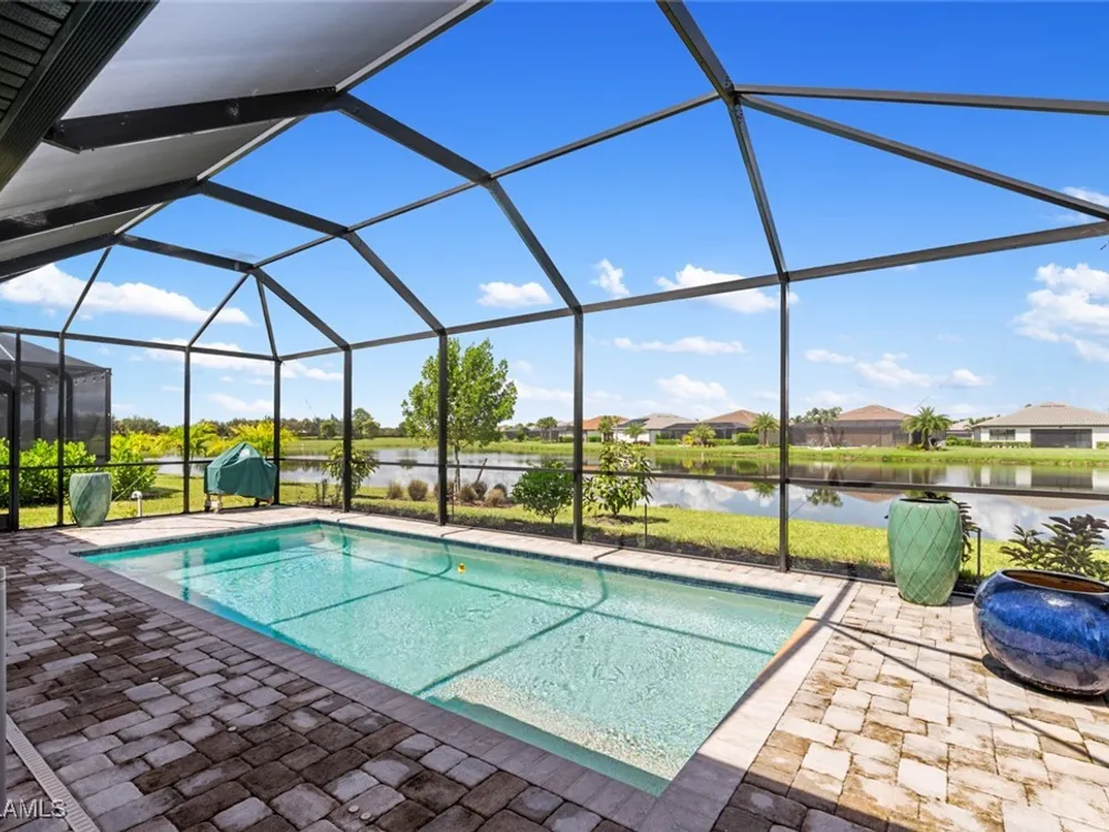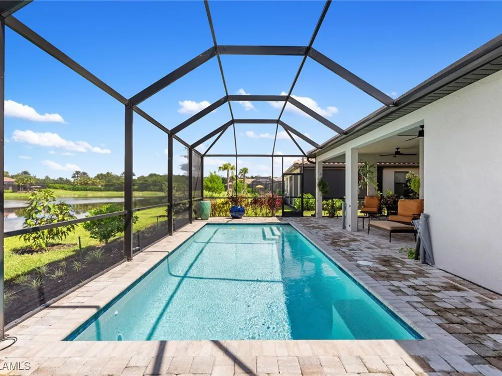 POOL & BREATHTAKING WATER VIEW! Welcome to this better-than-new 2024-built home in the 55+ community of Del Webb Naples. Featuring the popular MYSTIQUE floor plan with 3 bedrooms, 3 bathrooms, plus a den. The GOURMET KITCHEN is a showstopper, showcasing an expansive granite island, premium KitchenAid appliances, soft-close cabinetry with custom pull-outs, and an elegant designer backsplash. The PRIMARY SUITE offers dual sinks, an extended walk-in shower, and a CUSTOM WALK-IN CLOSET. The versatile den, complete with SOLID DOORS, provides the perfect space for a home office, hobbies, or guests. Designed for both comfort and peace of mind, the home includes HURRICANE IMPACT WINDOWS & DOORS and zero-corner pocket sliders that create a seamless indoor-outdoor flow. Step outside to the extended screened lanai with a POOL, the perfect retreat for relaxing or entertaining while enjoying stunning water views. The GARAGE offers a 4’ EXTENSION, epoxy flooring, and storage cabinets. Over $33,000 in post-closing UPGRADES were added in the past year, including PLANTATION SHUTTERS, electric shades on lanai sliders, CUSTOM CLOSETS, designer ceiling fans, upgraded lighting, and a security system. Additional features include large plank TILE FLOORING THROUGHOUT, designer fixtures, and a laundry room with custom cabinetry and sink. GOLF LOVERS - Panther Run Golf Club offers optional MEMBERSHIPS with premium golf experiences just steps from your backyard. In Del Webb Naples, you’ll enjoy WORLD-CLASS AMENITIES that rival luxury resorts: dine at the Rusty Putter Restaurant, soak in the RESORT-STYLE or LAP POOLS, break a sweat in the state-of-the-art FITNESS CENTER, and play your way through PICKLEBALL, TENNIS, bocce, billiards - even a top-tier GOLF SIMULATOR! Need groceries, church, or a bite to eat? Just hop in your golf cart and cruise into town - Publix and the heart of Ave Maria are just minutes away. This isn’t just a home - it’s a LIFESTYLE UPGRADE in one of Southwest Florida’s most vibrant 55+ communities. Don’t miss your chance to live where fun, fitness, and friendships flourish year-round!