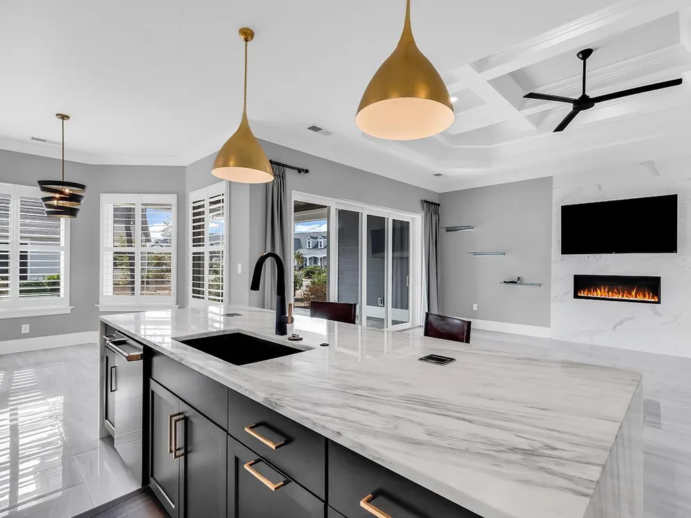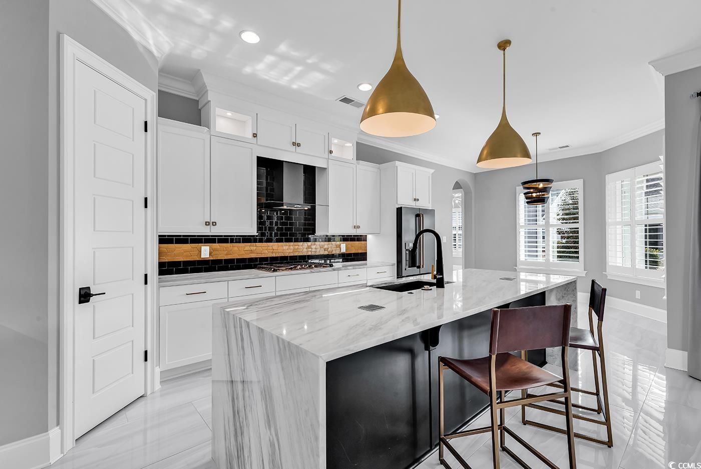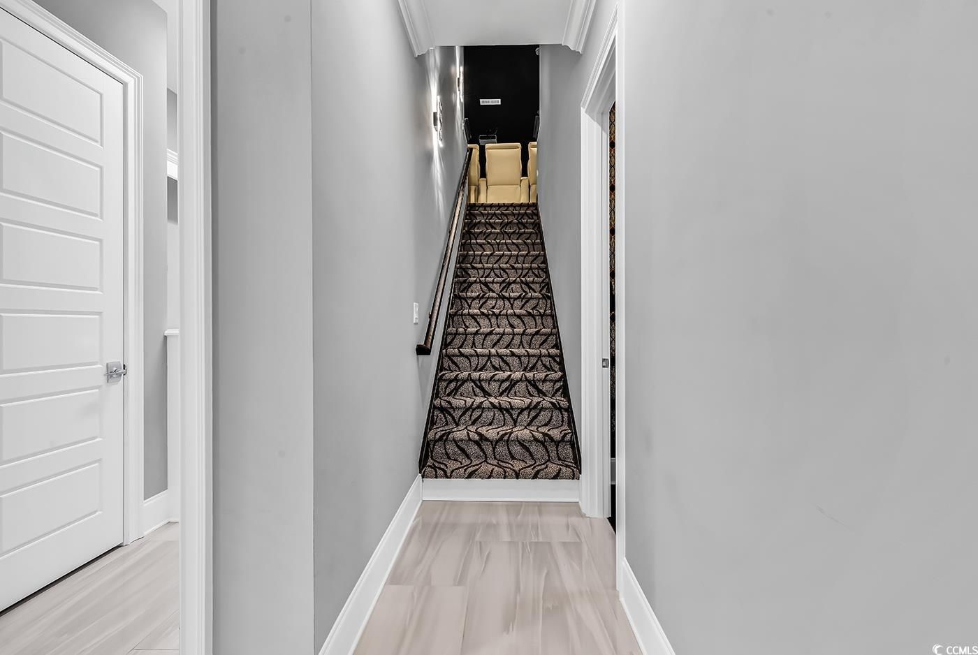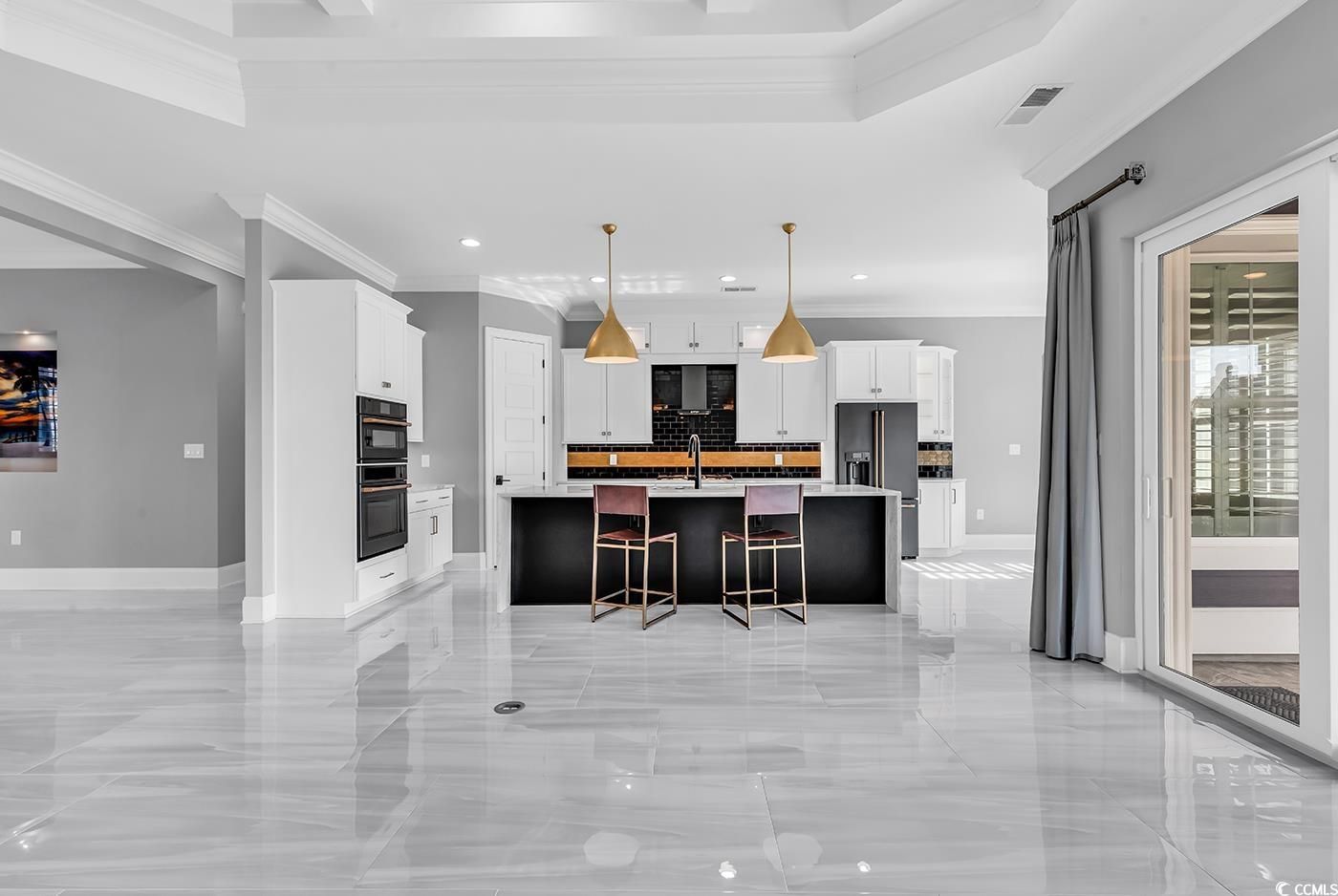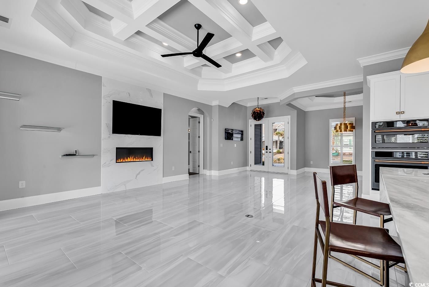 Immaculate low country custom build home located within the gated Waterside Point community in Del Webb Grande Dunes. This one is almost 4000 square feet under roof and situated perfectly on an oversized corner lot. In mint condition, and offering 3 br plus 2.5 bath and office as well as an amazing theater room with leather recliners and an impressive Sonos sound system, this home combines all the upgrades, modern luxury with functional design, making it perfect for both entertaining and everyday living. Step into an open floor plan featuring coffered ceilings, porcelain tile, a spacious family room with a stunning fireplace, a dream kitchen with plenty of cabinets, a waterfall island, gas cooktop and special matte black appliances. Outside you can relax on the covered porch, entertain guests and family or just chill and watch the sunrise on most any day. Make sure this one is on your list to view, you will be impressed. Residents of Waterside Edge enjoy access to Del Webb’s world-class amenities, including an indoor heated pool, a resort-style outdoor pool, a full-time activities director, pickleball, tennis courts, bocce ball courts, a fitness center, a fire pit, walking trails, and day docks for fishing or boating. Lawn care is also included. Grande Dunes is a 2,200-acre, amenity-rich development offering lifestyle opportunities unrivaled in the market. Owners enjoy exclusive access to the exquisite Ocean Club, featuring fine dining, oceanfront pools, meeting rooms, beach amenities, and spaces for events. The community also offers two prestigious 18-hole golf courses—the public Resort Course and the semi-private Members Club, designed by Nick Price. Other notable features include a 126-slip deep-water marina and a state-of-the-art Har-Tru tennis facility. Grande Dunes is conveniently located in Myrtle Beach, just minutes from shopping, dining, and the Grand Strand Medical Center. Come live the Grande Dunes lifestyle! Contact the listing agent for more information and to schedule a viewing.