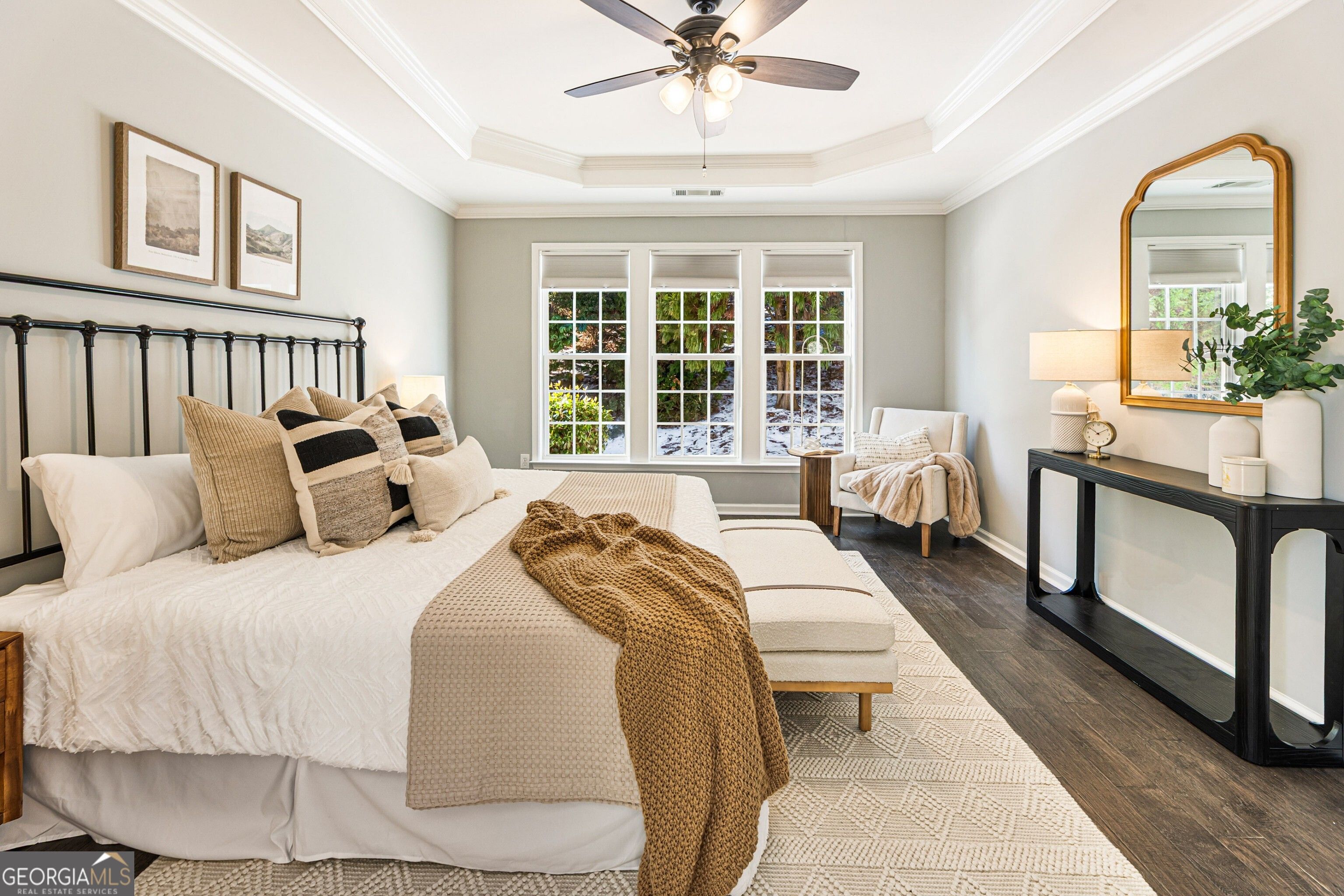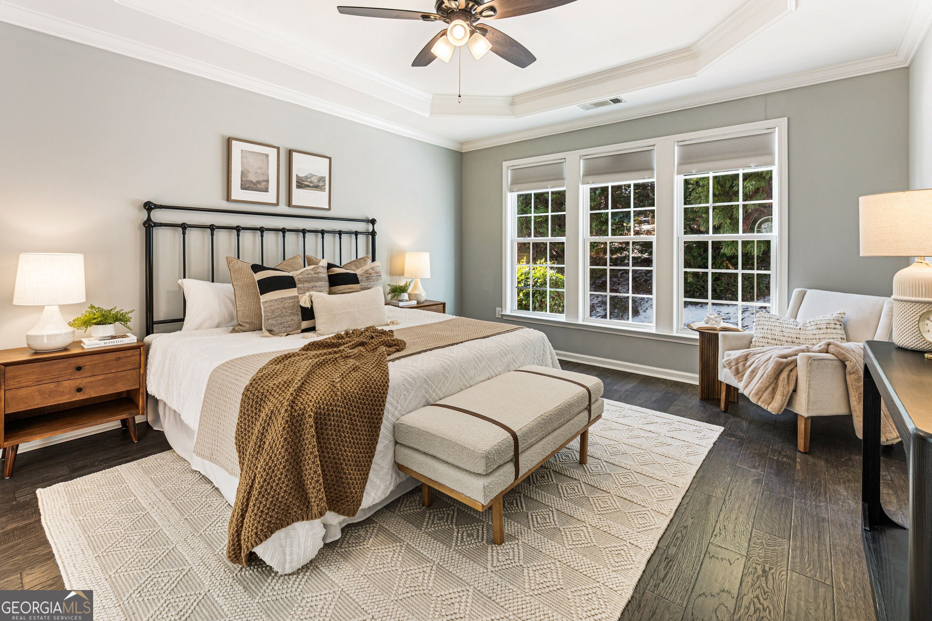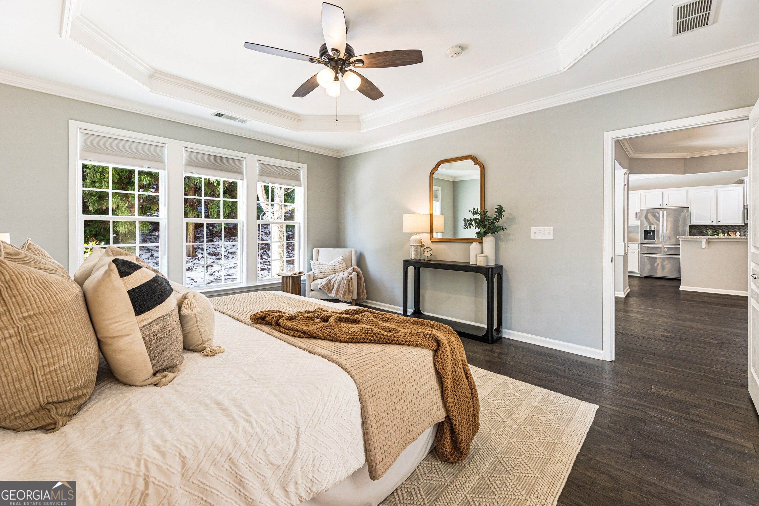 - High Ceilings, Main Level Primary, Separate Shower, Tray Ceiling(s), Dual Pane Window(s), Entrance Foyer, Home Office