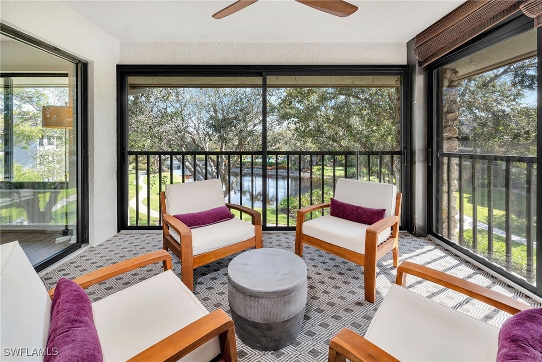 Amazing value for a top floor, two-bedroom, 2 bath condo, with spectacular unobstructed, breathtaking views of the lush grounds with a walking path around the pond and fountain leading you to the inviting pool and clubhouse. In addition to the fabulous views from your great room, the kitchen and the enclosed lanai with screens, the split bedrooms are en-suite and provide privacy for you and your guests. This light, bright and very clean condo has a full-size washer and dryer, a walk-in storage closet inside as well as ample storage in a locked space outside for bicycles. Enjoy all the Pelican Bay amenities, including private beach access with tram service, beachfront dining, full beach services (chairs and umbrellas), Har-Tru Tennis Courts, new Pickleball Complex, Fitness Center, miles of scenic walking/biking paths and much more. Enjoy the Naples lifestyle in a gorgeous setting, perfectly located very close to wonderful shopping, more delicious dining options and Artis-Naples. Buy the location and views, create the interior.