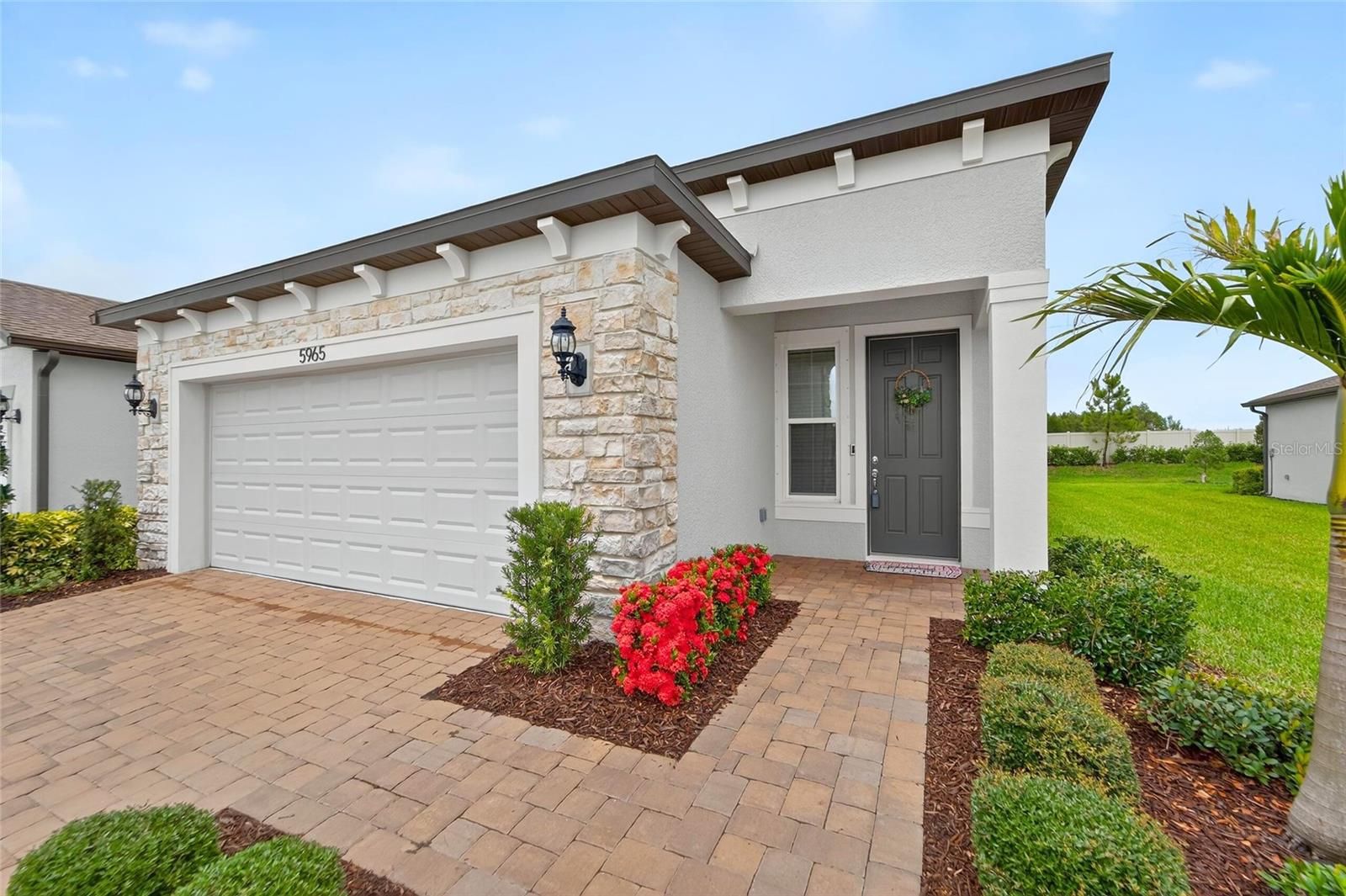 Discover the beauty and tranquility of this Modern 3 bedroom - 2 bathroom home located in the secluded, 55+ gated community of Del Webb Bexley featuring resort style amenities! This “Hallmark” model is adorned with LVP Wood Plank Flooring throughout and a calming Blue/ gray paint in the Bright & Open layout from the kitchen, dining area and family room. The GOURMET Kitchen features 42” White Shaker style soft close cabinets and drawers. Additionally, all lower cabinets have rollout trays in the kitchen, laundry room and bathrooms. Sleek White QUARTZ Countertops with a gray glossy tile backsplash. The Pendant lighting illuminates the breakfast island with a coordinating light for the dining table. Kitchen appliances are Stainless Steel and include a GE Profile refrigerator, wall ovens, dishwasher, hood vent and electric cooktop. A spacious pantry provides space to accommodate all of your supplies including those small appliances. A screened outdoor lanai, which is stubbed for a gas grill hookup, is the perfect place to relax and enjoy the serenity of nature. This property features an oversized distance between neighbors and ample space for gardening. The primary bedroom, located in the rear of the house, provides privacy, peace and quiet. The En-suite Bathroom features frameless shower enclosure with a custom niche, shower bench and grab bar for safety. Additionally, there is a QUARTZ Countertop with double square sinks, roll out drawers, a generous walk-in closet and separate linen closet. Laundry time is a breeze with the included washer and dryer. There is a hanging rack for clothes and storage above for extra items. The two car garage features epoxy flooring, a whole house water filter, as well as a salt based water softener. Additional upgrades include 8 foot tall doors, five ceiling fans with LED lighting, window tinting on the east/ west windows, window blinds, a premium Flex room electrical/HDMI package, R-11 insulated interior walls and an over the air attic antenna. The curb appeal is evident with the paver driveway and walkway, stone façade, custom landscaping and covered entranceway. The monthly HOA fee includes Spectrum internet and cable services, gives you access to the 19,000 sq. ft. clubhouse with a fitness center, bistro, ballroom, multi-purpose room, clubs and planned activities. Outdoor amenities include a zero entry heated pool, resistance pool, pickle ball courts, bocce ball, tennis courts, amphitheater, a community garden and a dog park. Del Webb Bexley is located just a short distance from shopping, restaurants, Premium Outlet Mall and Tampa’s International airport.