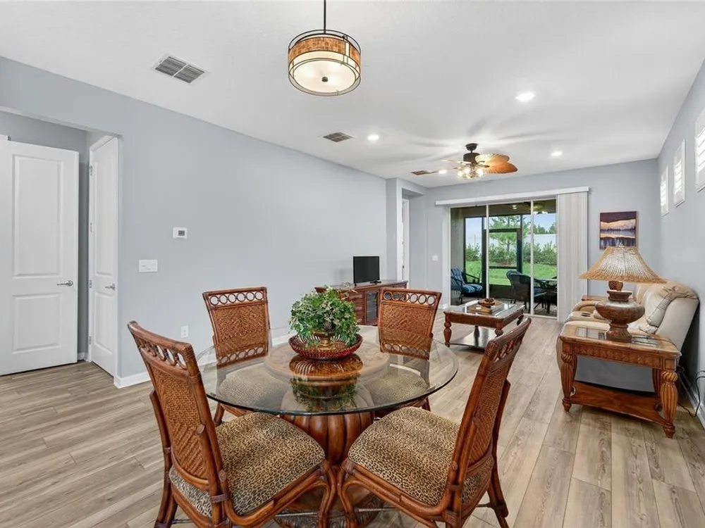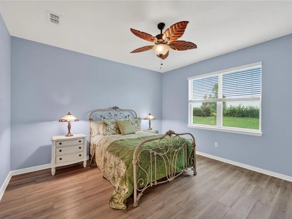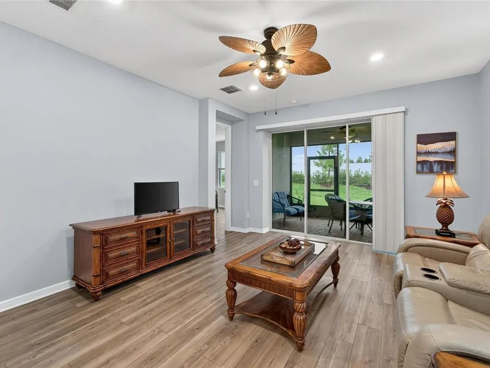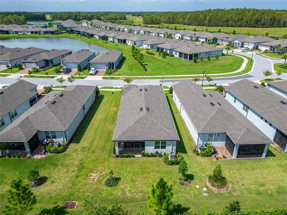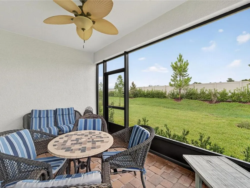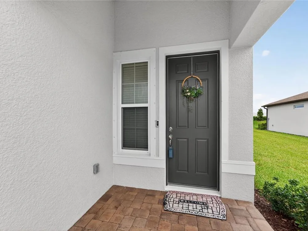 Welcome to your new home in the secluded gated 55+ community of Del Webb Bexley! Discover the beauty and tranquility of this Modern 3 bedroom 1600+ SF home. Curb appeal is evident with the paver driveway and walkway, stone façade, custom landscaping and covered entranceway. This “Hallmark” model is adorned with LVP Wood Plank Flooring, an open concept including the kitchen, dining area and family room. The GOURMET Kitchen features 42” shaker style soft close cabinets and drawers. Additionally, all lower cabinets have rollout trays in the kitchen, laundry room and bathrooms. Countertops are white QUARTZ with a gray glossy tile backsplash. Pendant lighting illuminates the breakfast island with a coordinating light for the dining table. Kitchen appliances are Stainless Steel and include a GE “Profile” refrigerator, built in oven and microwave, dishwasher, hood vent and electric cooktop. A spacious pantry provides space to accommodate all of your supplies. A screened outdoor lanai, which is stubbed for a gas grill hookup, is the perfect place to relax and enjoy the serenity of nature. This property features an oversized distance between neighbors and ample space for gardening. The primary bedroom, located in the rear of the house, provides privacy, peace and quiet. The En-suite Bathroom features frameless shower enclosure with a custom niche, shower bench and grab bar for safety. Additionally, there is a QUARTZ Countertop with double square sinks, roll out drawers, a generous walk in closet and separate linen closet. Laundry time is a breeze with the included washer and dryer. There is a hanging rack for clothes and storage above for extra items. The painted two car garage features epoxy flooring, a whole house water filter, as well as a salt based water softener. Additional upgrades include 8 foot tall doors, five ceiling fans with LED lighting, window tinting on the east west windows, window blinds, a premium Flex room electrical/HDMI package, R-11 insulated interior walls and an over the air attic antenna. The low monthly HOA fee gives you access to the 19,000 sq. ft. clubhouse with a fitness center, bistro, ballroom, multi-purpose room, clubs and planned activities. Outdoor amenities include a zero entry heated pool, resistance pool, pickle ball courts, bocce ball, tennis courts, amphitheater, a community garden and a dog park. Del Webb Bexley is located just a short distance from shopping, restaurants, Premium Outlet Mall and Tampa’s International airport.