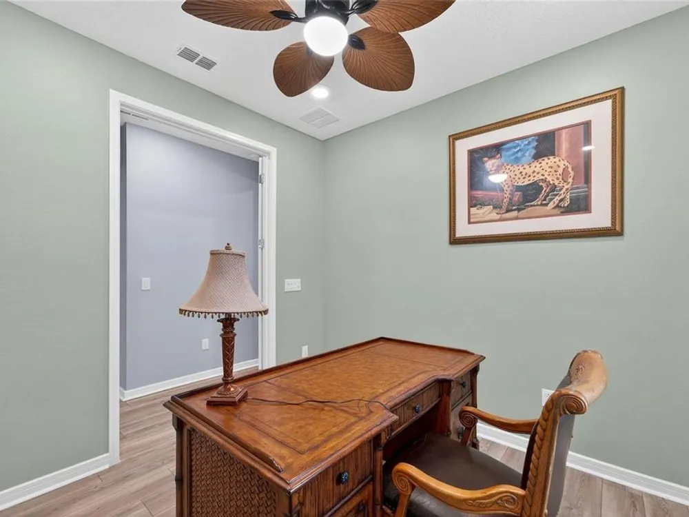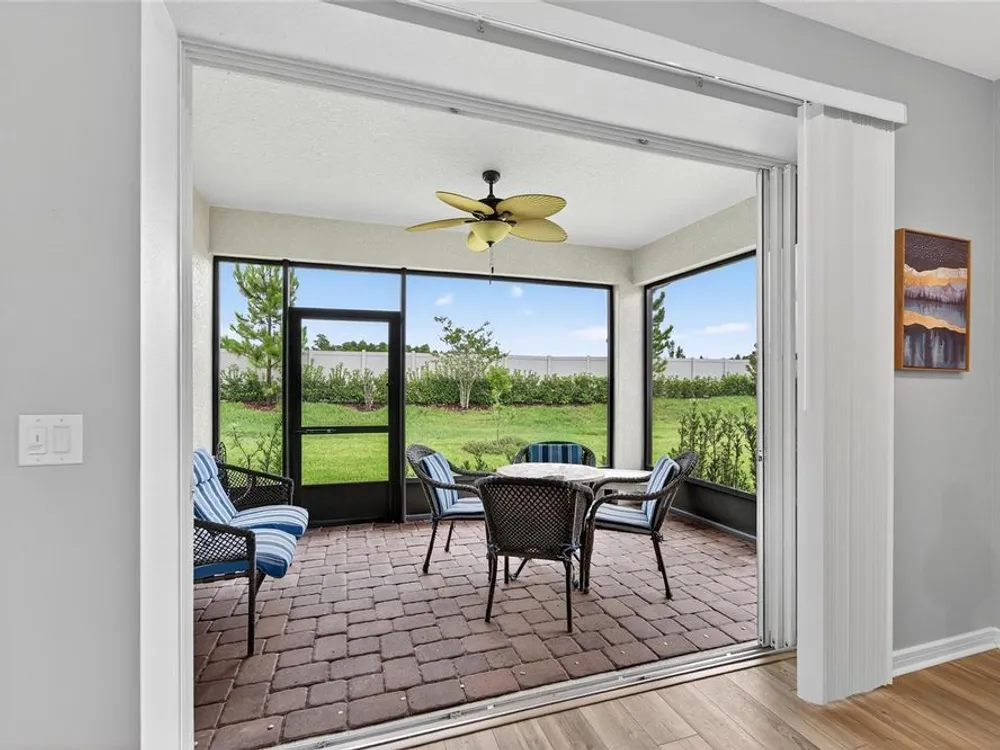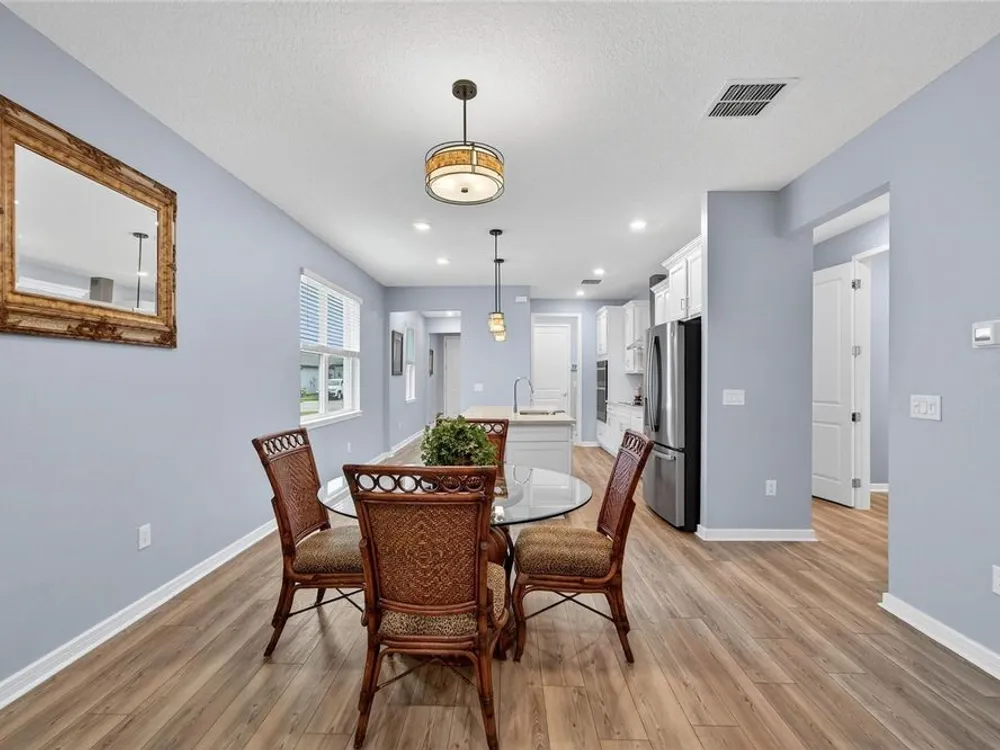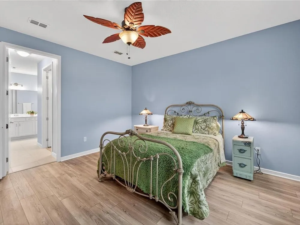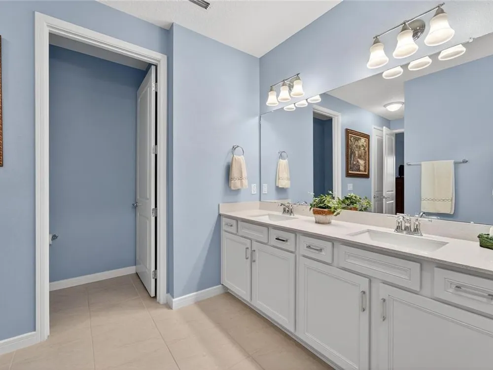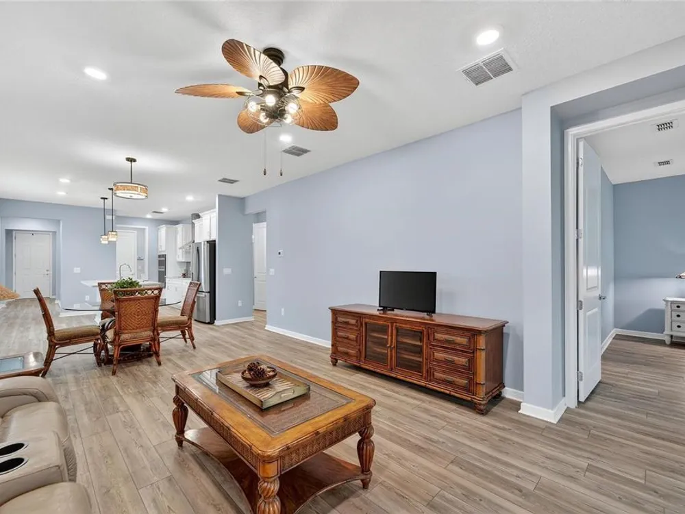 Welcome to your new home in the secluded gated 55+ community of Del Webb Bexley! Discover the beauty and tranquility of this Modern 3 bedroom 1600+ SF home. Curb appeal is evident with the paver driveway and walkway, stone façade, custom landscaping and covered entranceway. This “Hallmark” model is adorned with LVP Wood Plank Flooring, an open concept including the kitchen, dining area and family room. The GOURMET Kitchen features 42” shaker style soft close cabinets and drawers. Additionally, all lower cabinets have rollout trays in the kitchen, laundry room and bathrooms. Countertops are white QUARTZ with a gray glossy tile backsplash. Pendant lighting illuminates the breakfast island with a coordinating light for the dining table. Kitchen appliances are Stainless Steel and include a GE “Profile” refrigerator, built in oven and microwave, dishwasher, hood vent and electric cooktop. A spacious pantry provides space to accommodate all of your supplies. A screened outdoor lanai, which is stubbed for a gas grill hookup, is the perfect place to relax and enjoy the serenity of nature. This property features an oversized distance between neighbors and ample space for gardening. The primary bedroom, located in the rear of the house, provides privacy, peace and quiet. The En-suite Bathroom features frameless shower enclosure with a custom niche, shower bench and grab bar for safety. Additionally, there is a QUARTZ Countertop with double square sinks, roll out drawers, a generous walk in closet and separate linen closet. Laundry time is a breeze with the included washer and dryer. There is a hanging rack for clothes and storage above for extra items. The painted two car garage features epoxy flooring, a whole house water filter, as well as a salt based water softener. Additional upgrades include 8 foot tall doors, five ceiling fans with LED lighting, window tinting on the east west windows, window blinds, a premium Flex room electrical/HDMI package, R-11 insulated interior walls and an over the air attic antenna. The low monthly HOA fee gives you access to the 19,000 sq. ft. clubhouse with a fitness center, bistro, ballroom, multi-purpose room, clubs and planned activities. Outdoor amenities include a zero entry heated pool, resistance pool, pickle ball courts, bocce ball, tennis courts, amphitheater, a community garden and a dog park. Del Webb Bexley is located just a short distance from shopping, restaurants, Premium Outlet Mall and Tampa’s International airport.
