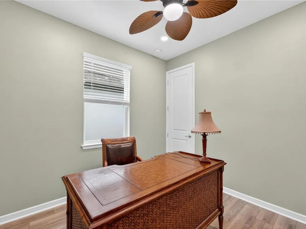 - Ceiling Fan(s), Eat-in Kitchen, In-Wall Pest Control, Open Floorplan, Smart Home, Solid-Wood Cabinets, Stone Counters, Thermostat, Window Treatments