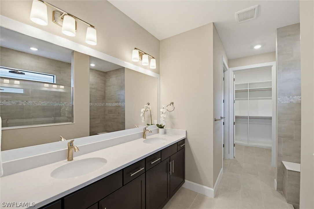 This stunning single family, Del Webb property is available for immediate occupancy.  This home is in pristine condition with 3br+den and is your perfect year-round home or home away from home. Located in the vibrant Del Webb 55+ community of Ave Maria, Florida, just east of Naples in Collier County, this Mystique model Pulte home built in 2024 boasts numerous upgrades and enhancements. Highly upgraded and tasteful flooring throughout the home is just one of the high-end details which make this home stand out from all others. You will adore the plantation shutters and crown molding throughout, zero corner sliding doors from the living room and dining area out to a spectacularly expansive screened-in lanai perfect for entertaining. Upgraded appliances included in the kitchen and laundry room will stand out from any other homes you may see. The kitchen is designed to suit your everyday needs, but also to be the center point for family and friends' gatherings with its large center island and separate dining area. The master suite includes more than ample bedroom space, a large master bath with an over-sized walk-in shower as well as a large walk-in spacious closet with many built ins for closet organization. The Del Webb Oasis Amenity Center includes a resort style pool, lap pool, fitness center with sauna, pickleball courts and so much more. This home will be your perfect personal retreat, and you will fall in love with the home, the Del Webb community and the greater Ave Maria Community which includes many restaurants, retail shops and access to exciting activities. Located only a short distance from the Ave Maria town Center, Ave Maria University and the magnificent Ave Maria Church. You don't have to wait for the builder's schedule to move into your new and perfect home. You can have this amazing new home right now! Start living the dream! Schedule your private tour today.
