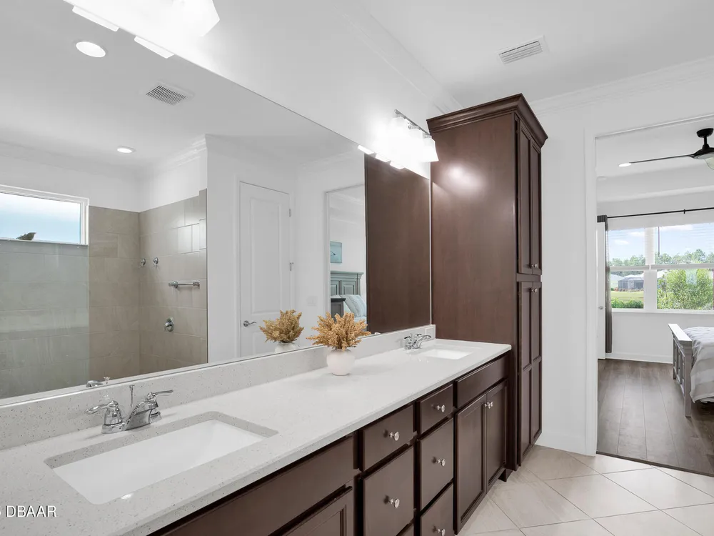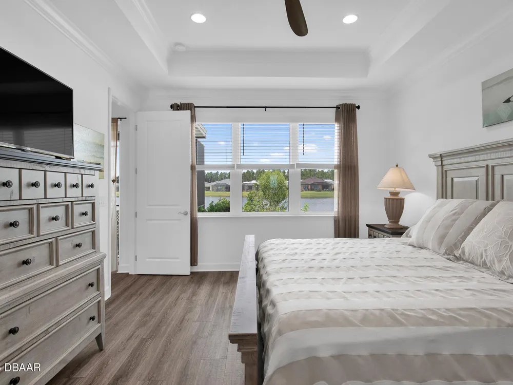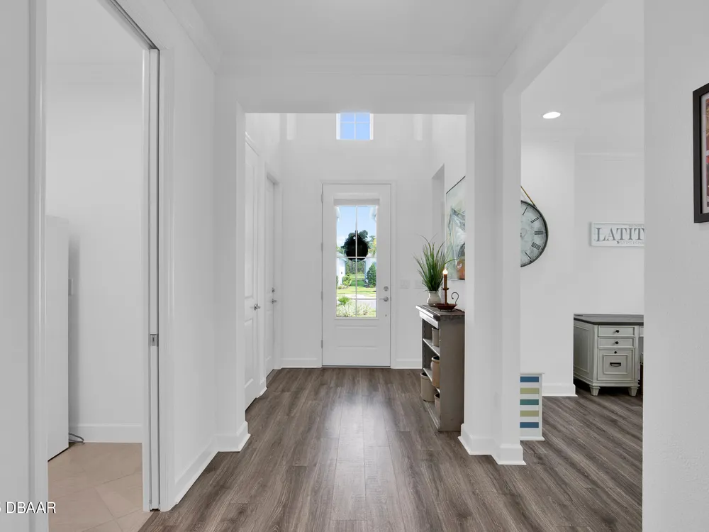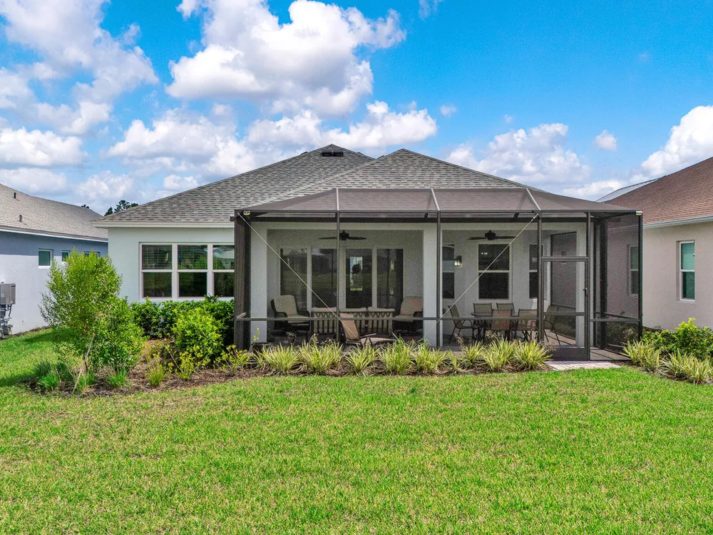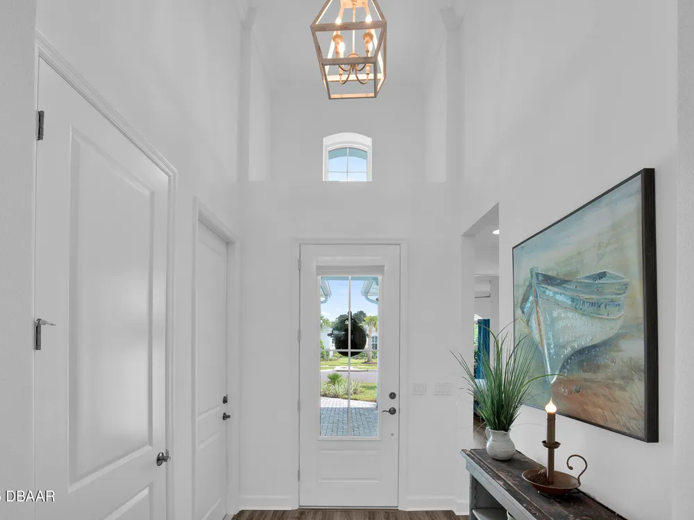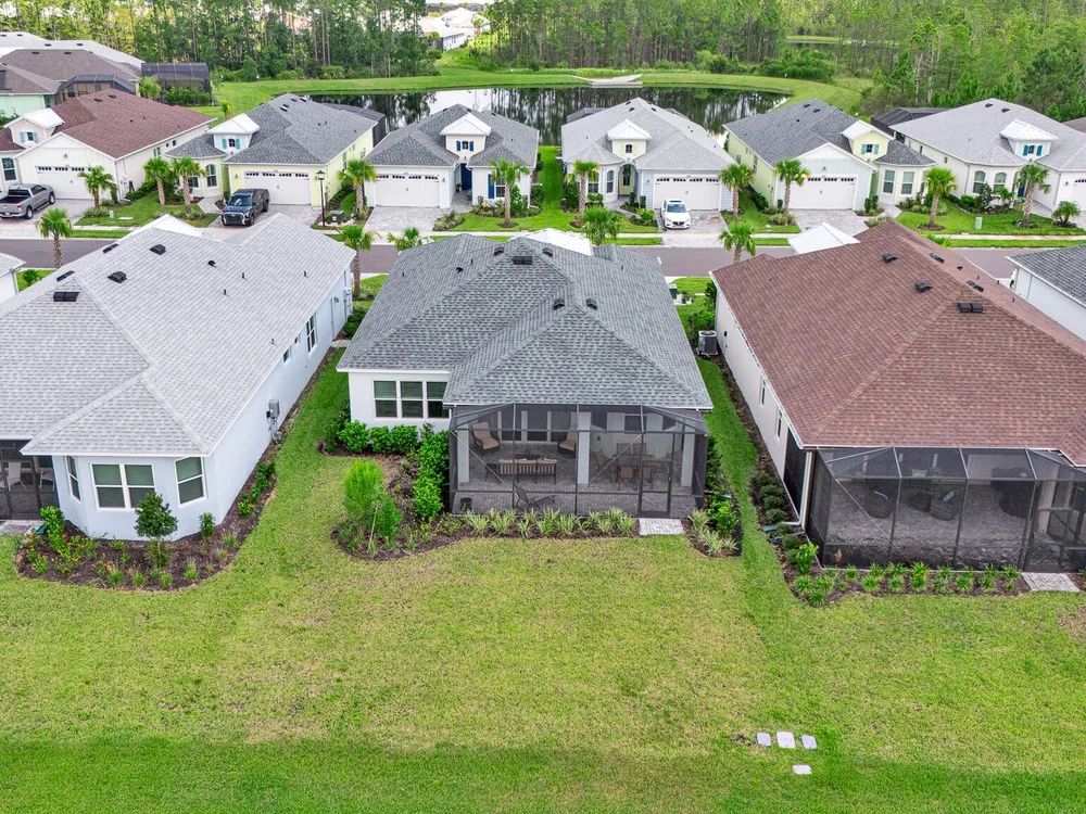 Spectacular Lakefront Coconut with extended screened lanai! Lots of upgrades to include crown molding throughout and a custom built shiplap fireplace wall with mantle in the Living Room! Neutral colors give this home a peaceful coastal vibe with laminate flooring in the main areas and tile in the bathrooms and laundry room. Kitchen boasts white 42'' upper cabinets with crown molding, tasteful backsplash and quartz countertops with pull-out shelving. Laundry Room has additional refrigerator and cabinets over washer and dryer. Master Suite cabinets have double drawer stacks for maximum organization and an oversized tile shower. All rooms are illuminated with recessed lighting. The doors are 8' tall and all windows are treated with blinds. Garage floor has epoxy coating and there are pull-down attic stairs. Enjoy the extensive amenities like the Beach Club in Ormond Beach w/ pool, full time restaurant/bar, expansive resort pool, fitness center, and more. Call today to see it all!