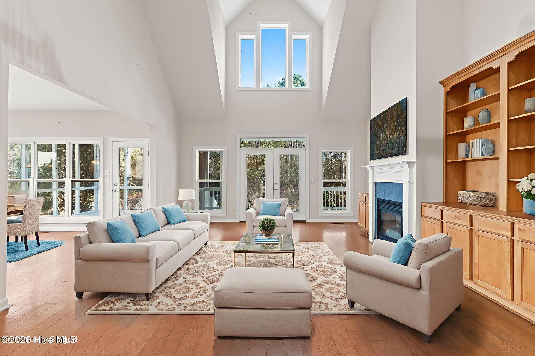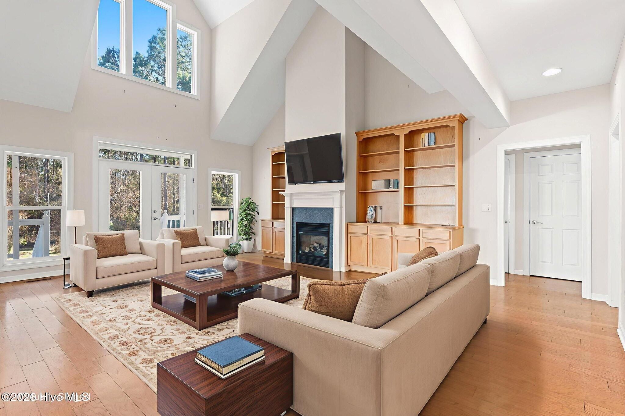 - Master Downstairs, Walk-In Closet(s), High Ceilings, Bookcases