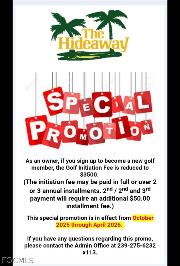 The following amenities are available to The Hideaway Country Club - Fort Myers, FL residents: