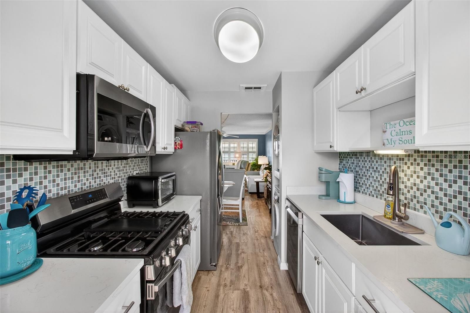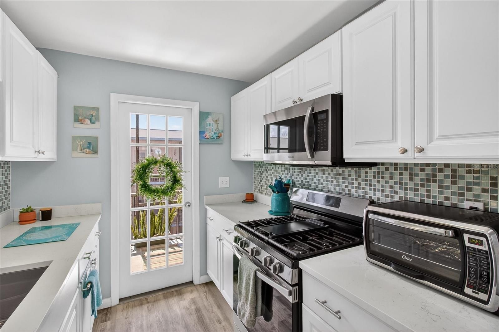 "A good home must be made, not bought..." Unless you are lucky enough to buy THIS home, where the sellers did it all for you! Pride of ownership is ABUNDANT in this charming 2 bed/2 bath condo in the beautiful 55+ community of Five Towns. When you visit Dorchester 308, be sure to have a little sit on the gliding wooden bench in the private screened balcony fitted with roller shades for added comfort and privacy! AC Condenser was updated in 2011, and HVAC has been maintained 2x/year thereafter. Kitchen was thoughtfully remodeled 5 years ago with trendy bright cabinets, stylish and easy to clean quartz countertops, colorful tile backsplash, and all stainless-steel appliances - plus garbage disposal was replaced only 1 year ago! Both bathrooms have been beautifully updated. IN UNIT washer/dryer is just 6 years old. Carefully selected LVP flooring in a neutral shade was installed throughout, except for master bathroom tile. Windows are custom hurricane-rated from Home Depot and each were fitted with custom, ultra-easy-to-clean colonial shutters. Front door features modern keyless entry on the main door, and a brand-new storm door. Lucky Buyer can keep the deep freezer in the guest room!! Furniture is negotiable, so is the cute beachy decor!! Unit comes with parking space #15 which is very conveniently located. Current homeowners only pay around $880/year in electricity bills!! Brand new roof on building is only 1 year old. Building was just painted, and the elevator is new, pending cosmetic updates within the cab. (About the furniture: Master bedroom bed is an adjustable Tempur-Pedic queen, and the guest bed has barely been used. Both bedrooms have matching nightstands and dressers. Living room features an extra-long cabinet under the TV, cute coastal rugs, a modern leather sofa set, and marble-topped end-tables. The Dining room has a beachy dining set with collapsible table and 2 chairs, and a tall cabinet for extra pantry space. Don't forget the wooden gliding bench on the porch. If buyer would like any or all items, include them in your negotiations!) Schedule a showing today and envision your next chapter in Five Towns. All listing information is considered highly reliable according to the seller, but it is the buyer's responsibility to verify. Gas hot water is maintained by the building. Shopping, Restaurants, Banking, and more can be easily found within a short drive in any direction! Both the Baypines VA Healthcare Facility and HCA Hospital are less than 10 minutes away! Soak up the sun at the closest beach, Madeira, which is only 10 minutes away, or shop, eat, and drink to your heart's content in Downtown Saint Pete, which is an easy-breezy 20-minute drive away! Experience resort-style living at Five Towns, an expansive 111-acre 55+ community where lush, meticulously maintained grounds invite you to stroll, explore, and unwind. Here, you will find 9 tranquil ponds, 6 pools plus a soothing hot tub, and 3 outdoor kitchen gazebos equipped with grills and refrigerators for effortless entertaining. For active days, enjoy tennis, pickleball, shuffleboard, and bocce ball, all complemented by 2 welcoming clubhouses that house a billiards room, a library, 2 fitness centers, 2 auditoriums, and 2 card rooms. Feel like being social? Join one of the 20+ Clubs in Five Towns! This Active community offers Bingo, Game Nights, Painting Classes, Theater Club, Potlucks, Line Dancing, Zumba, Yoga, Tai Chi, Dances, Pancake Breakfasts, and more!!
