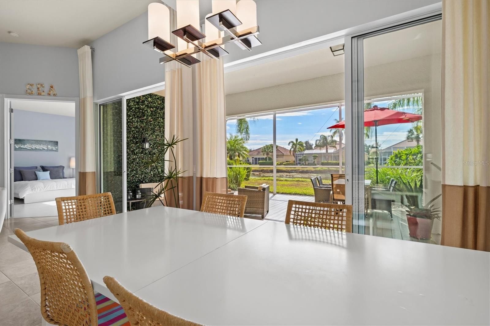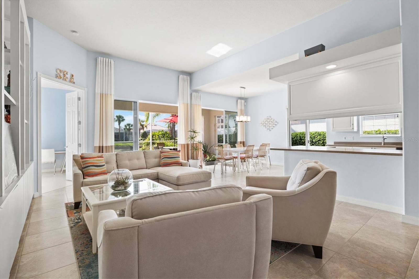 Solid as a rock and beautiful too! This tastefully decorated, 3 bedroom plus office, 3 bath home in The Isles features an extended and screened lanai, water view, new exterior paint, and comes fully furnished. This is the Oakmont floorplan which features an office with French doors, high ceilings, a primary suite with dual ensuite baths, dual closets, plus separate soaking tub and shower. Ceramic tile floors throughout with the exception of the primary suite which features premium engineered wood plank. Enjoy peace of mind during storms; this home is built of poured concrete, includes hurricane shutters, and is in the X flood zone, has never flooded and does not require flood insurance, and is not in an evacuation zone. Recent updates include fresh exterior paint (spring 2025) and newer AC (2023). This home has been thoughtfully maintained and is clean as a whistle. This home also includes a 2-car garage and indoor laundry room with utility sink. The Isles features well-kept amenities including a heated, lagoon-style pool, tennis courts, pickleball, playground, fitness center and bocce ball. The Isles is part of the master-planned community of Palmer Ranch, known for its convenient proximity to world-class beaches Siesta Key Beach and Nokomis Beach; bicycling and walking trail, The Legacy Trail; multiple golf courses, dining and shopping.