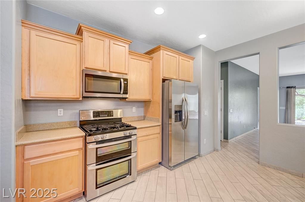 Open Spacious Floor Plan! Move-In Ready! Large Living Room Adjacent to Eat-In Kitchen; Kitchen Offers Lots of Light, Solid Surface Counters, Stainless Steel Appliances and Pantry; Newer Refrigerator, Washer and Dryer Stay; Ceiling Fans Throughout; Plank Tile Flooring Throughout; Covered Patio and Easy-Care Landscaping. Across the Street from Community Clubhouse, Pool, Hot Tub, Tennis & Pickle Ball Courts, and Bocci Ball Courts. Easy Access to Schools, Sports, Parks, Walking Paths, Playground, Entertainment, Dining, Shopping, Casinos and Freeways.