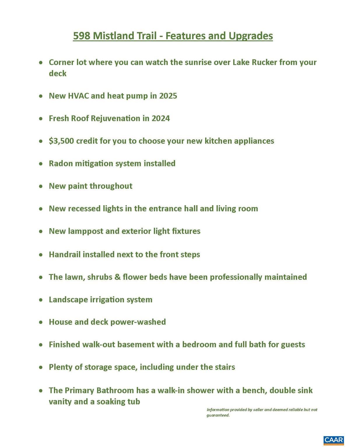 You need to see this welcoming, well cared for home on a large corner lot in the popular 55+ Four Seasons community. Designed for a lifestyle of lower maintenance and amenities close by, your new home has 3 bedrooms, 3 full baths and a floor plan ideal for everyday living and entertaining. The kitchen has a breakfast nook, bay window, pantry and there?s a $3,500 credit so you can choose your new appliances! The spacious living area has hardwood floors and a tray ceiling in the dining room. The window walled, cathedral ceiling sunroom creates a warm and inviting ambience and opens to the deck where you can watch the sunrise over Lake Rucker. The large primary suite has 2 walk-in closets and an attached bath with a double sink vanity, walk-in shower and soaking tub. The finished walk-out basement, with a bedroom, a full bath and 2 storage rooms, offers generous space for guests, your hobbies or a home office. A few of the many improvements include new HVAC and heat pump (2025), fresh paint throughout and new light fixtures (see the complete list). You?ll appreciate the lovely yard and gardens that have been professionally tended to, and the 2-car garage with shelves for additional storage.,Solid Surface Counter,Wood Cabinets