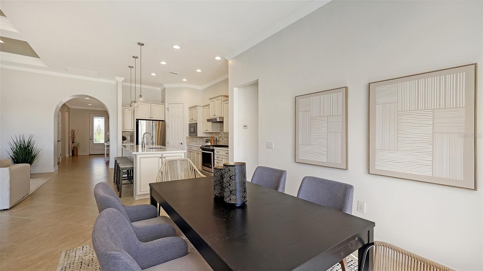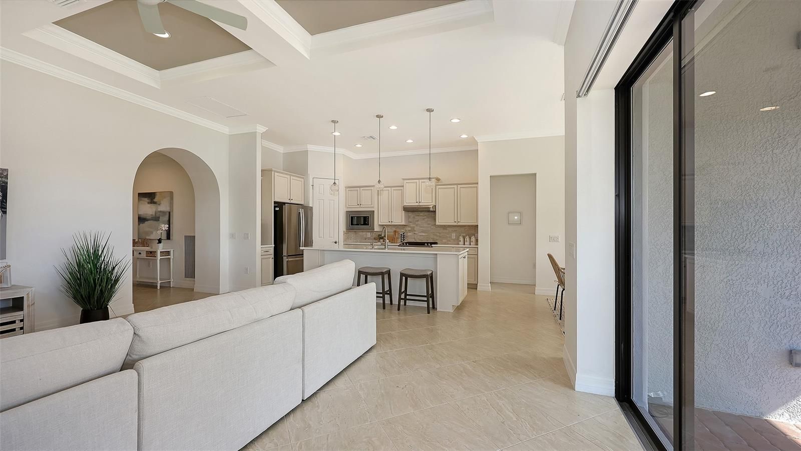 - Ceiling Fan(s), Crown Molding, High Ceilings, Open Floorplan, Main Level Primary, Split Bedrooms, Stone Counters, Tray Ceiling(s), Walk-In Closet(s)