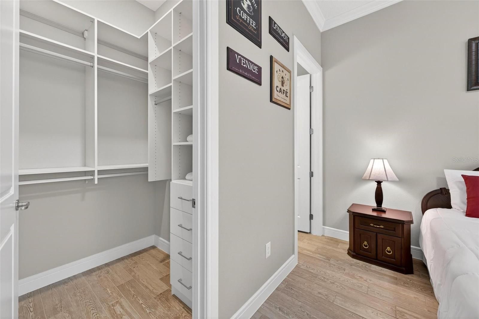 - Ceiling Fan(s), Crown Molding, High Ceilings, Open Floorplan, Main Level Primary, Solid Surface Counters, Thermostat, Tray Ceiling(s), Vaulted Ceiling(s), Walk-In Closet(s)