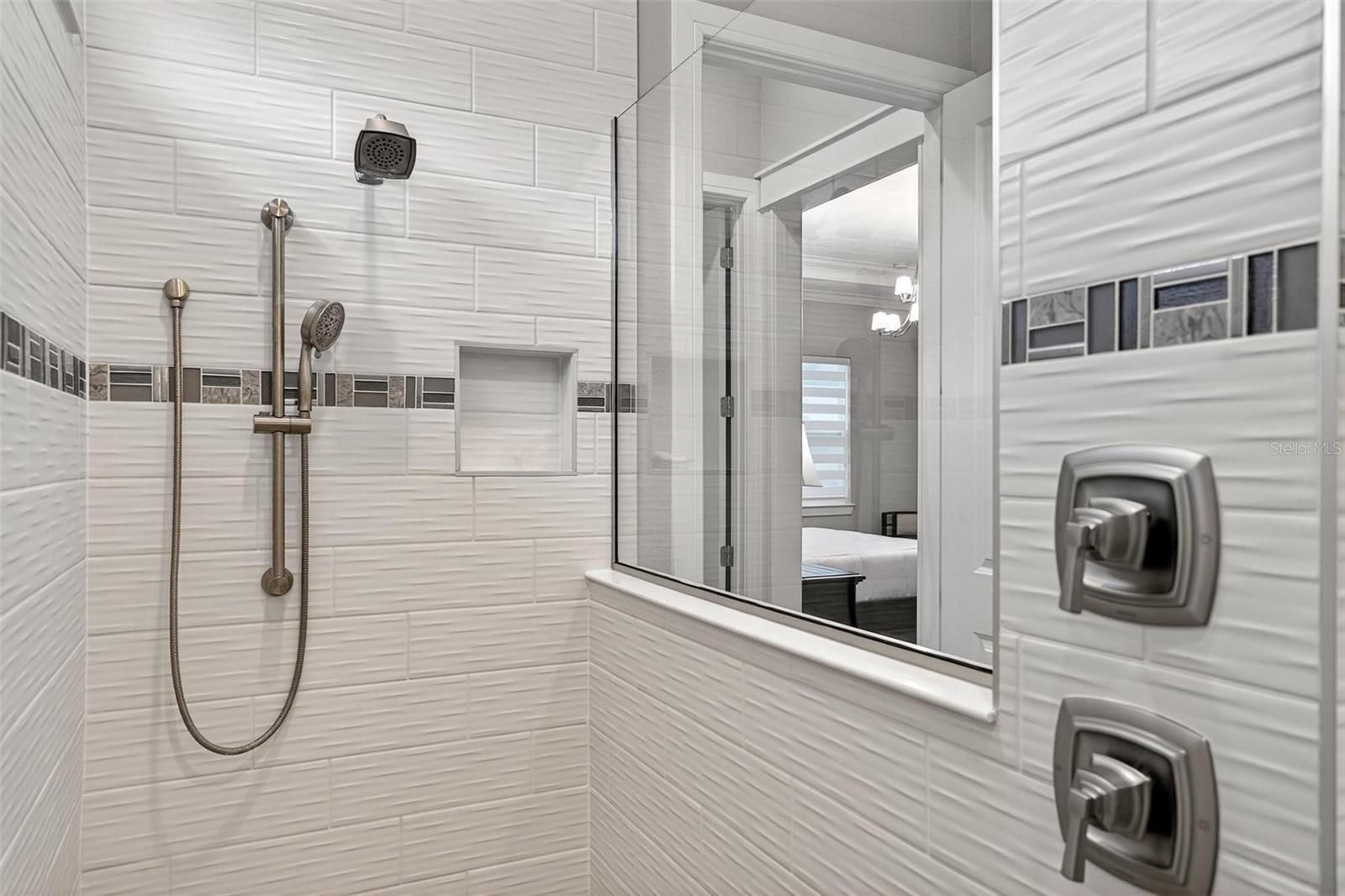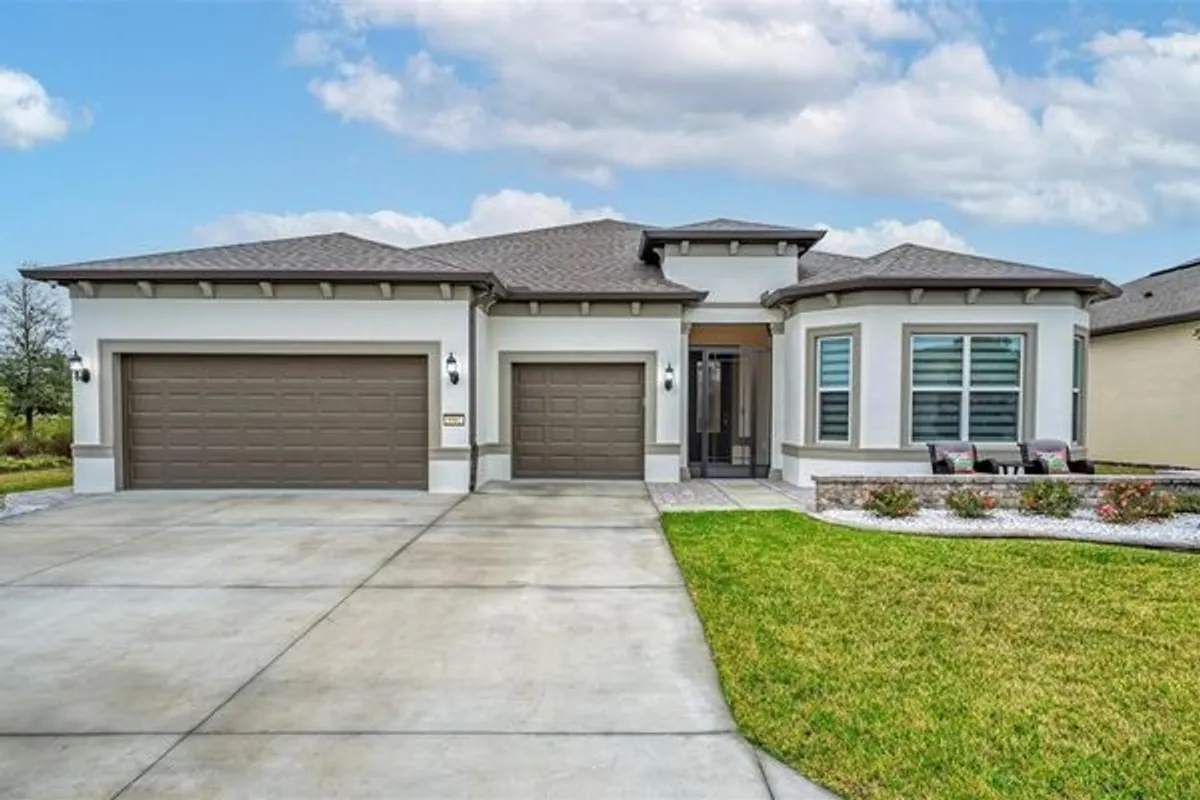 Exceptional Renown Model with Peaceful Water & Golf Course Views in Del Webb Stone Creek! Tucked away on a premium lot on a quiet cul-de-sac, this beautifully appointed Renown model offers a rare combination of elevated design, thoughtful upgrades, and breathtaking views of Reflection Bay and the golf course. Designed for comfort, entertaining, and effortless living, this home showcases refined finishes and custom enhancements throughout. The thoughtfully designed floor plan features three spacious bedrooms, each with its own private en-suite bath, plus an additional half bath for guests. Porcelain tile flooring and crown molding flow throughout the home, complemented by custom California Closets throughout. At the heart of the home, the gourmet kitchen impresses with quartz countertops, designer backsplash, stainless steel appliances including double ovens, beverage center and a smart refrigerator, under-cabinet lighting, and a walk-in pantry, creating both style and functionality. Indoor living seamlessly transitions outdoors to a private resort-style retreat. Enjoy a heated pool and spa, outdoor kitchen and bar, motorized screens, electric awnings, pool bath, and a screened birdcage with built in trim lighting, all perfectly positioned to capture stunning sunset views. Inside and outside speakers enhance the ambiance, while outdoor cameras provide peace of mind. Additional highlights include motorized blinds throughout, a well-appointed laundry room with cabinetry and utility sink. The extended three-car garage is fully insulated and drywalled, finished with epoxy flooring, storage cabinets and a mini-split system, ideal for climate-controlled storage or workspace. Enhanced landscaping and a screened front entry complete this remarkable residence, offering privacy, beauty, and curb appeal. This is not simply a home, but a fully curated lifestyle property, where every detail has been thoughtfully designed for comfort, convenience, and elevated living. Opportunities to view a beautifully completed home with this level of finish and setting are limited within Del Webb Stone Creek, call to schedule your private tour today!
