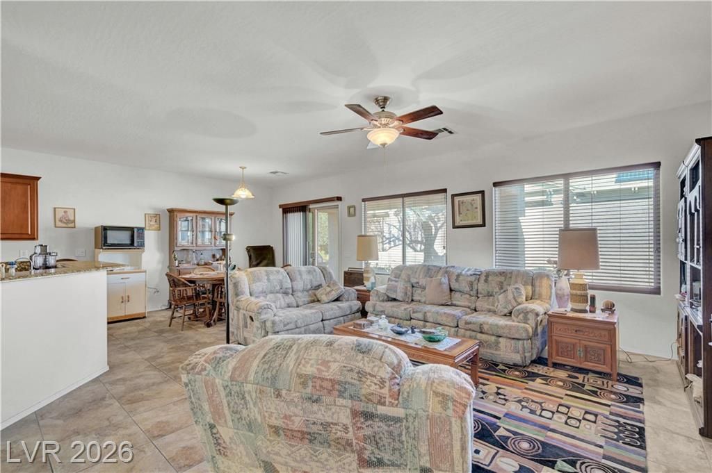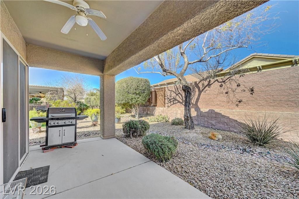 Highly sought-after “Palomino” model ideally located at the end of a quiet cul-de-sac in the desirable 55+ Solera at Stallion Mountain community. This courtyard-entry home backs to an open walking trail & features Tesla solar panels for excellent energy efficiency & long-term savings. The north-facing backyard offers a peaceful, private setting with no neighbors on one side, a raised planter & a security sliding door—ideal for enjoying the quiet outdoor space. Inside, the open-concept floor plan includes a breakfast bar & ceiling fans throughout, creating a comfortable, airy feel.Situated on one of the most desirable streets in the community, residents enjoy resort-style amenities including a pool, spa, clubhouse, fitness center, pickleball & tennis courts, plus a full calendar of social activities. A wonderful opportunity for vibrant active living.