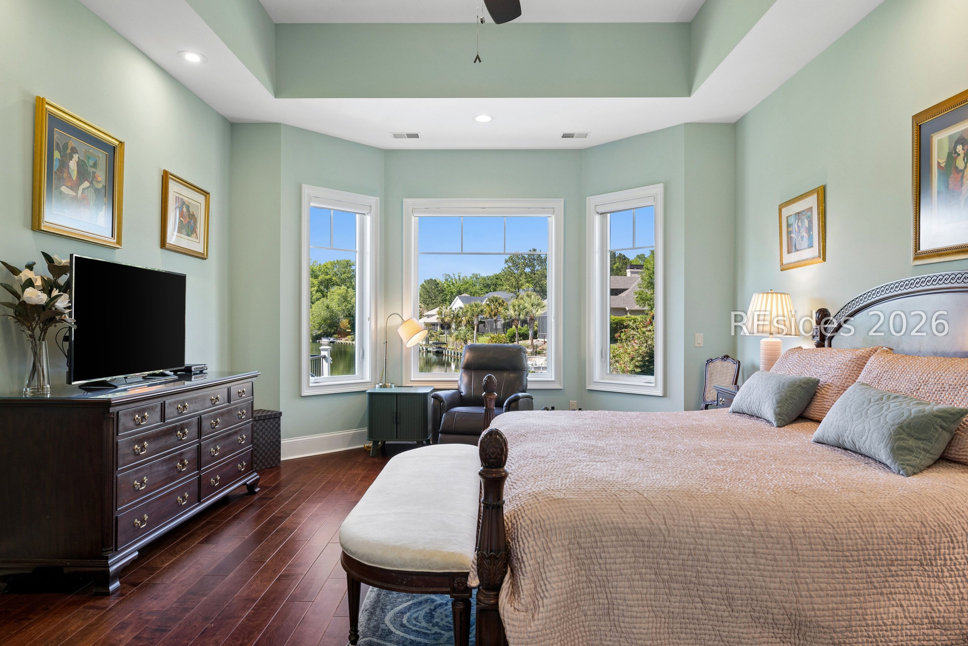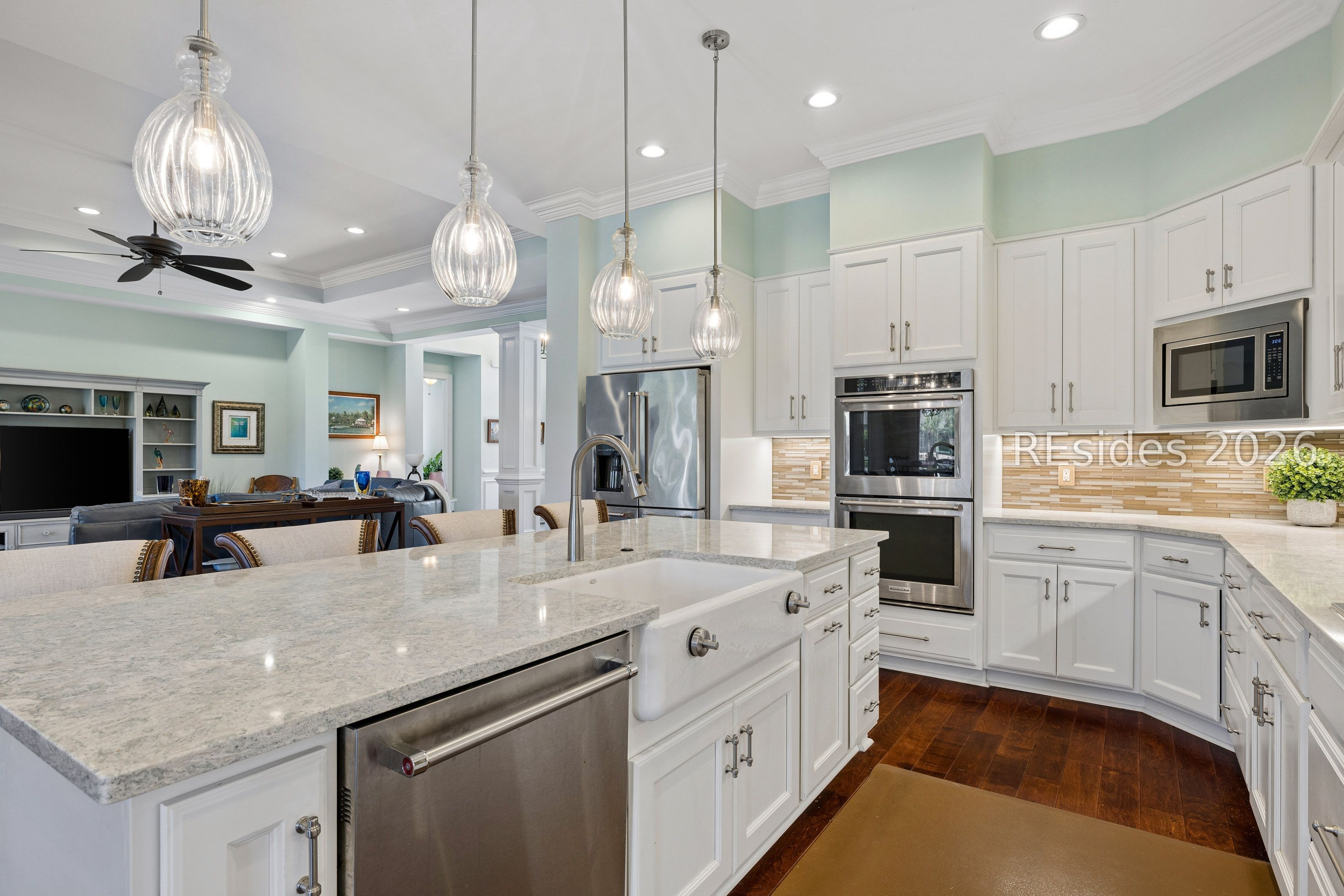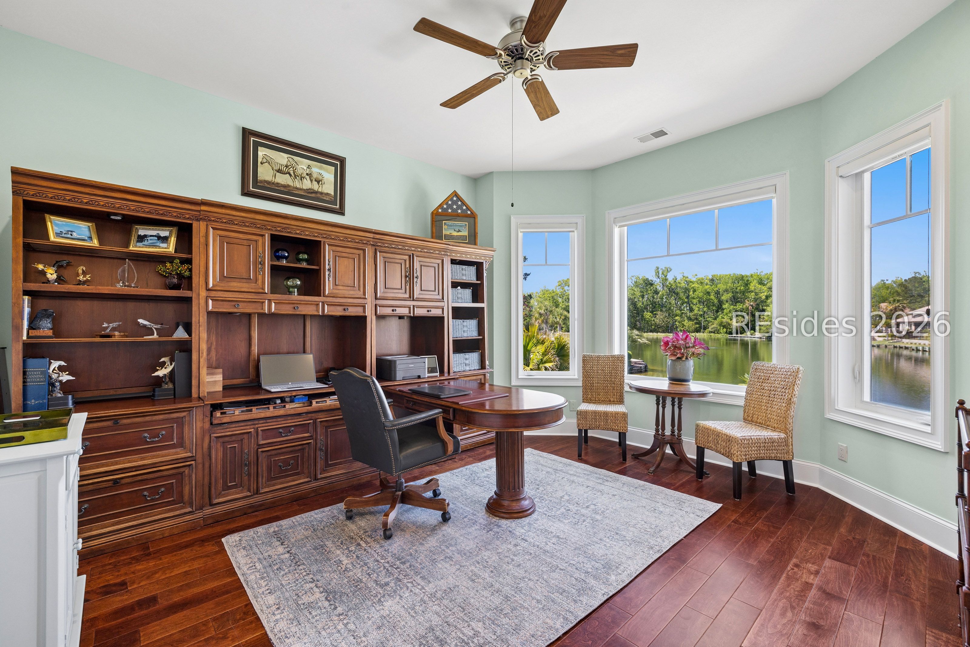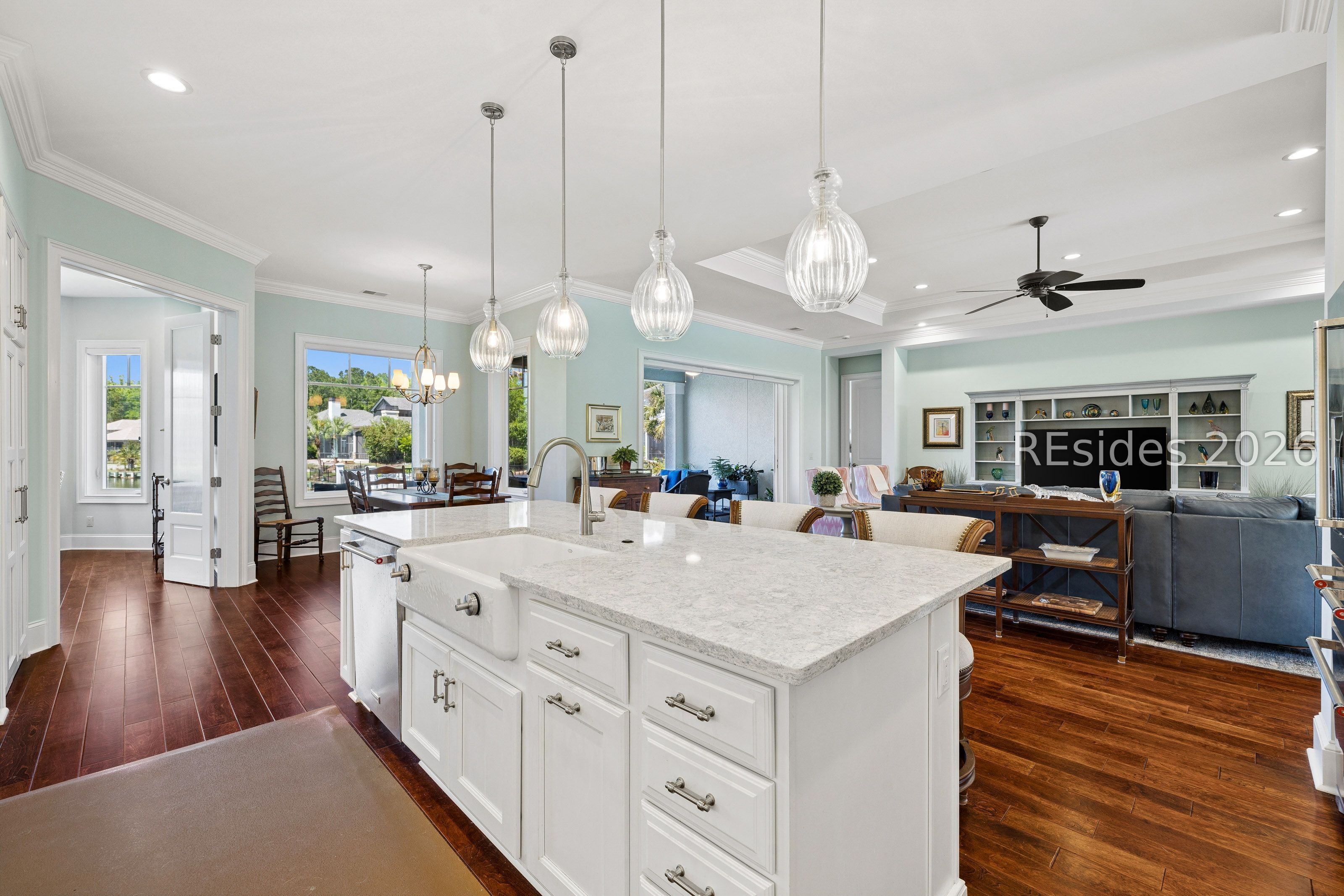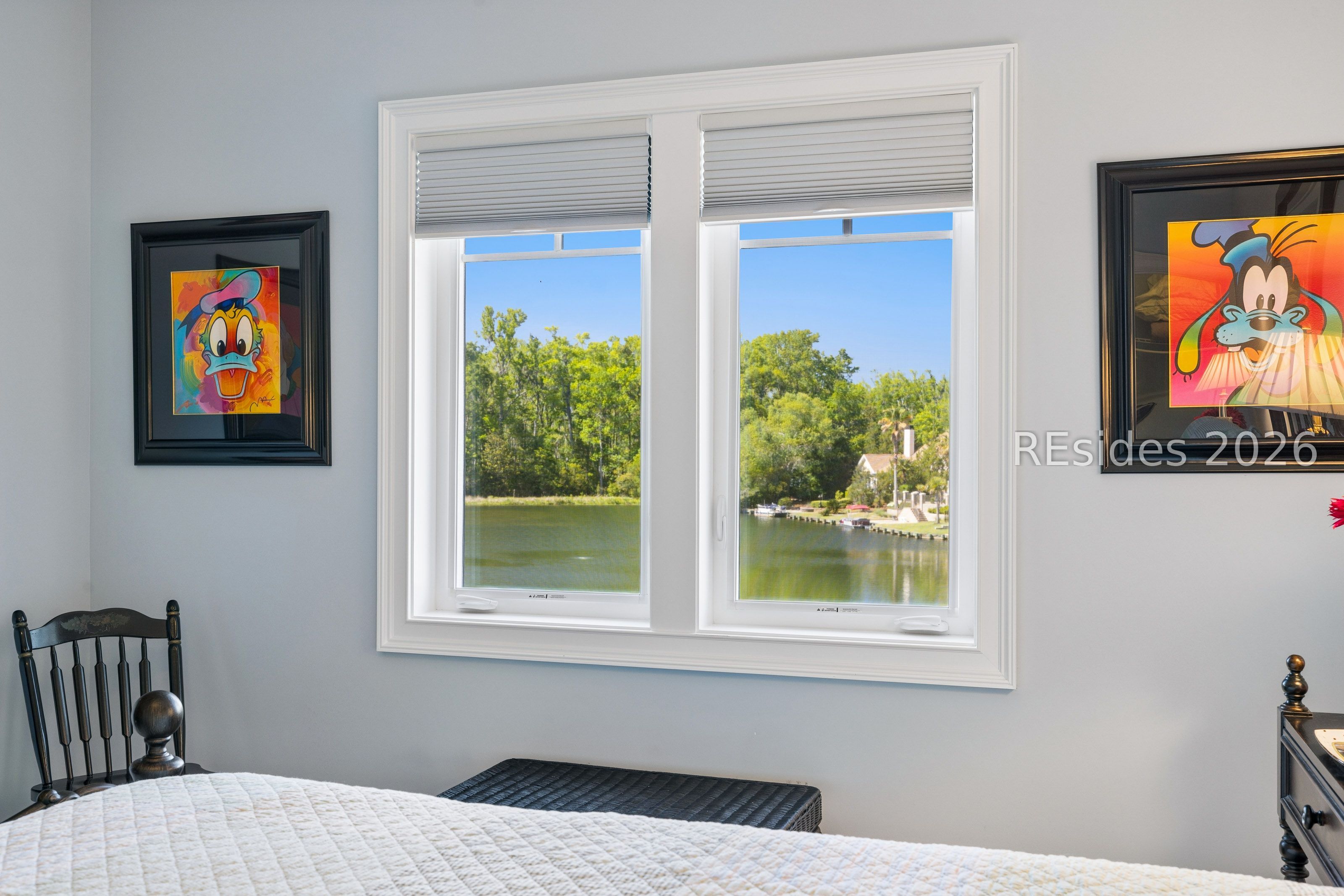 Welcome tο 6 Anсhοr Bay, a stunning сustom-built home by H2 Βuildеrs offering 5 bedrooms, 3.5 bathrooms, plus a dedicated office, all thoughtfully designed for comfort and function. Situated on nearly 2/3 of an acre, this rare property delivers an exceptional level of privacy and craftsmanship that's hard to find. From the moment you step into the grand foyer, your eyes are immediately drawn to the breathtaking long lake views framed by natural preserves in the distance. The chef's kitchen is truly the heart of the home, featuring double ovens, a large butler's pantry with an additional refrigerator, and beautiful cabinetry paired with quartz countertops, perfect for hosting gatherings of any size. The first-floor primary suite is a private retreat, complete with a luxurious bathroom and an expansive, thoughtfully designed closet. Two additional bedrooms, one complete with an incredible ensuite bathroom and a dedicated office on the main level. Upstairs offers the perfect guest getaway with two spacious bedrooms, a full bathroom, and a large walk-in attic. Collapsible sliders seamlessly blend indoor and outdoor living, opening up to let you fully embrace the serene setting. Step outside onto a spacious deck overlooking the lake. You'll enjoy peaceful water views, a forest preserve backdrop, and your own private dock, ideal for embracing the full waterfront lifestyle. Additional upgrades include electric blinds, spray foam insulation, a phantom screen porch, epoxy-coated garage floors, and an instant hot water heater. Oversize 2 car garage with plenty of storage space or room for golf cart. Located within the award-winning, gated community of Hampton Lake, residents enjoy world-class amenities.