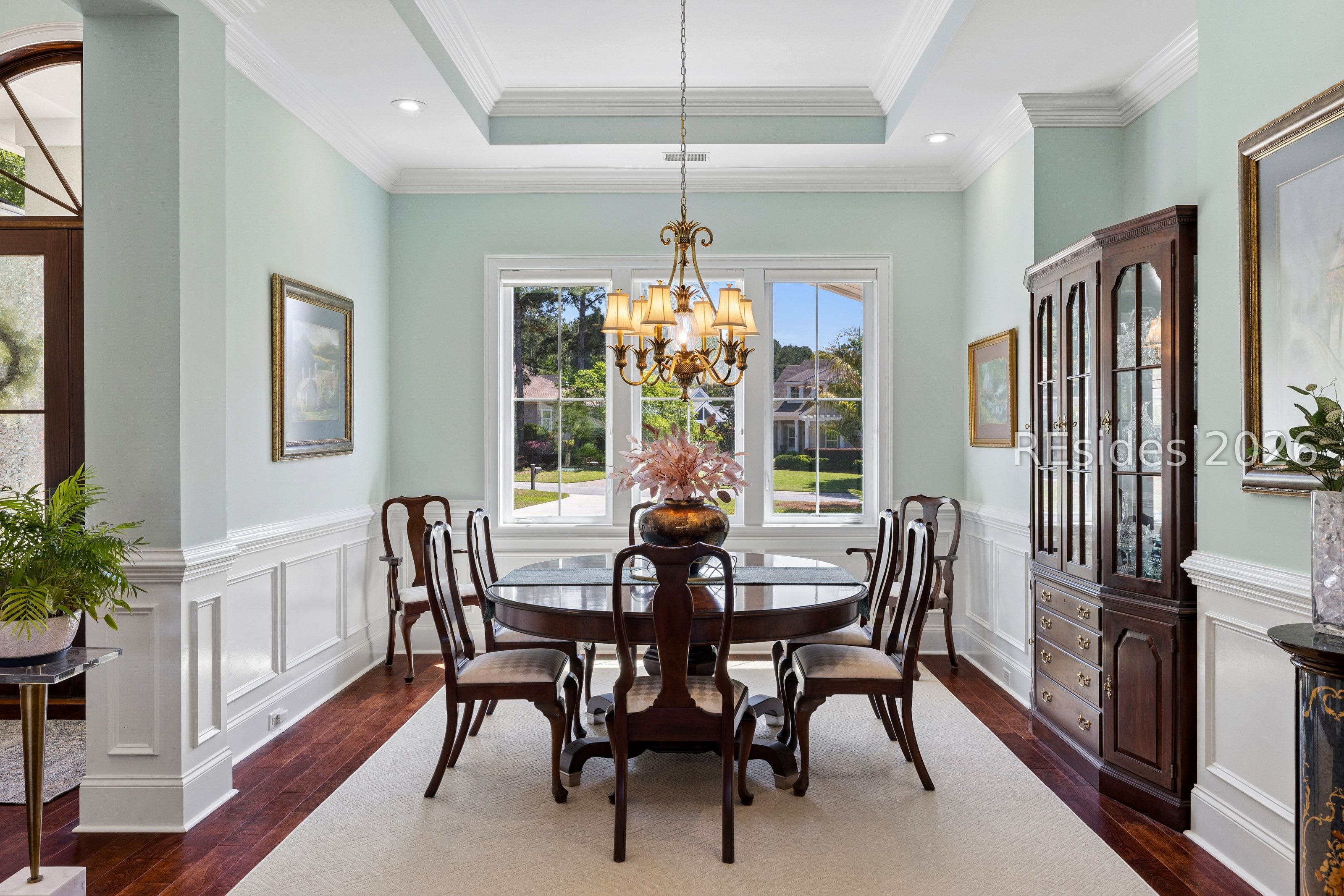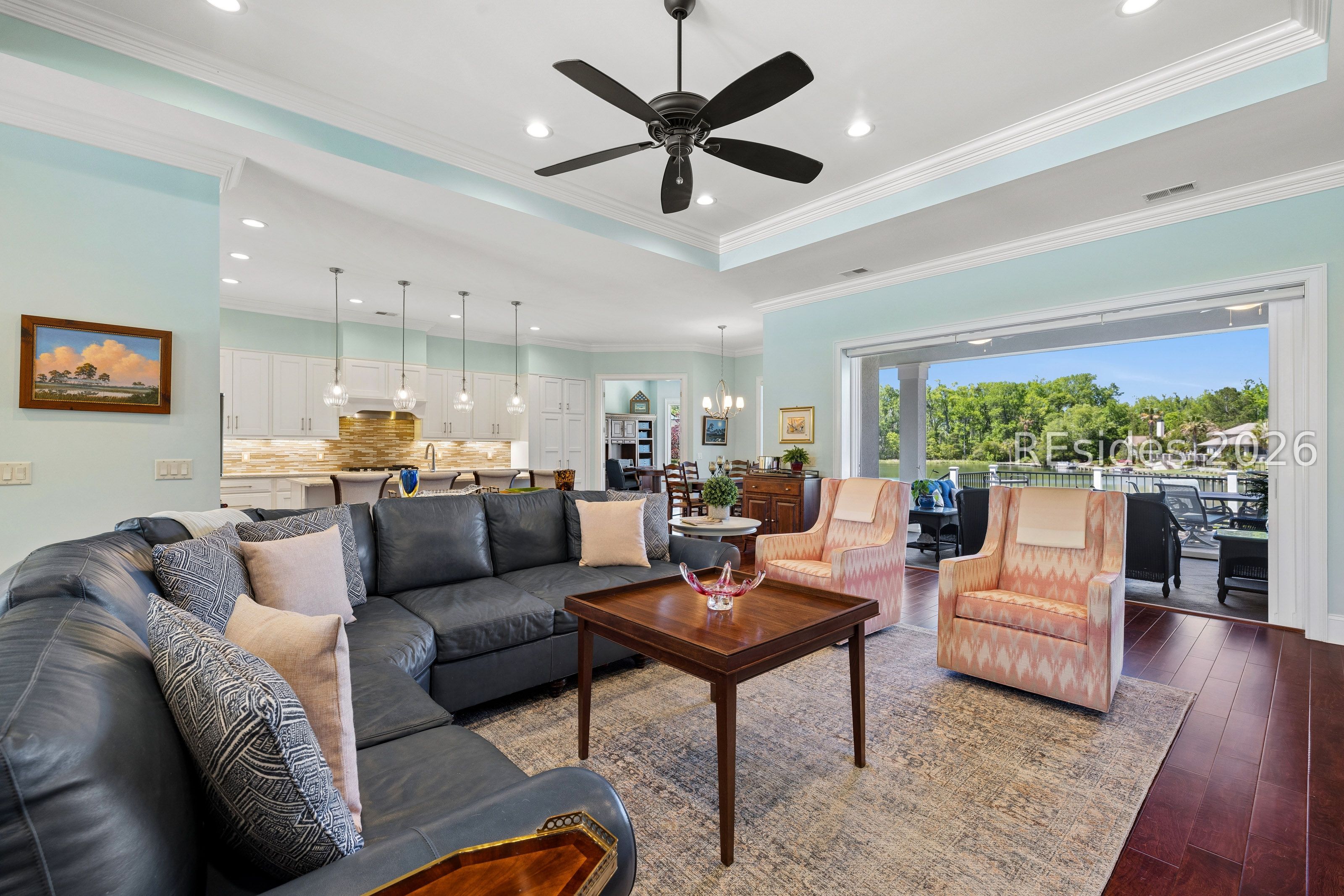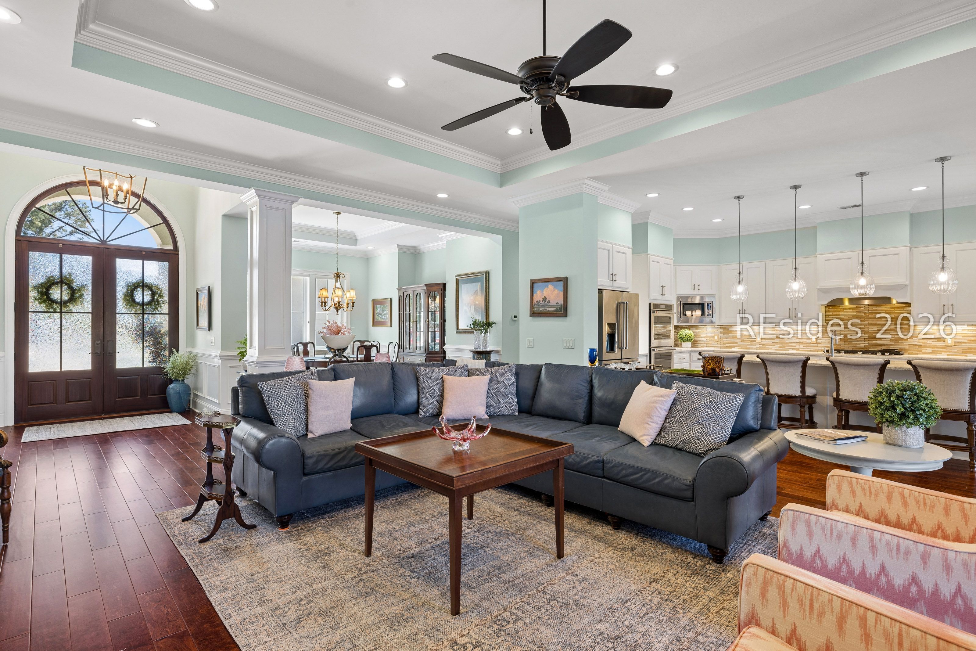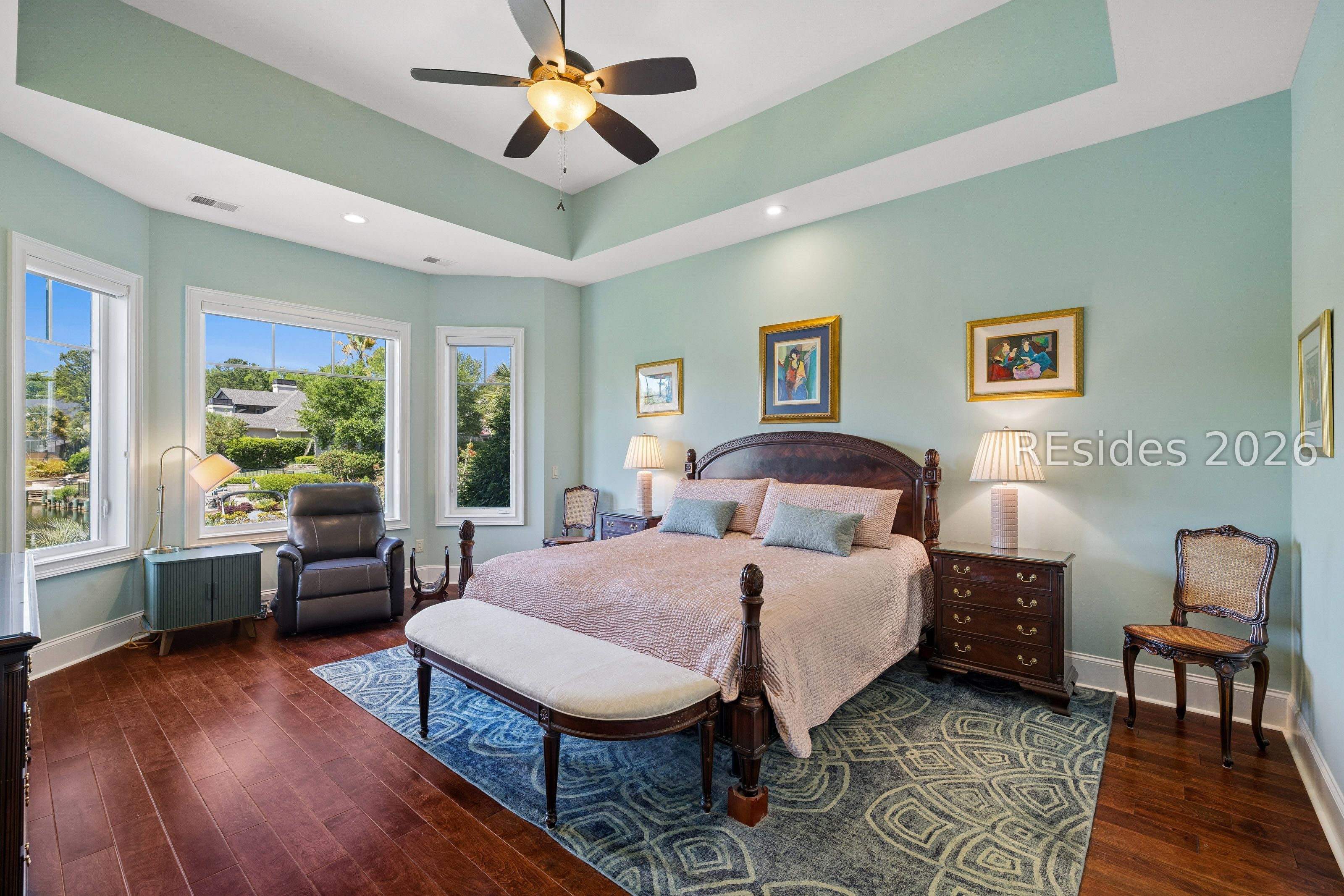 Welcome tο 6 Anсhοr Bay, a stunning сustom-built home by H2 Βuildеrs offering 5 bedrooms, 3.5 bathrooms, plus a dedicated office, all thoughtfully designed for comfort and function. Situated on nearly 2/3 of an acre, this rare property delivers an exceptional level of privacy and craftsmanship that's hard to find. From the moment you step into the grand foyer, your eyes are immediately drawn to the breathtaking long lake views framed by natural preserves in the distance. The chef's kitchen is truly the heart of the home, featuring double ovens, a large butler's pantry with an additional refrigerator, and beautiful cabinetry paired with quartz countertops, perfect for hosting gatherings of any size. The first-floor primary suite is a private retreat, complete with a luxurious bathroom and an expansive, thoughtfully designed closet. Two additional bedrooms, one complete with an incredible ensuite bathroom and a dedicated office on the main level. Upstairs offers the perfect guest getaway with two spacious bedrooms, a full bathroom, and a large walk-in attic. Collapsible sliders seamlessly blend indoor and outdoor living, opening up to let you fully embrace the serene setting. Step outside onto a spacious deck overlooking the lake. You'll enjoy peaceful water views, a forest preserve backdrop, and your own private dock, ideal for embracing the full waterfront lifestyle. Additional upgrades include electric blinds, spray foam insulation, a phantom screen porch, epoxy-coated garage floors, and an instant hot water heater. Oversize 2 car garage with plenty of storage space or room for golf cart. Located within the award-winning, gated community of Hampton Lake, residents enjoy world-class amenities.