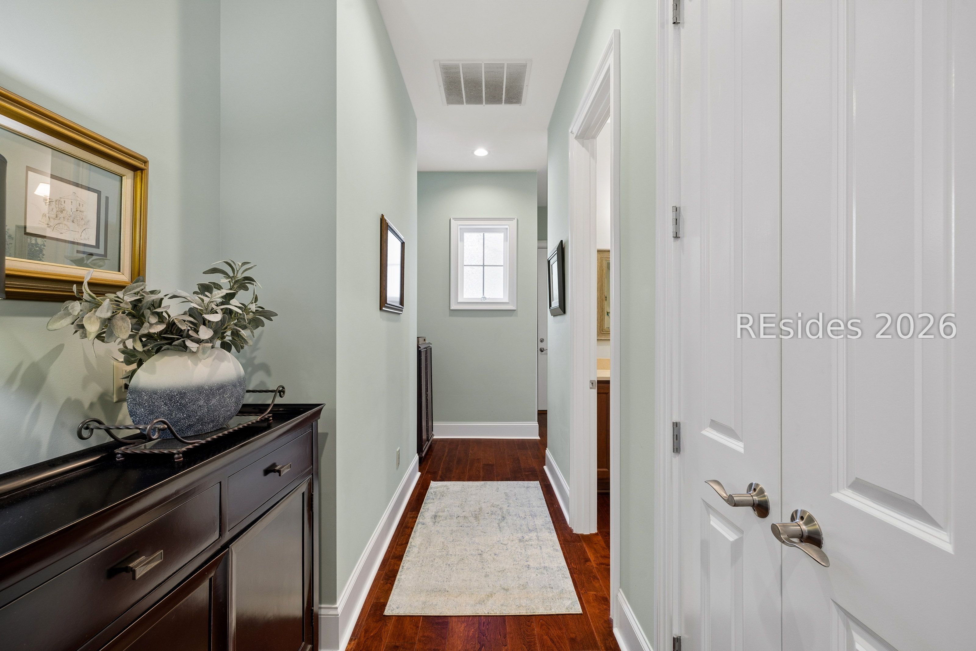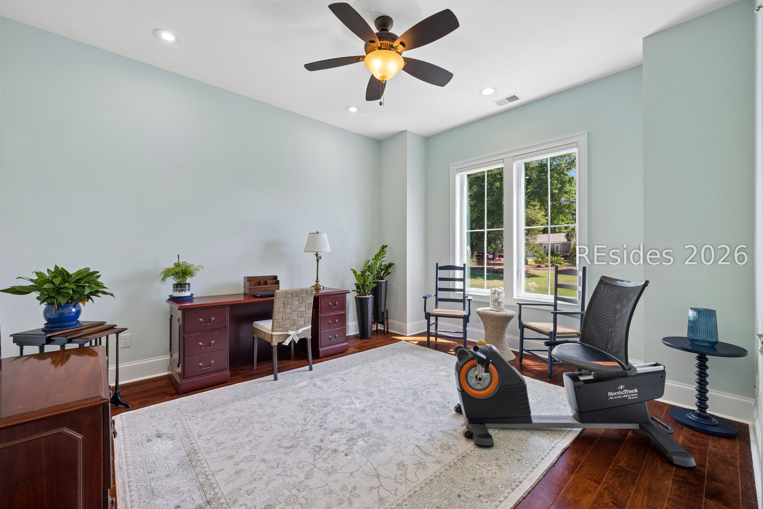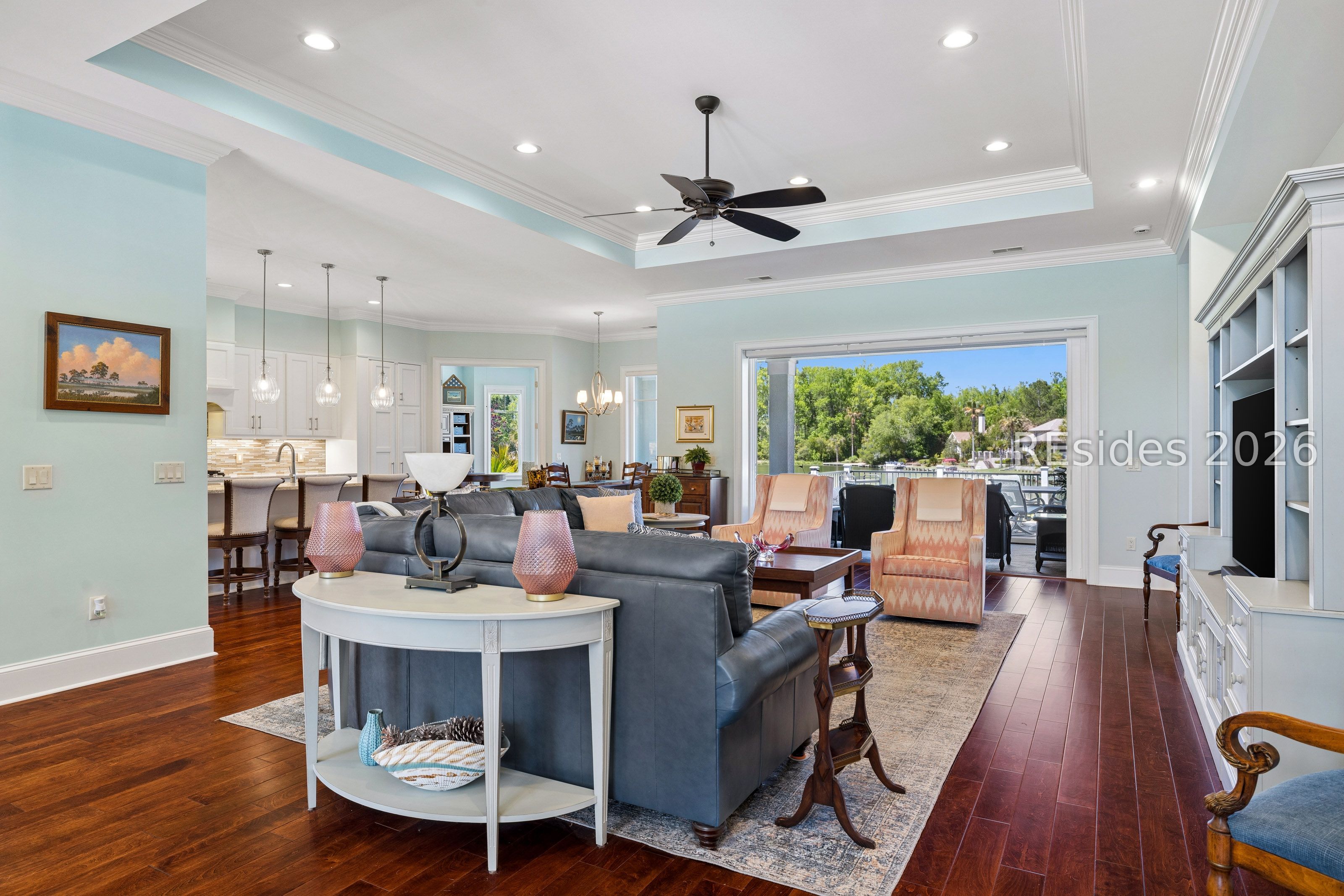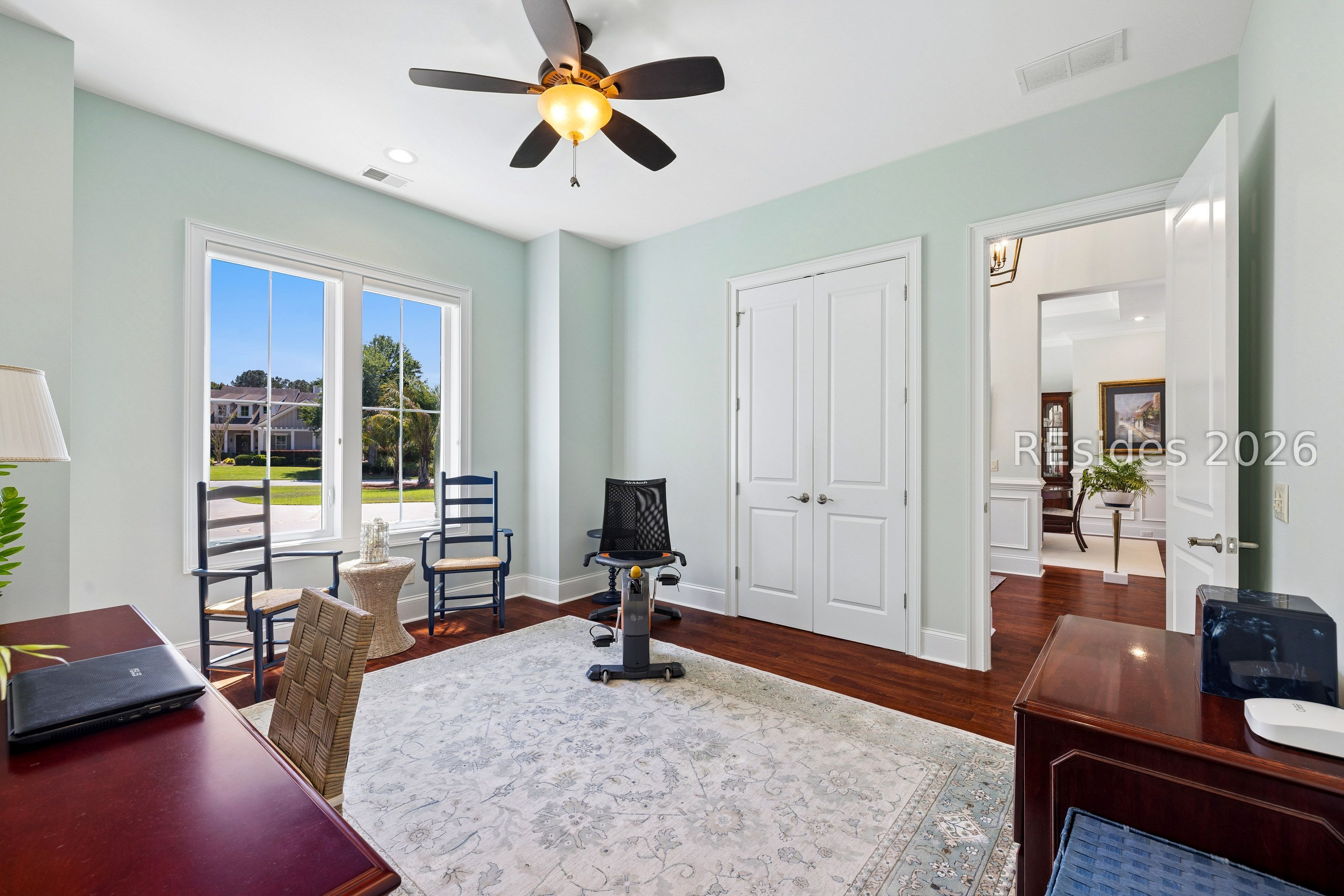Welcome tο 6 Anсhοr Bay, a stunning сustom-built home by H2 Βuildеrs offering 5 bedrooms, 3.5 bathrooms, plus a dedicated office, all thoughtfully designed for comfort and function. Situated on nearly 2/3 of an acre, this rare property delivers an exceptional level of privacy and craftsmanship that's hard to find. From the moment you step into the grand foyer, your eyes are immediately drawn to the breathtaking long lake views framed by natural preserves in the distance. The chef's kitchen is truly the heart of the home, featuring double ovens, a large butler's pantry with an additional refrigerator, and beautiful cabinetry paired with quartz countertops, perfect for hosting gatherings of any size. The first-floor primary suite is a private retreat, complete with a luxurious bathroom and an expansive, thoughtfully designed closet. Two additional bedrooms, one complete with an incredible ensuite bathroom and a dedicated office on the main level. Upstairs offers the perfect guest getaway with two spacious bedrooms, a full bathroom, and a large walk-in attic. Collapsible sliders seamlessly blend indoor and outdoor living, opening up to let you fully embrace the serene setting. Step outside onto a spacious deck overlooking the lake. You'll enjoy peaceful water views, a forest preserve backdrop, and your own private dock, ideal for embracing the full waterfront lifestyle. Additional upgrades include electric blinds, spray foam insulation, a phantom screen porch, epoxy-coated garage floors, and an instant hot water heater. Oversize 2 car garage with plenty of storage space or room for golf cart. Located within the award-winning, gated community of Hampton Lake, residents enjoy world-class amenities.