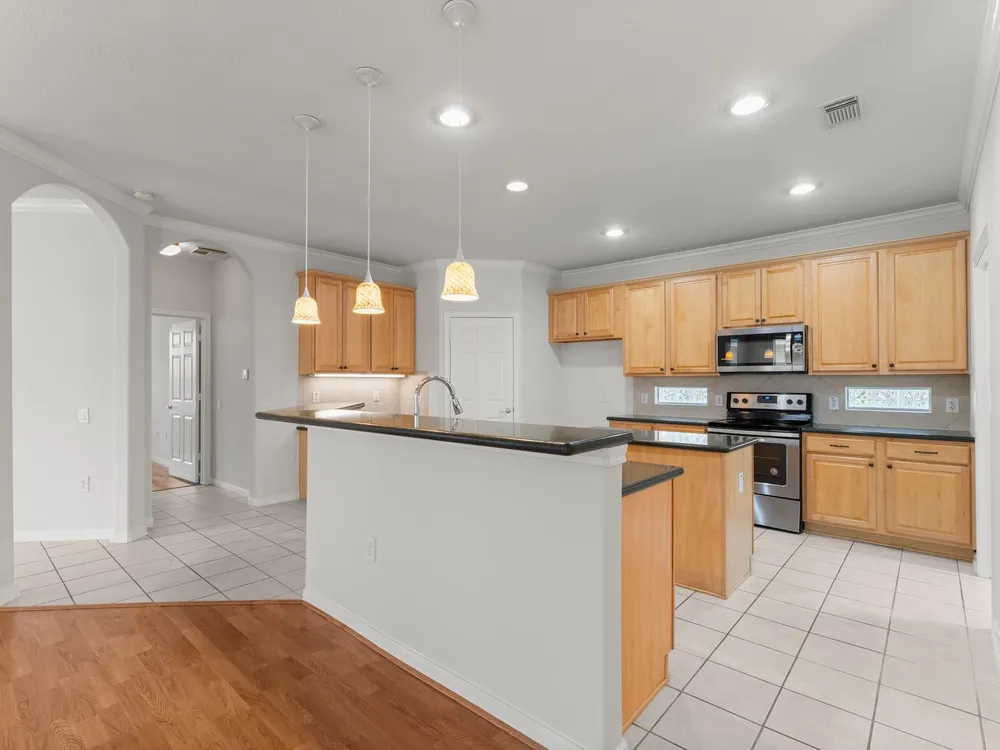 - Breakfast Bar, Crown Molding, Handicap Access, High Ceilings, Kitchen Island, Kitchen/Family Room Combo, Pantry, Walk-In Pantry