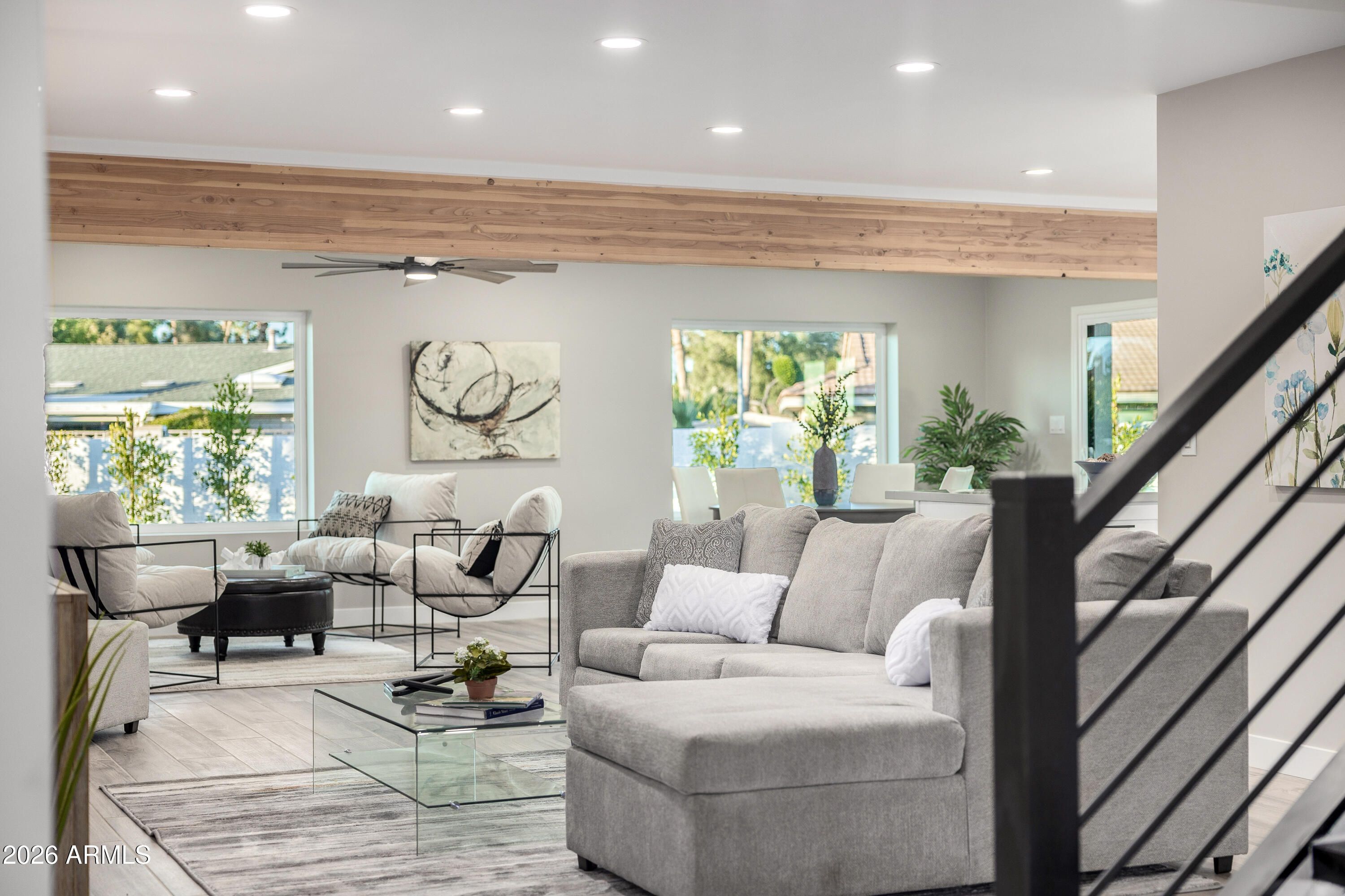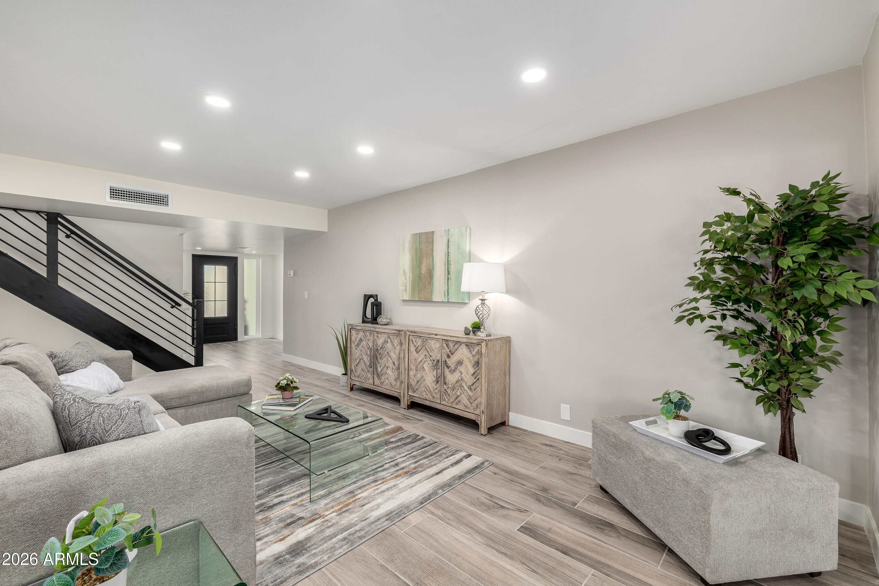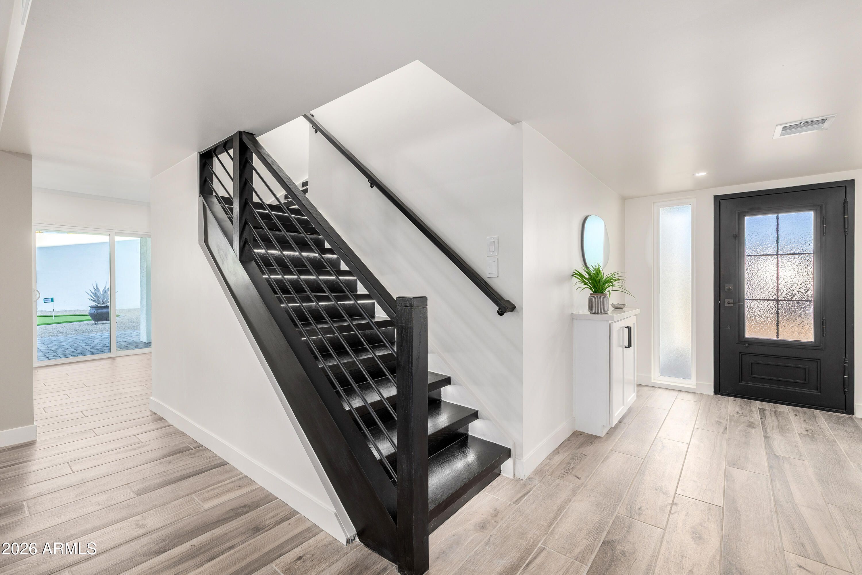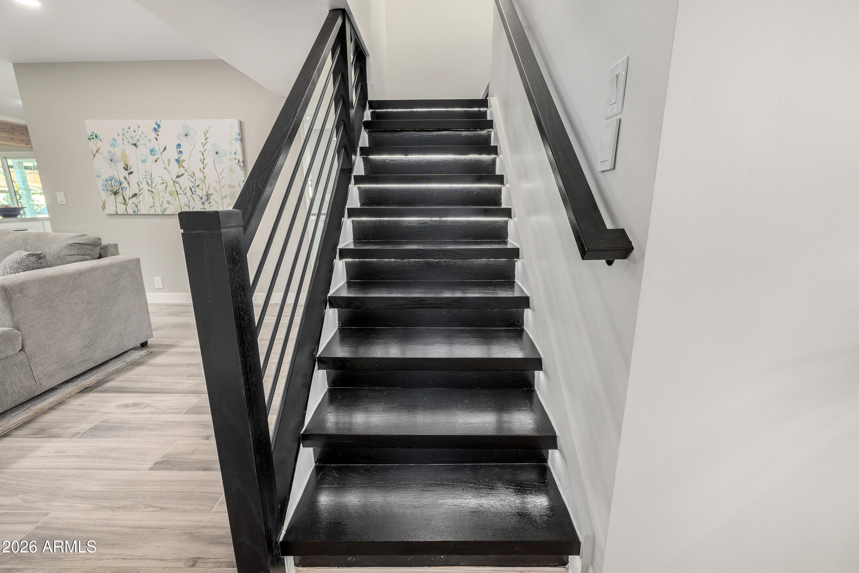 Remarkably renovated w/modern design & attention to detail, exclusively tucked away in a private cul-de-sac lot within one of Moon Valley's most desirable communities! Spacious open floor plan w/nearly 2000sqft downstairs livable space, primary bedroom downstairs (only 1 bed & 1 bath upstairs). Expansive kitchen & greatroom w/24ft exposed beam, picture windows, smooth texture walls & ceiling throughout. Countless interior design possibilities! Under staircase lighting & modern railing. Newly installed (April 2025) 200amp electrical panel, 2025 electric tankless water heater, TRANE 5-Ton, 14 SEER AC unit (2024). Stylish En Vogue features, upgrades & design throughout interior & generous outdoor living space, patio, firepit, landscape lighting, putting green. Owner/occupants can be 40+.