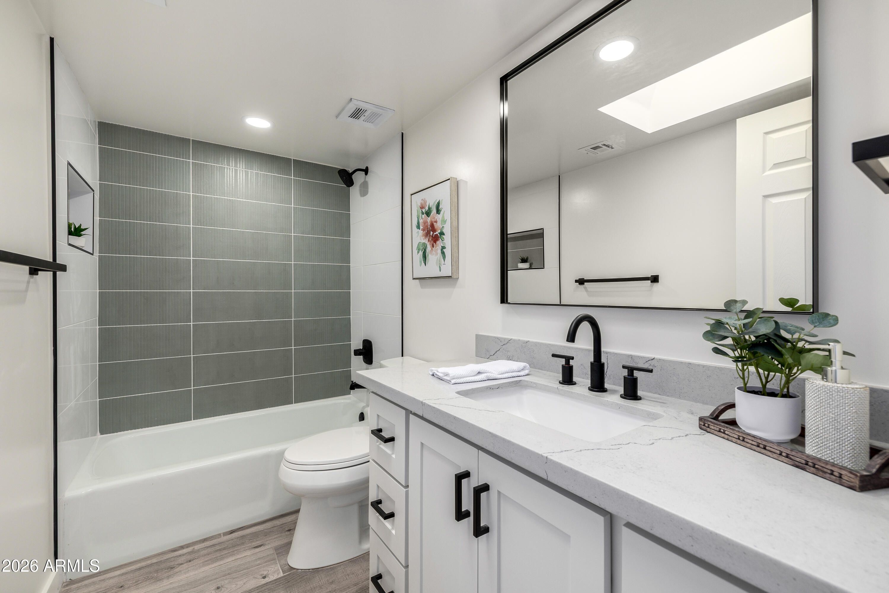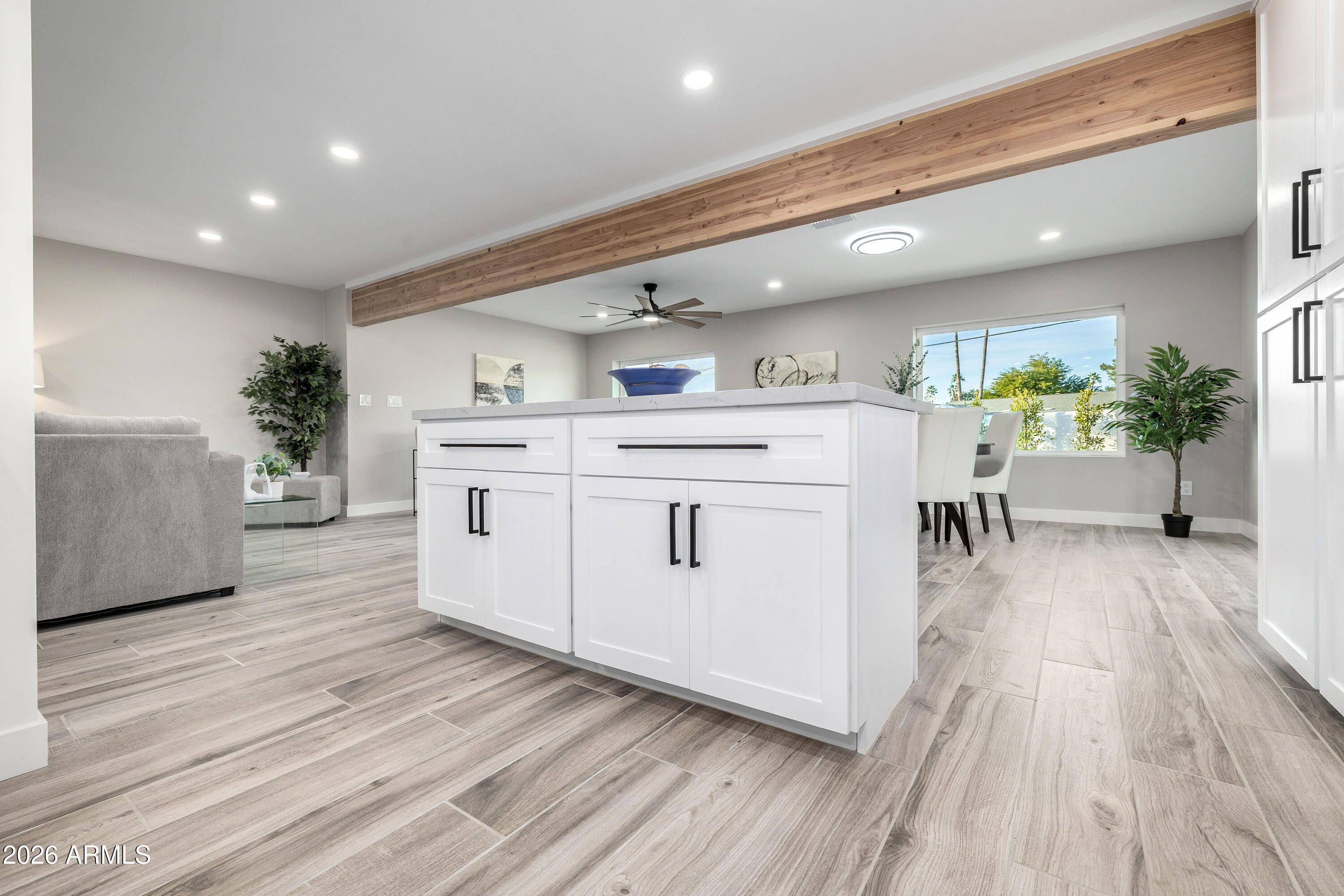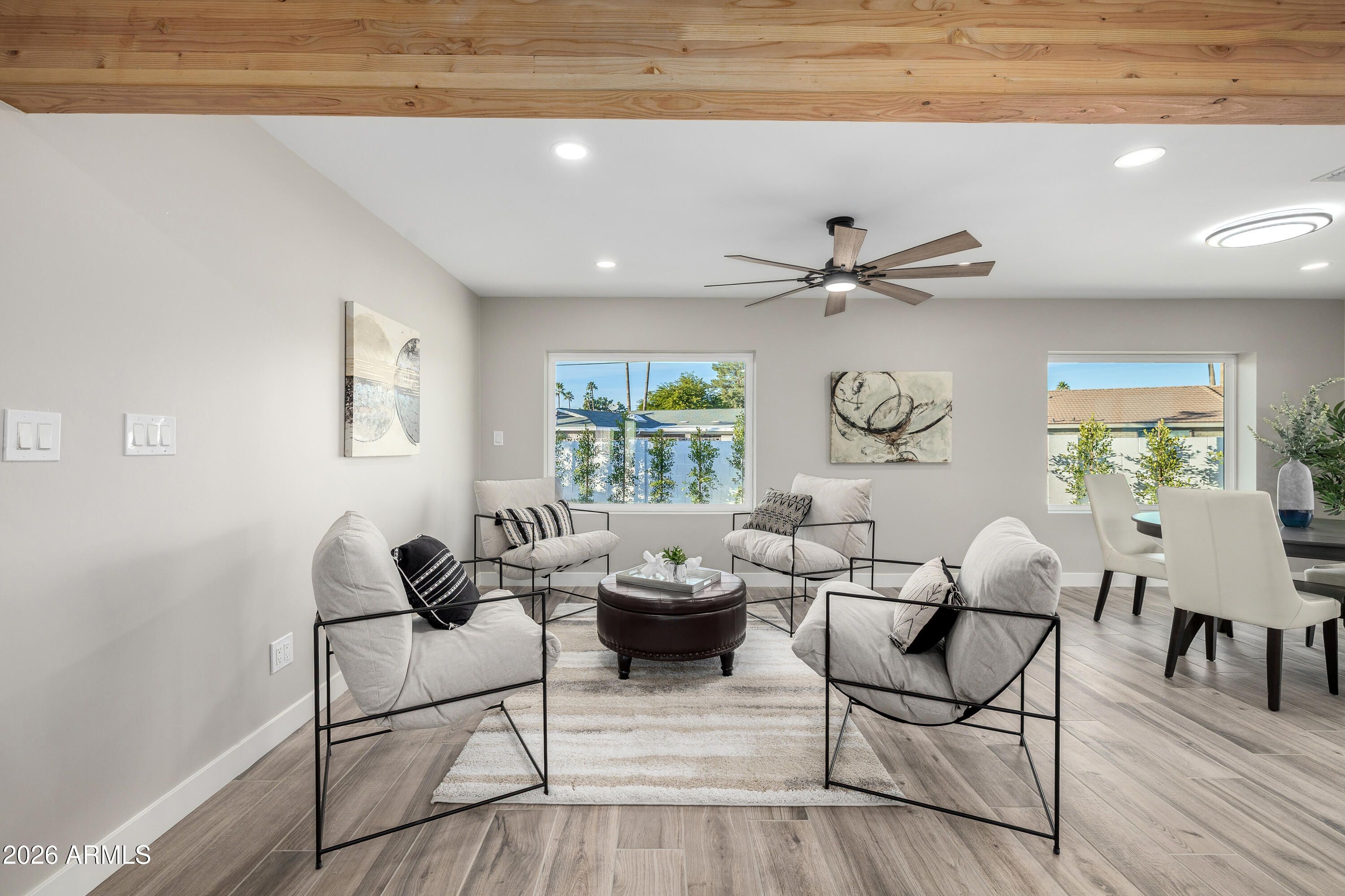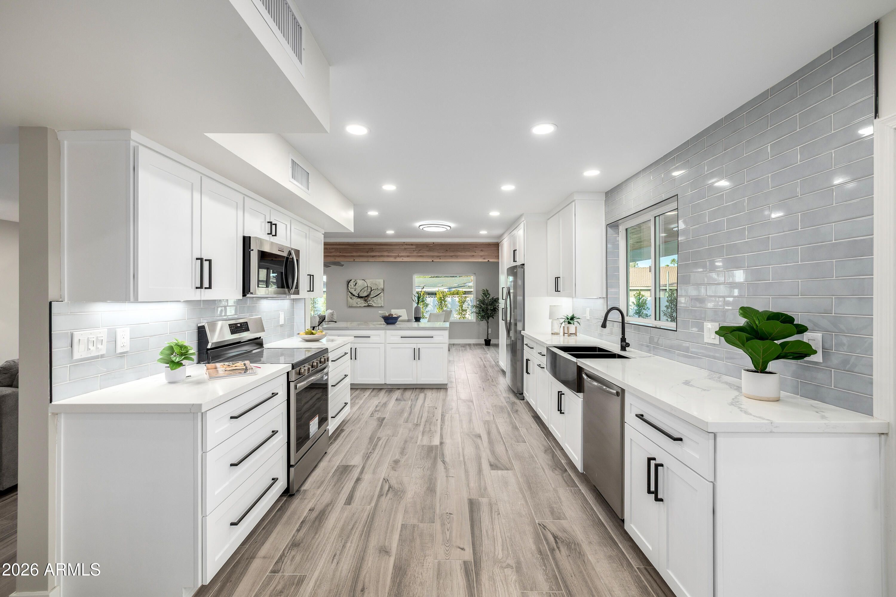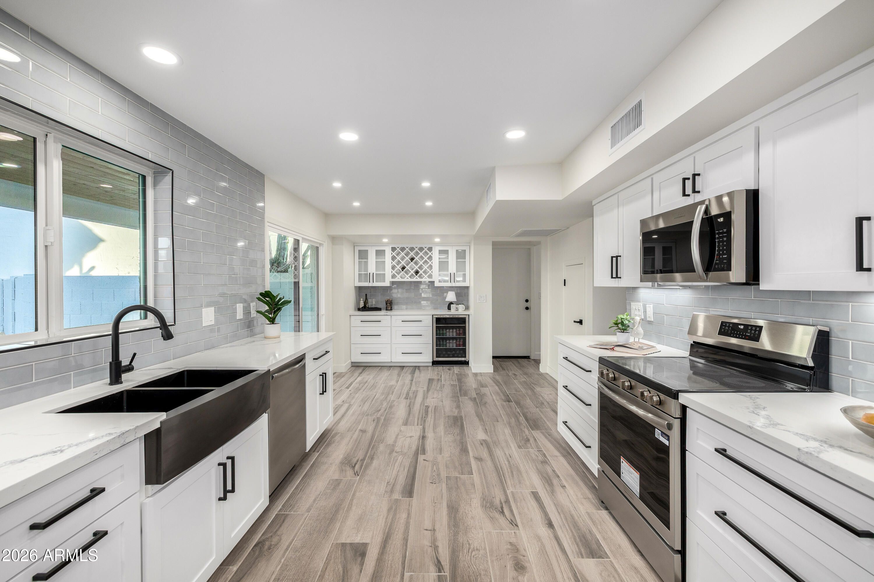 Remarkably renovated w/modern design & attention to detail, exclusively tucked away in a private cul-de-sac lot within one of Moon Valley's most desirable communities! Spacious open floor plan w/nearly 2000sqft downstairs livable space, primary bedroom downstairs (only 1 bed & 1 bath upstairs). Expansive kitchen & greatroom w/24ft exposed beam, picture windows, smooth texture walls & ceiling throughout. Countless interior design possibilities! Under staircase lighting & modern railing. Newly installed (April 2025) 200amp electrical panel, 2025 electric tankless water heater, TRANE 5-Ton, 14 SEER AC unit (2024). Stylish En Vogue features, upgrades & design throughout interior & generous outdoor living space, patio, firepit, landscape lighting, putting green. Owner/occupants can be 40+.