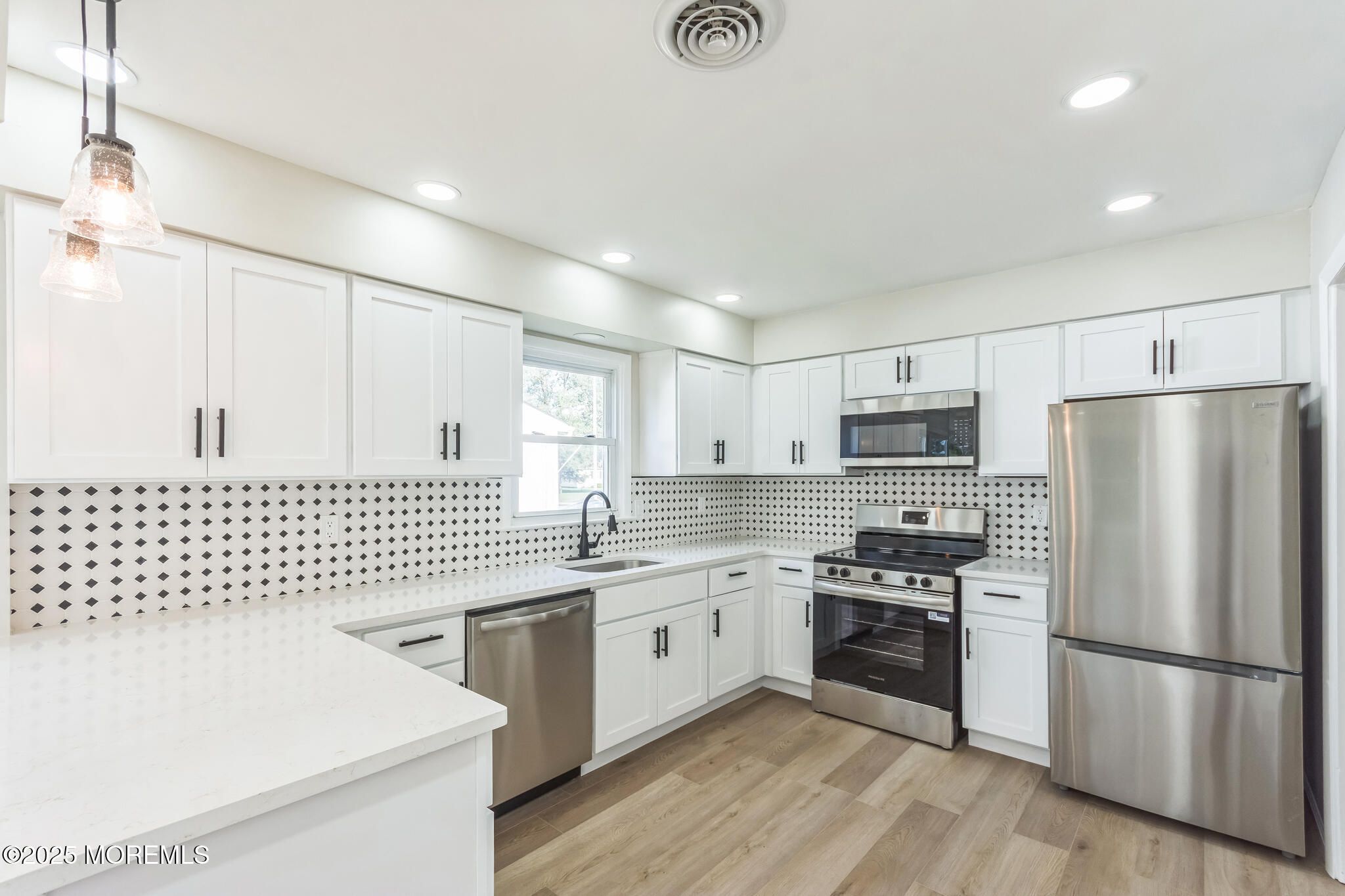 Stunning Renovated Home in Silver Ridge West - 15 Mins to the Beach! Fully updated 2 bed, 2 bath home in a desirable adult community with very low HOA fees. Featuring a brand new kitchen with stainless steel appliances, modern cabinetry, and designer finishes. Spacious dining area opens to a private rear patio. Enjoy new vinyl flooring throughout, brand new HVAC with central heat and A/C, plus bonus baseboard heat. Solar panels help lower electric bills. Generous storage with large closets and walk-in pantry. Expansive backyard with tons of open space. Just minutes to shopping, dining, and the Jersey Shore beaches & boardwalk. Move-in ready and priced to sell
